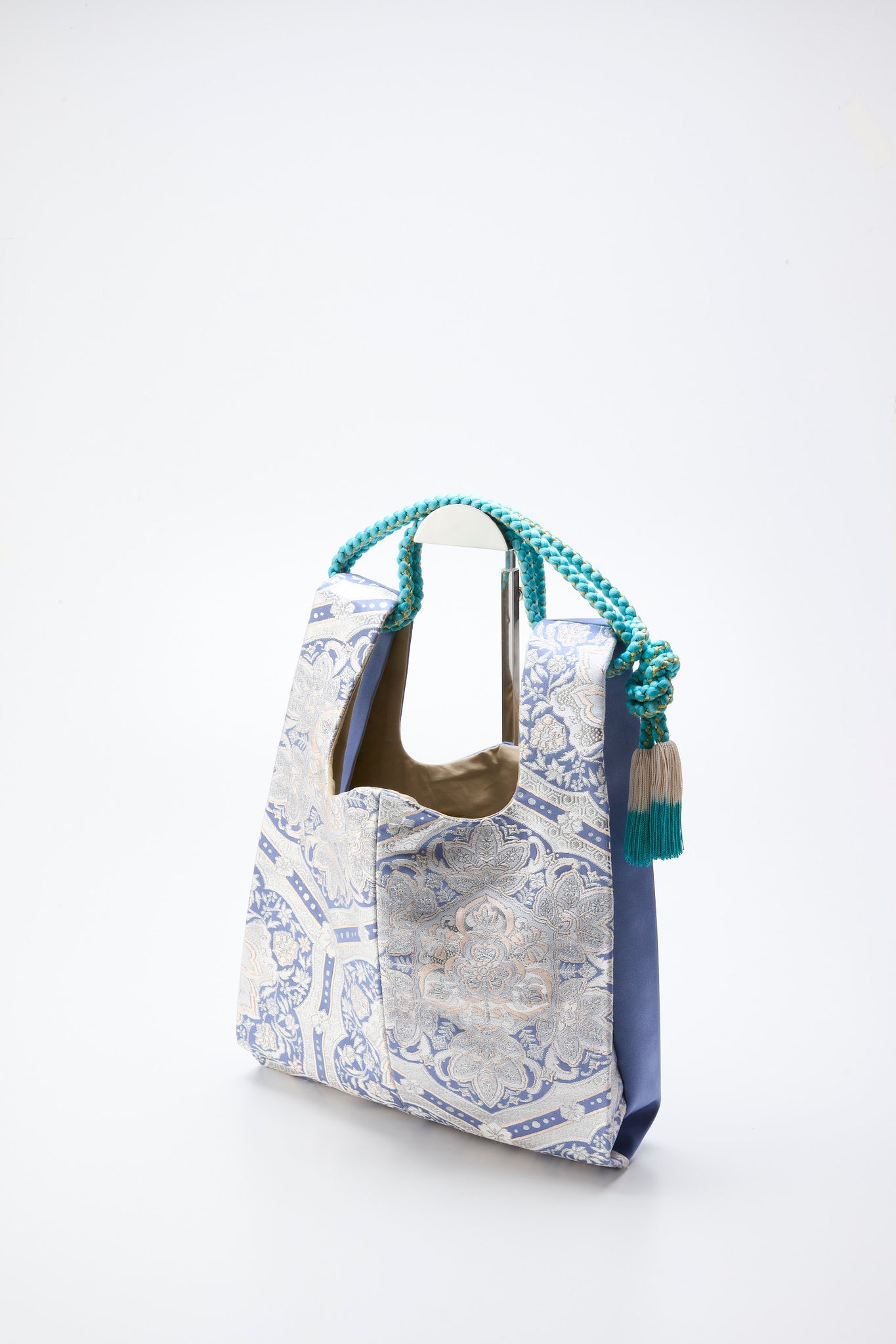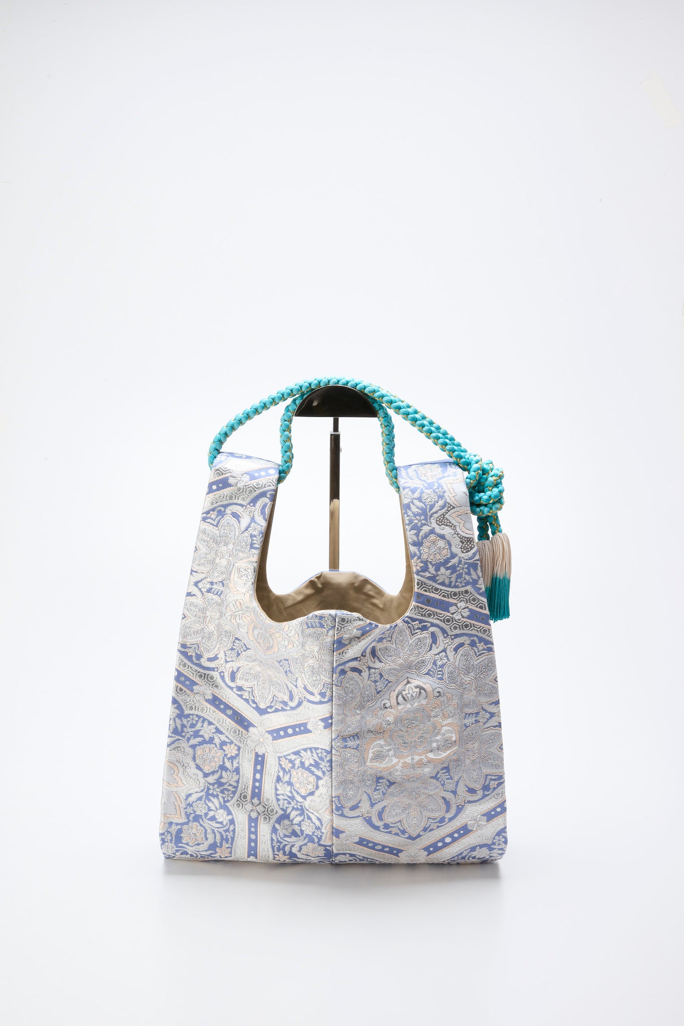 全て帯でおつくりしました品です、マチも大きく大容量の一品で、取っ手の渡しには帯締めを使用しております。