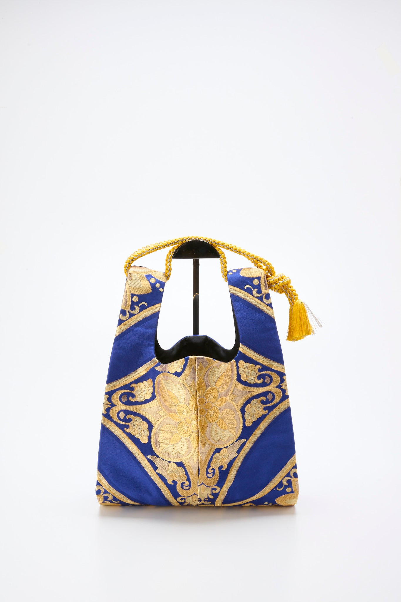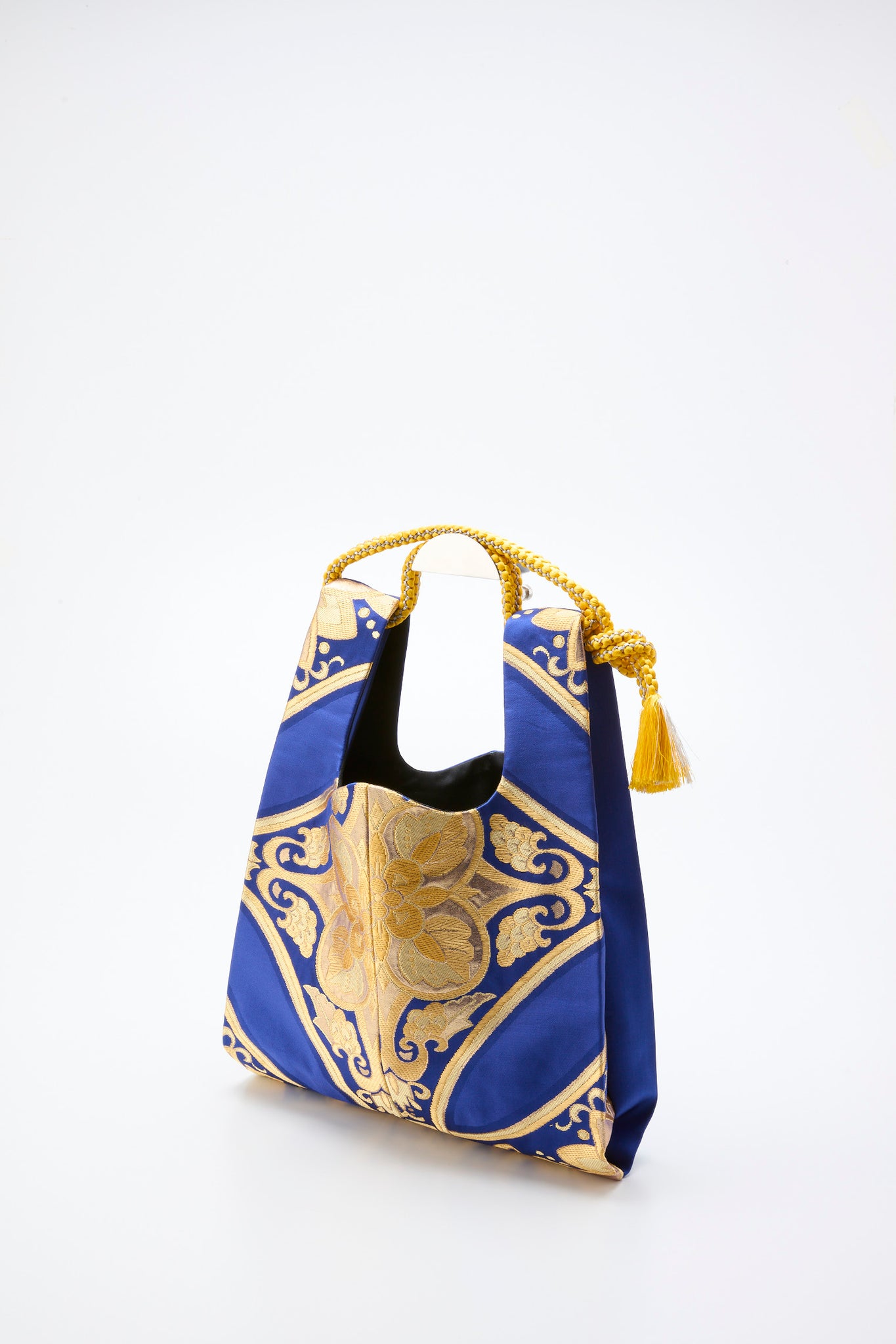 全て帯でおつくりしました品です、マチも大きく大容量の一品で、取っ手の渡しには帯締めを使用しております。