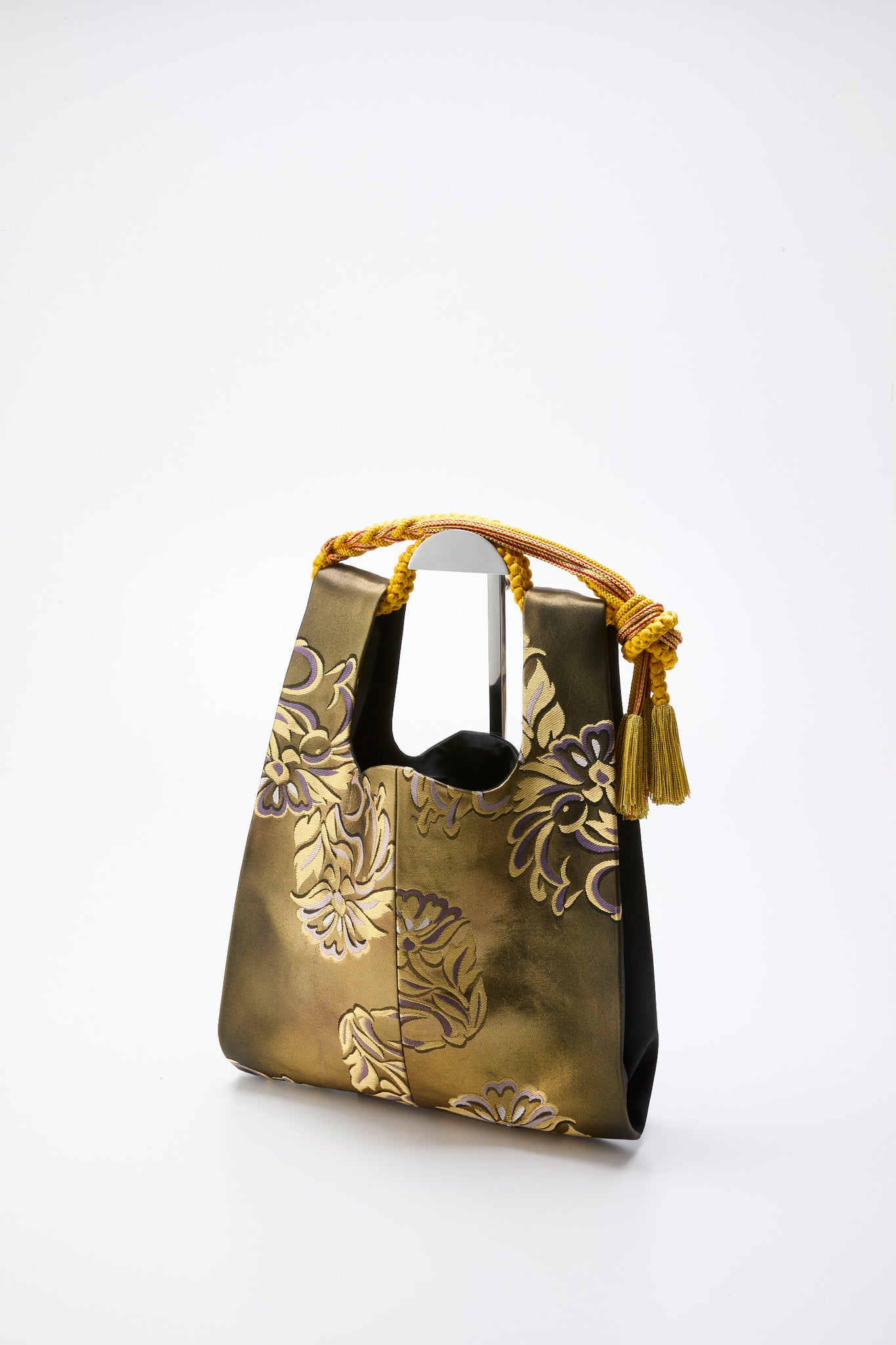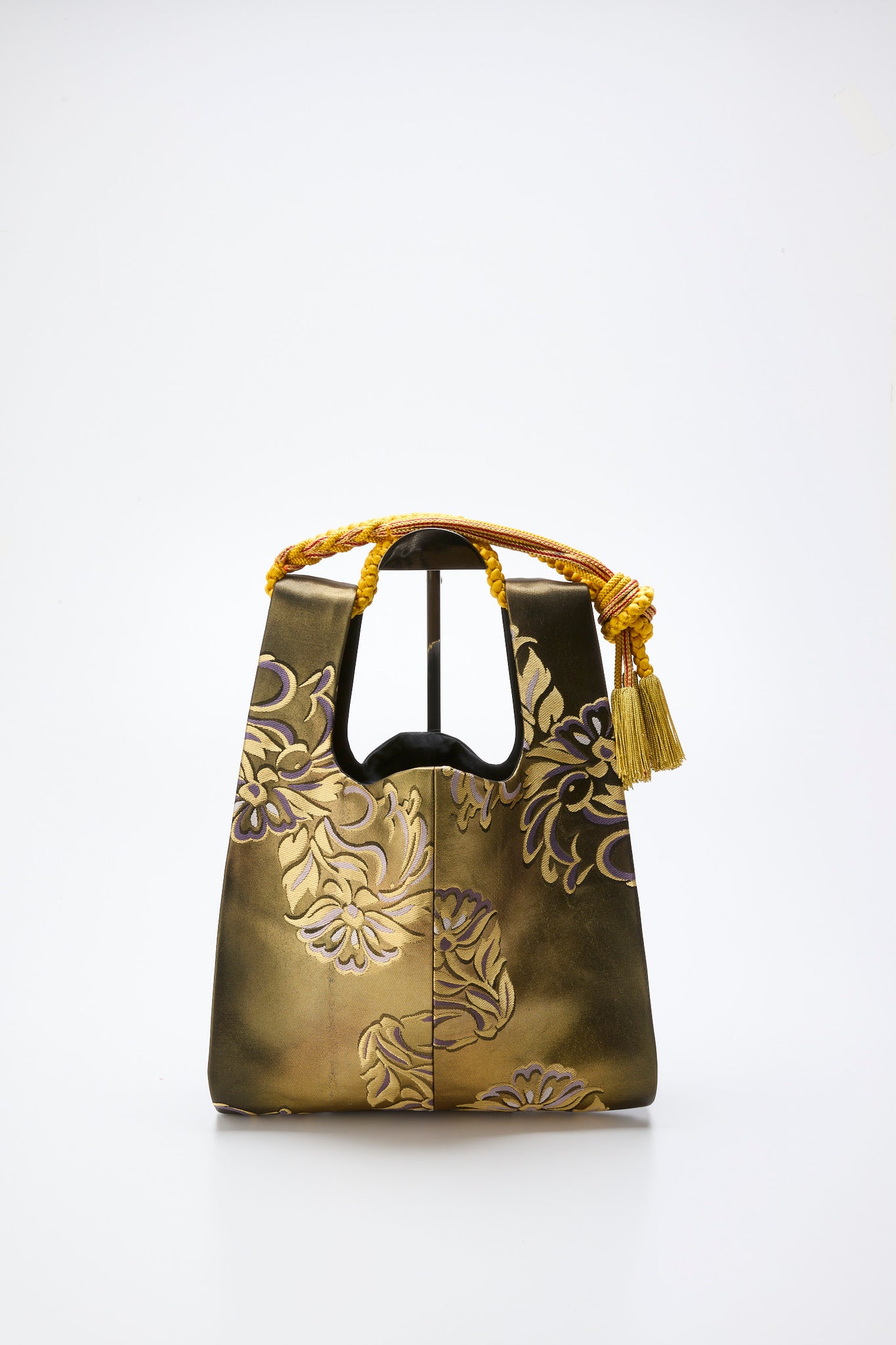 全て帯でおつくりしました品です、マチも大きく大容量の一品で、取っ手の渡しには帯締めを使用しております。