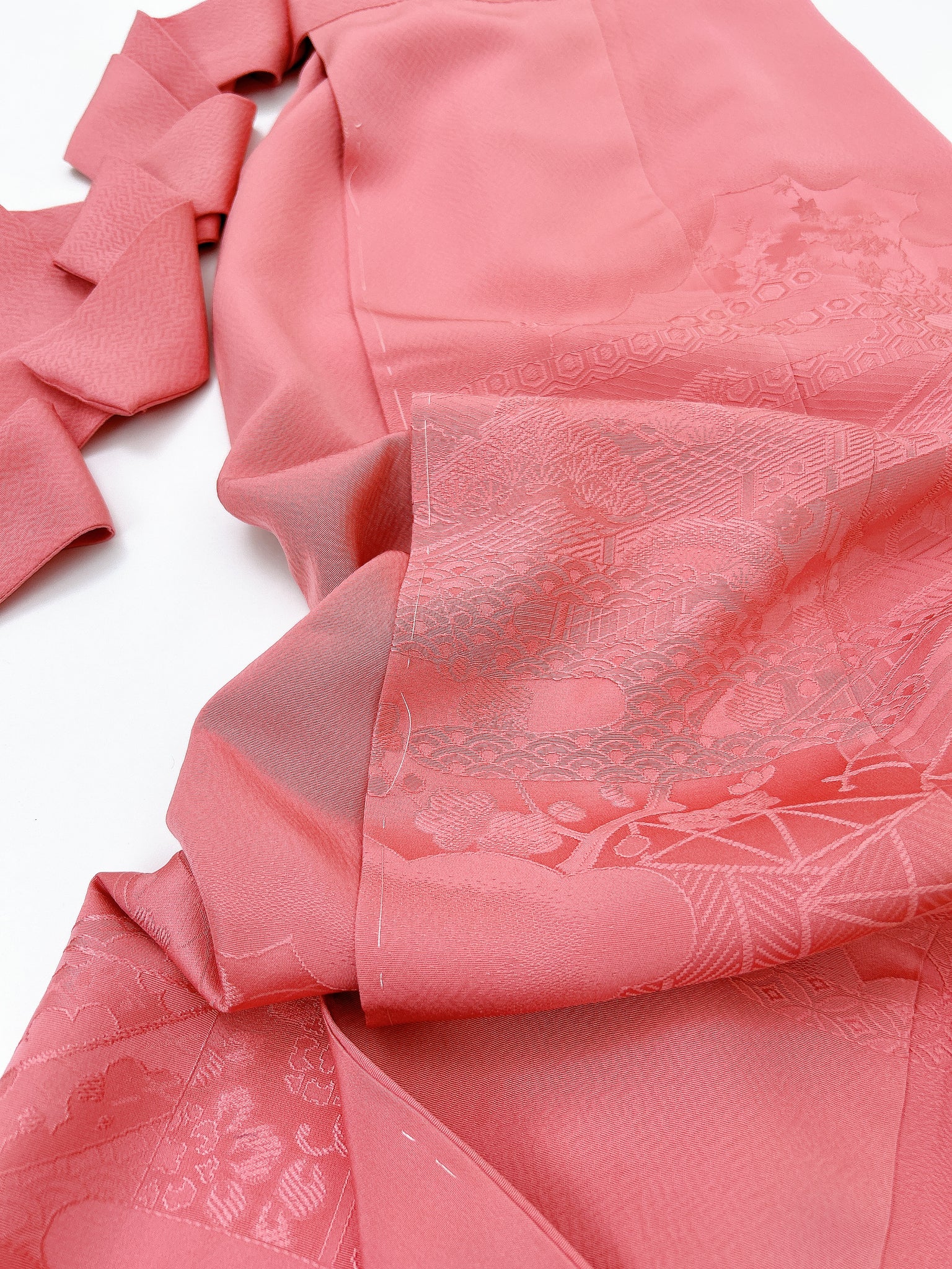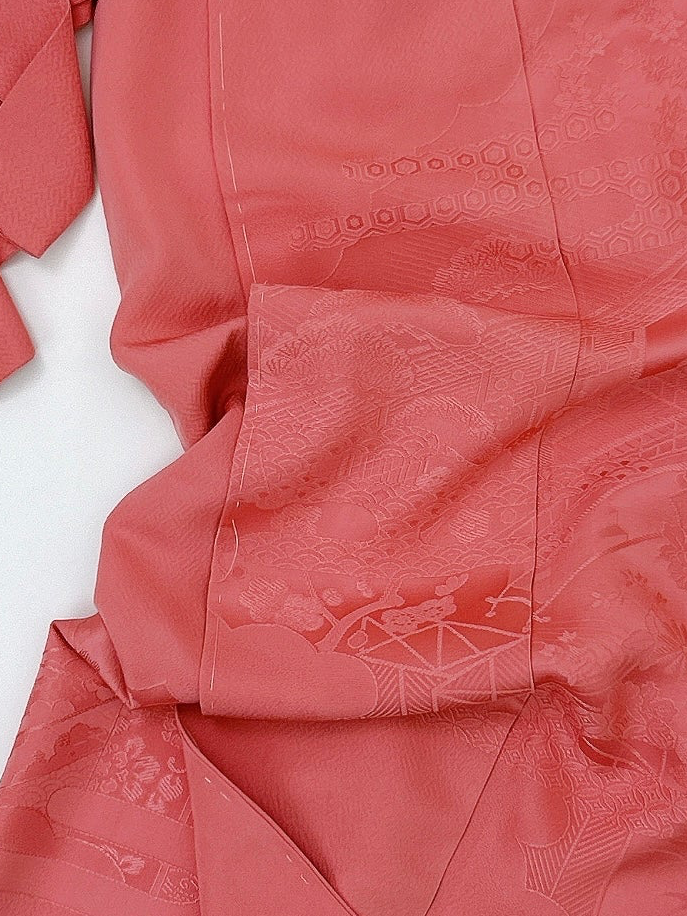 ⁑着物はシミや汚れ破れなどがつきもう着物としては着ることが難しくなったものや、ヴィンテージ、現代着物まで幅広く使用しておりますのでなるべくシミ汚れは逃がして仕立てております。が場合によっては少々アク、シミが付いてるものもございます。古いお着物の時代と時間の経過で現れるものですご理解のほどよろしくお願いもうしあげます。また正絹、化繊共に「防縮加工」をほどこしておりますので家でのお手入れが可能です。