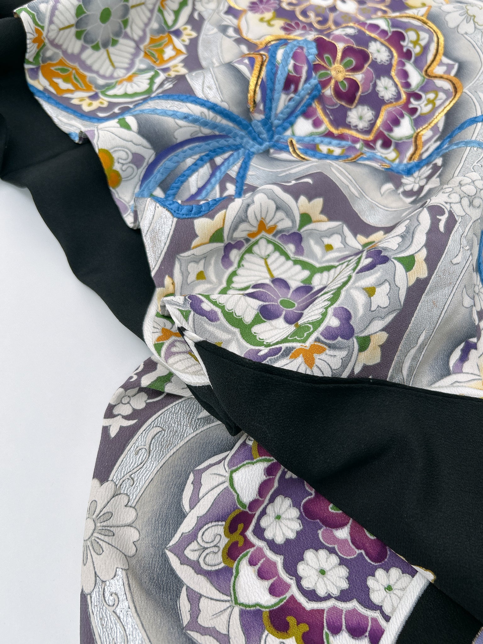 訪問着や付け下げは箔加工や刺繍、模様絵付けが特殊です。また胴裏、八掛がついておりますため水洗い厳禁。水に濡れると色移りする可能性がございます。お手入れはドライクリーニングにてお願い申し上げます。