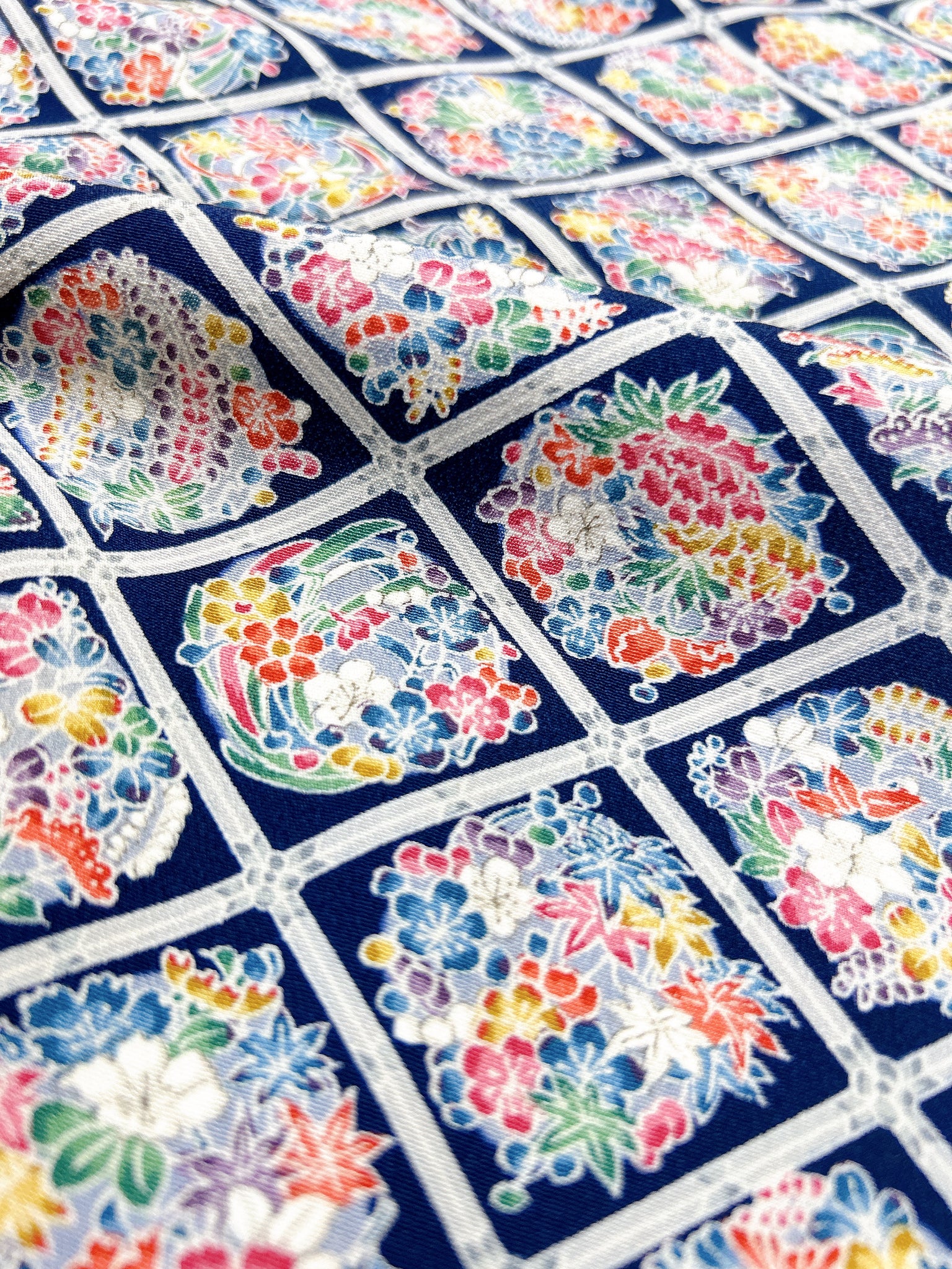⁑着物はシミや汚れ破れなどがつきもう着物としては着ることが難しくなったものや、ヴィンテージ、現代着物まで幅広く使用しておりますのでなるべくシミ汚れは逃がして仕立てております。が場合によっては少々アク、シミが付いてるものもございます。古いお着物の時代と時間の経過で現れるものですご理解のほどよろしくお願いもうしあげます。また正絹、化繊共に「防縮加工」をほどこしておりますので家でのお手入れが可能です。