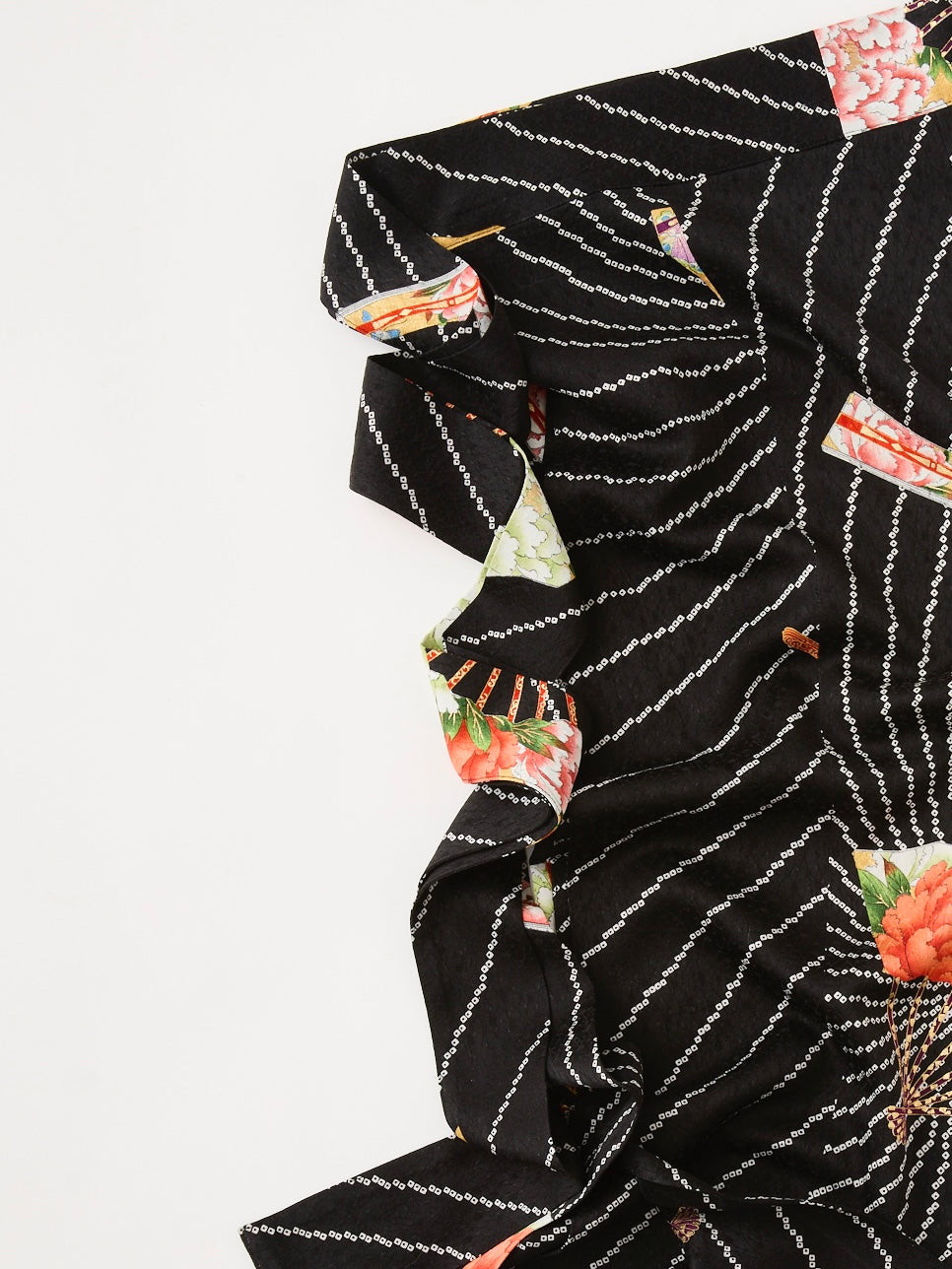 ⁑着物はシミや汚れ破れなどがつきもう着物としては着ることが難しくなったものや、ヴィンテージ、現代着物まで幅広く使用しておりますのでなるべくシミ汚れは逃がして仕立てております。が場合によっては少々アク、シミが付いてるものもございます。古いお着物の時代と時間の経過で現れるものですご理解のほどよろしくお願いもうしあげます。また正絹、化繊共に「防縮加工」をほどこしておりますので家でのお手入れが可能です。