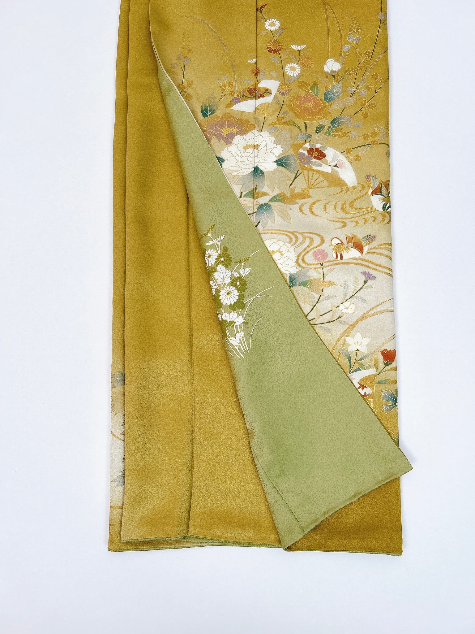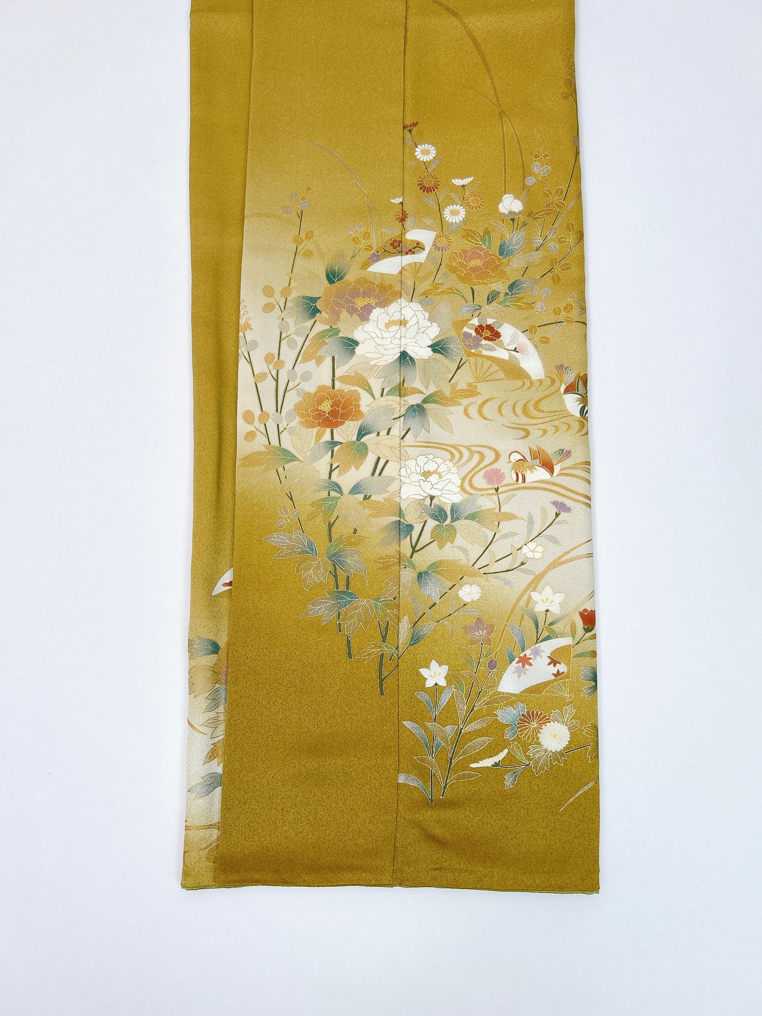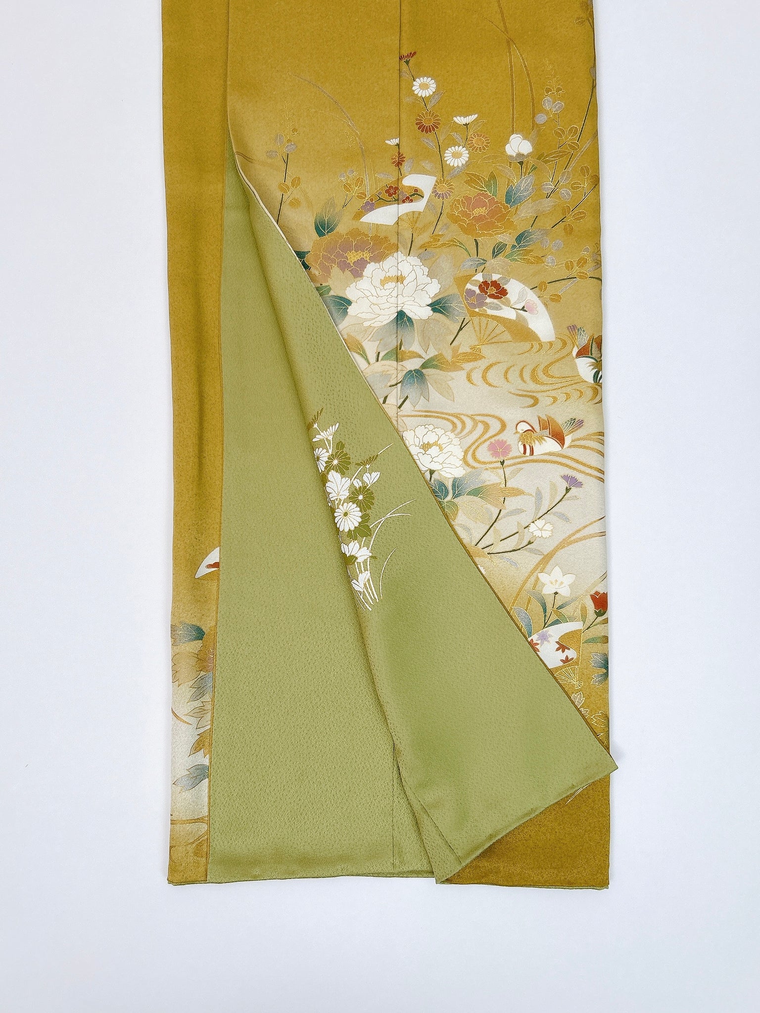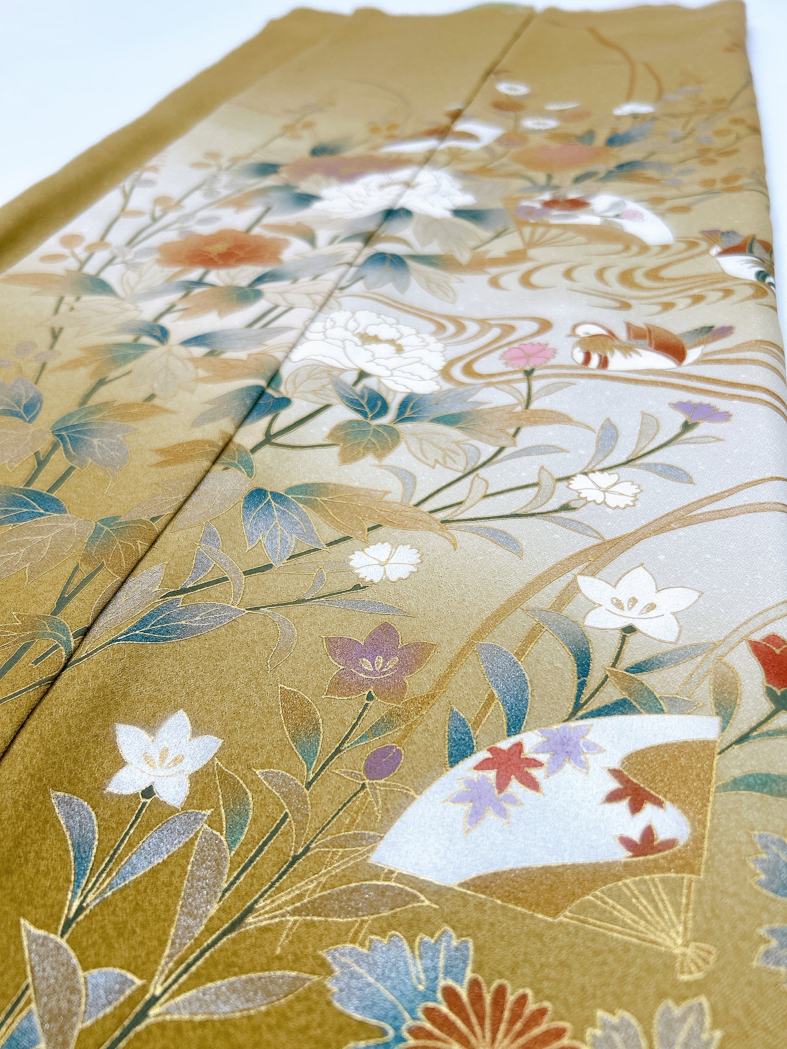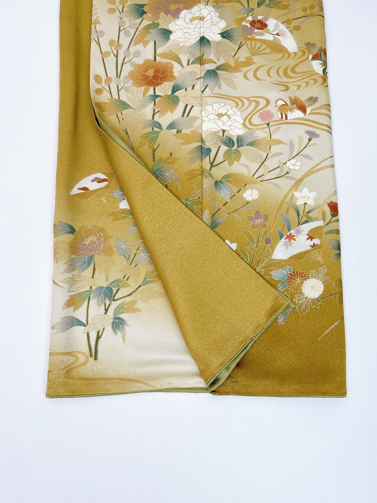 流水扇面鴛鴦花模様・暈し染め【フォーマルシュッケニ】