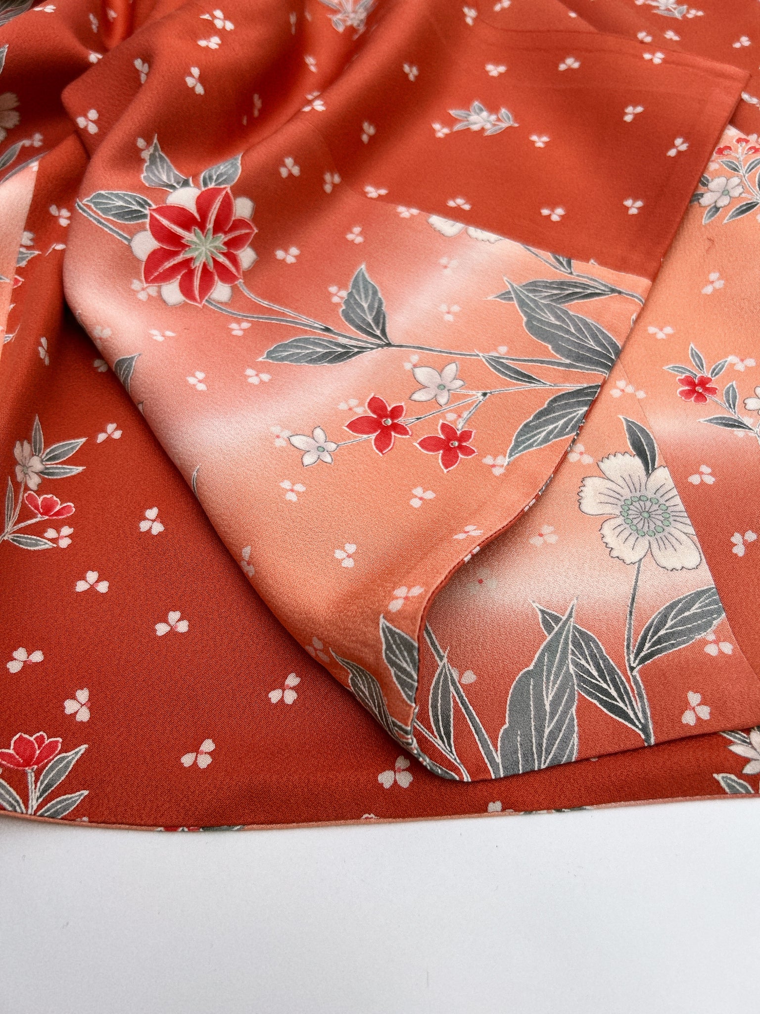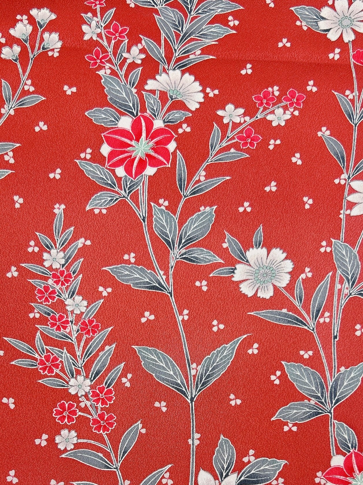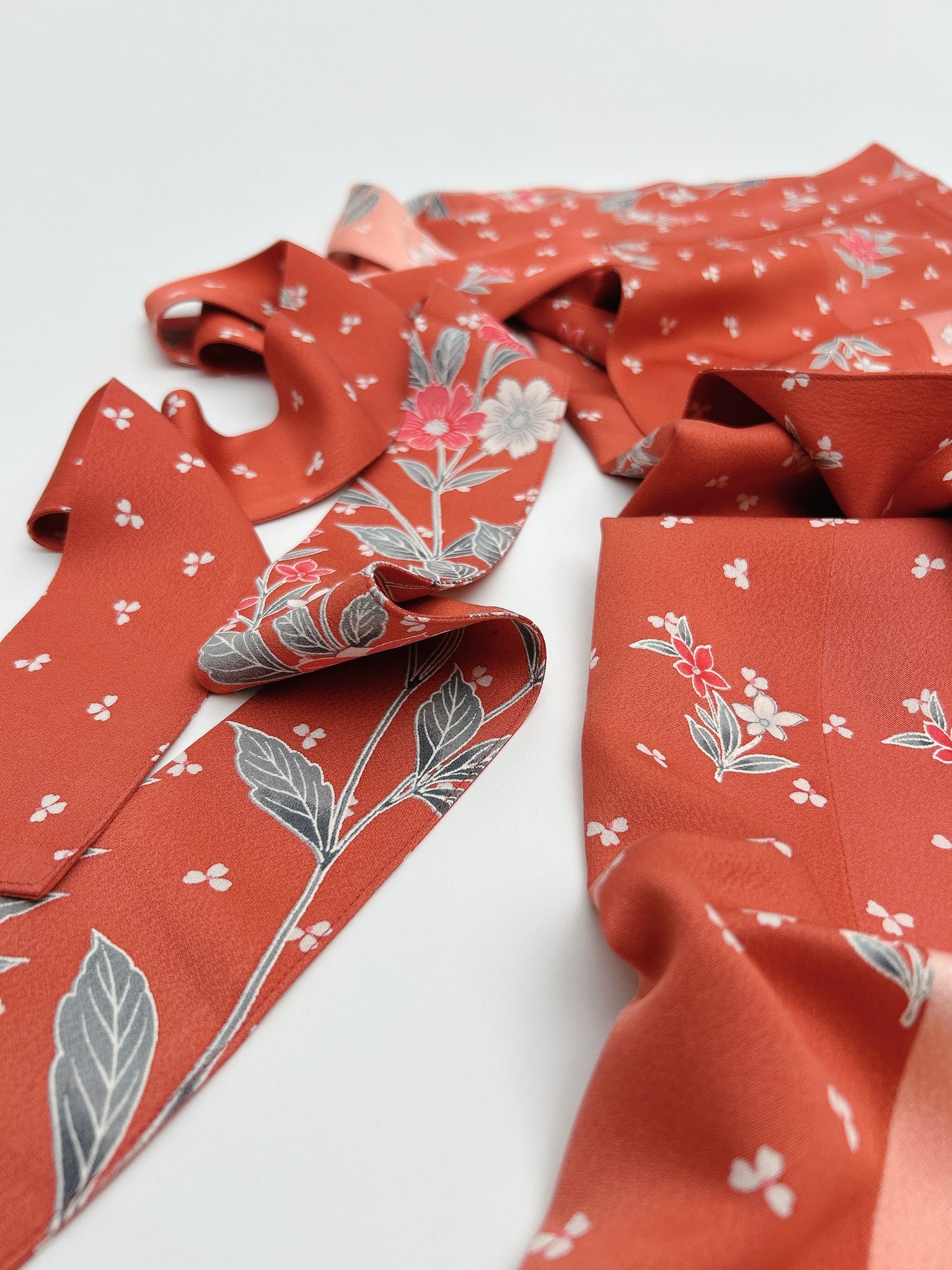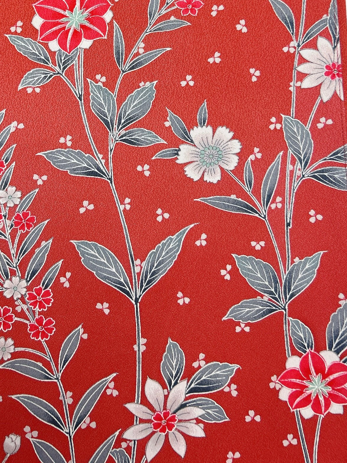 ⁑着物はシミや汚れ破れなどがつきもう着物としては着ることが難しくなったものや、ヴィンテージ、現代着物まで幅広く使用しておりますのでなるべくシミ汚れは逃がして仕立てております。が場合によっては少々アク、シミが付いてるものもございます。古いお着物の時代と時間の経過で現れるものですご理解のほどよろしくお願いもうしあげます。また正絹、化繊共に「防縮加工」をほどこしておりますので家でのお手入れが可能です。