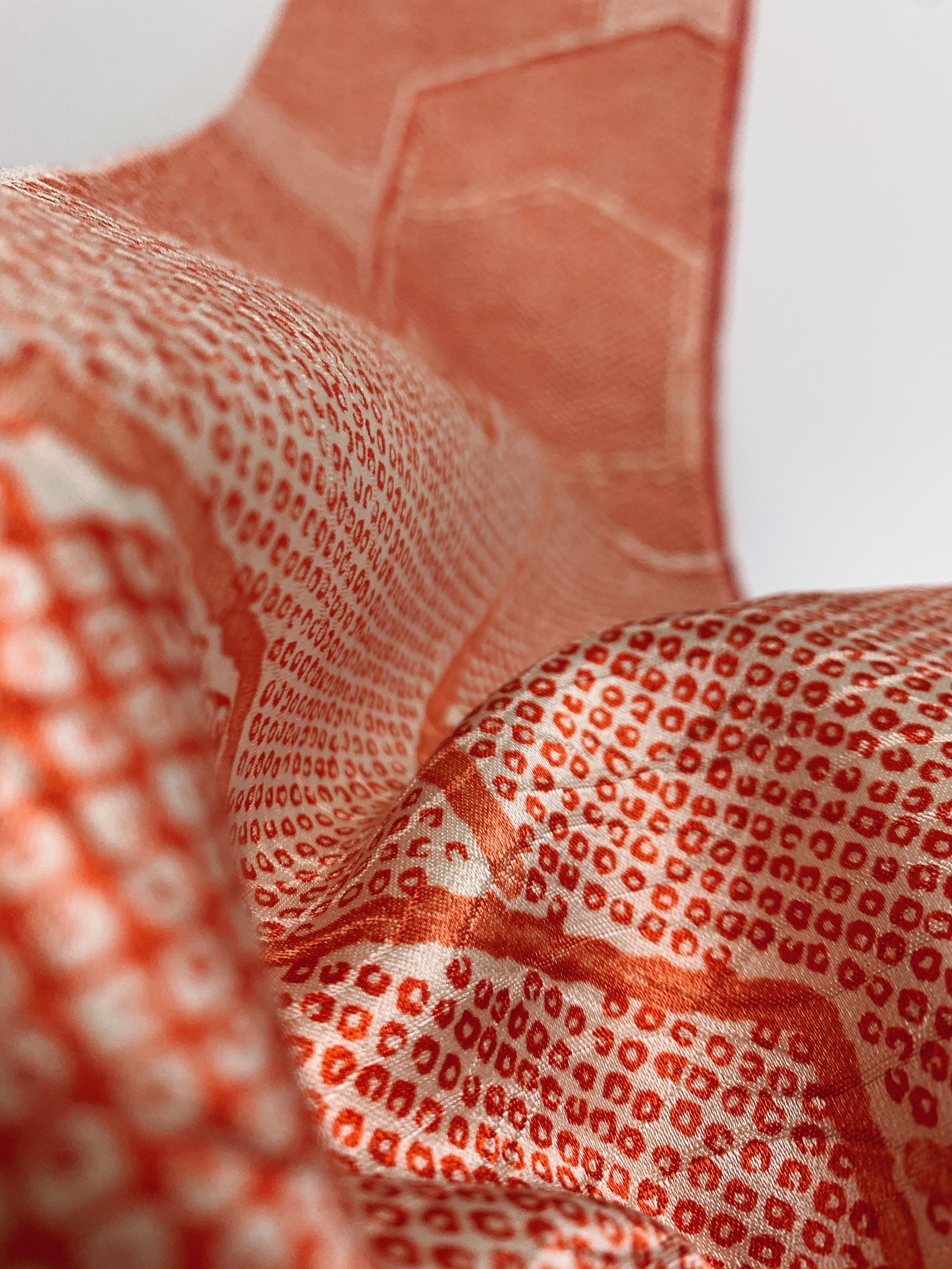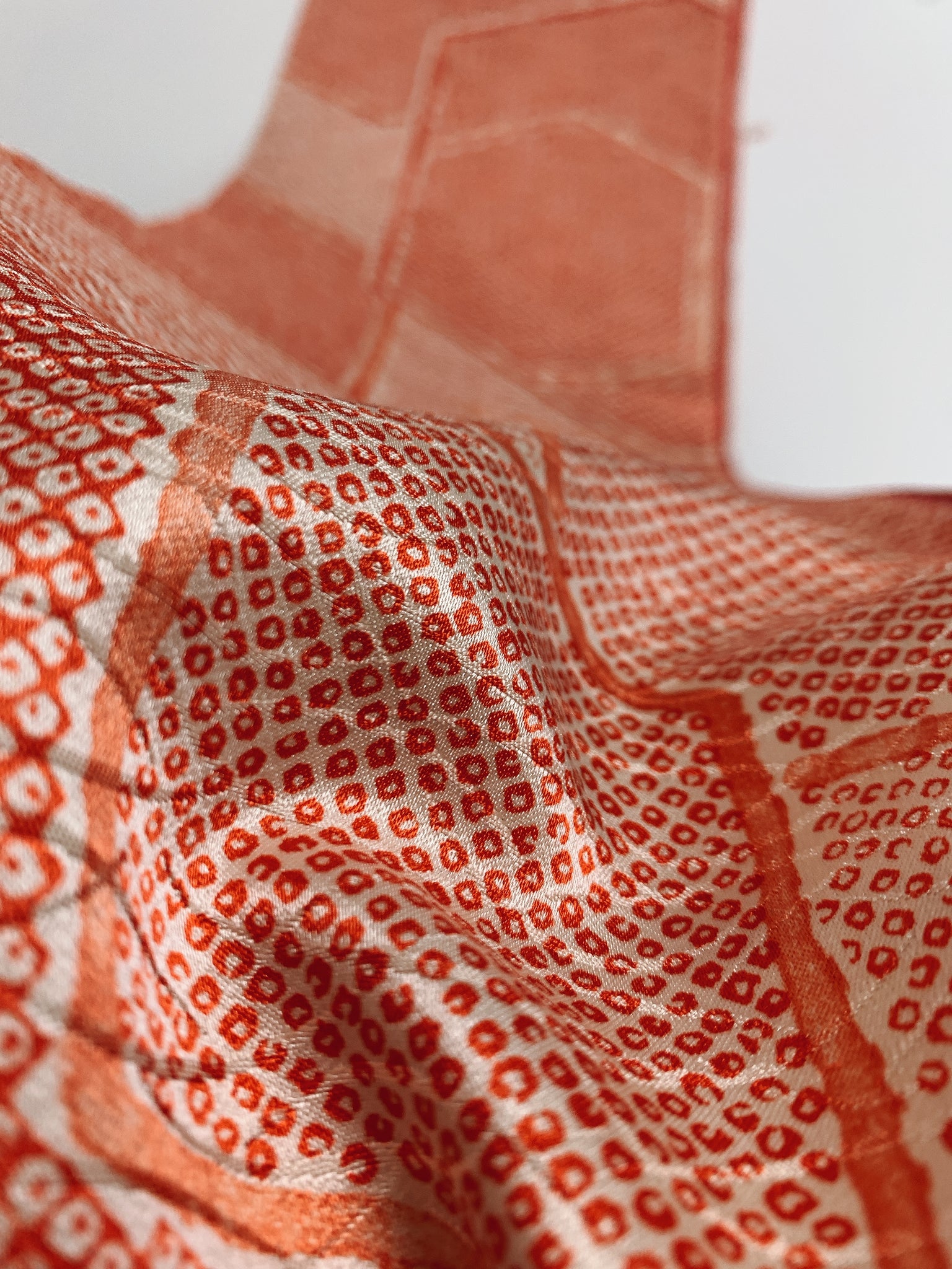 ⁑着物はシミや汚れ破れなどがつきもう着物としては着ることが難しくなったものや、ヴィンテージ、現代着物まで幅広く使用しておりますのでなるべくシミ汚れは逃がして仕立てております。が場合によっては少々アク、シミが付いてるものもございます。古いお着物の時代と時間の経過で現れるものですご理解のほどよろしくお願いもうしあげます。また正絹、化繊共に「防縮加工」をほどこしておりますので家でのお手入れが可能です。