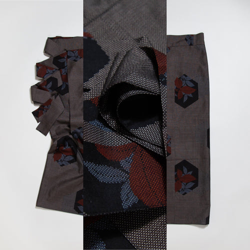 • 亀甲に草葉模様織り出し本場泥大島紬(7マルキ)
