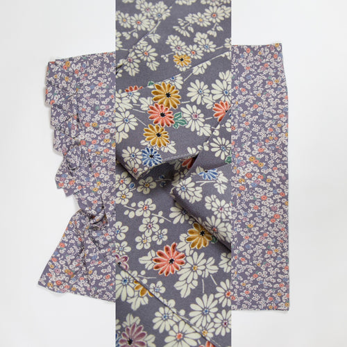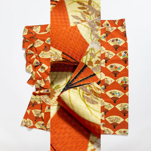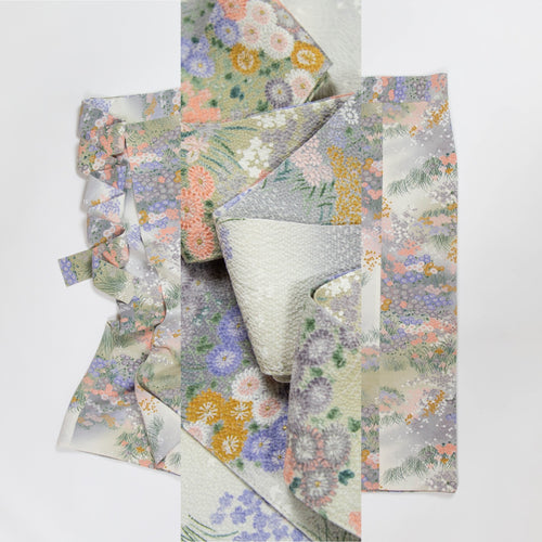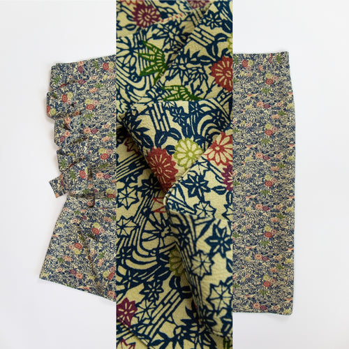 • 扇面に秋草模様付け下げ小紋総麻地紋