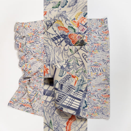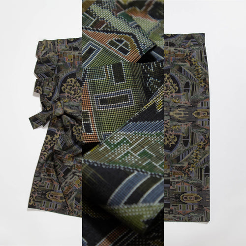 • 橋に家屋風景模様織り出し本場泥大島紬5マルキ