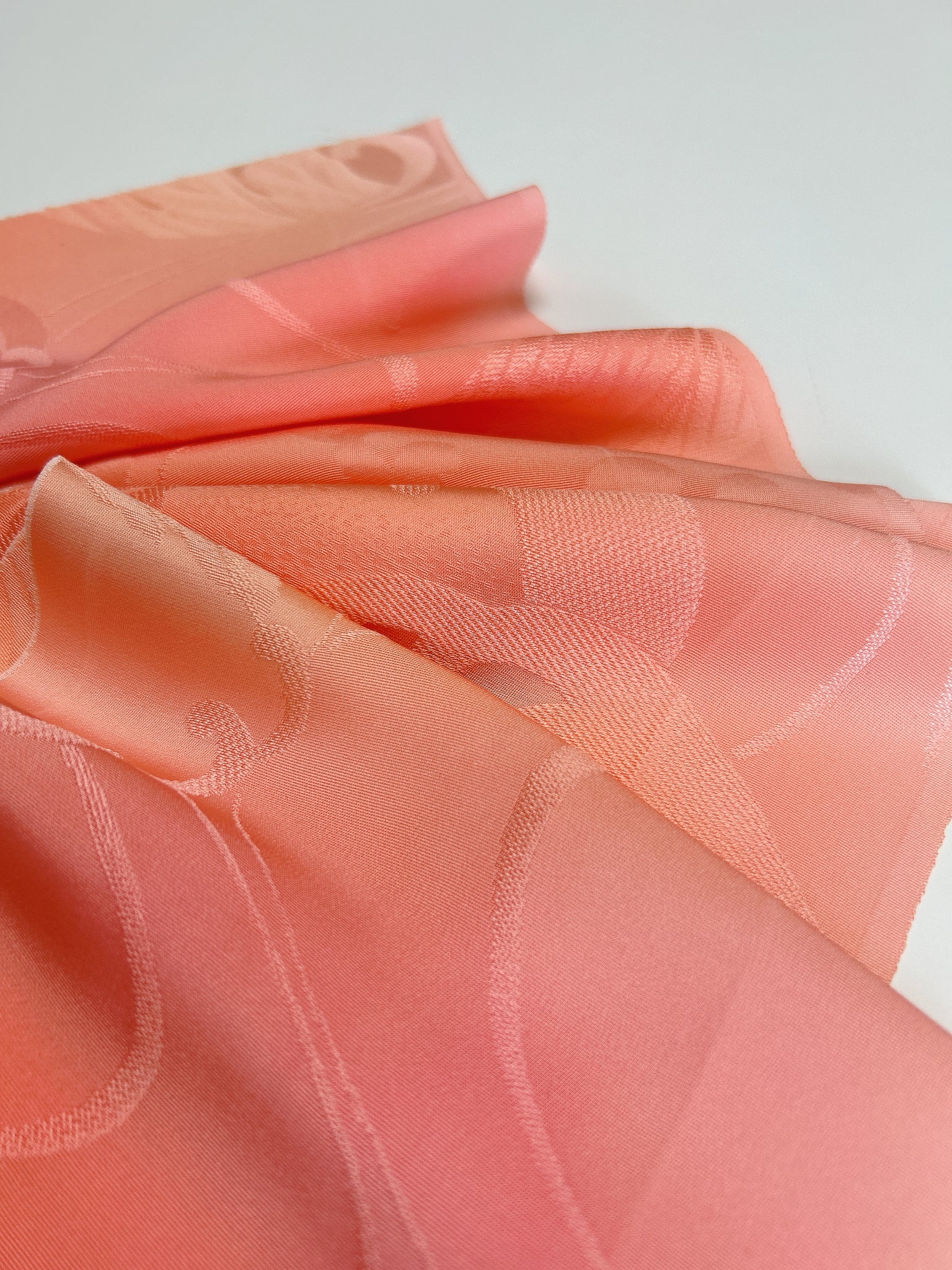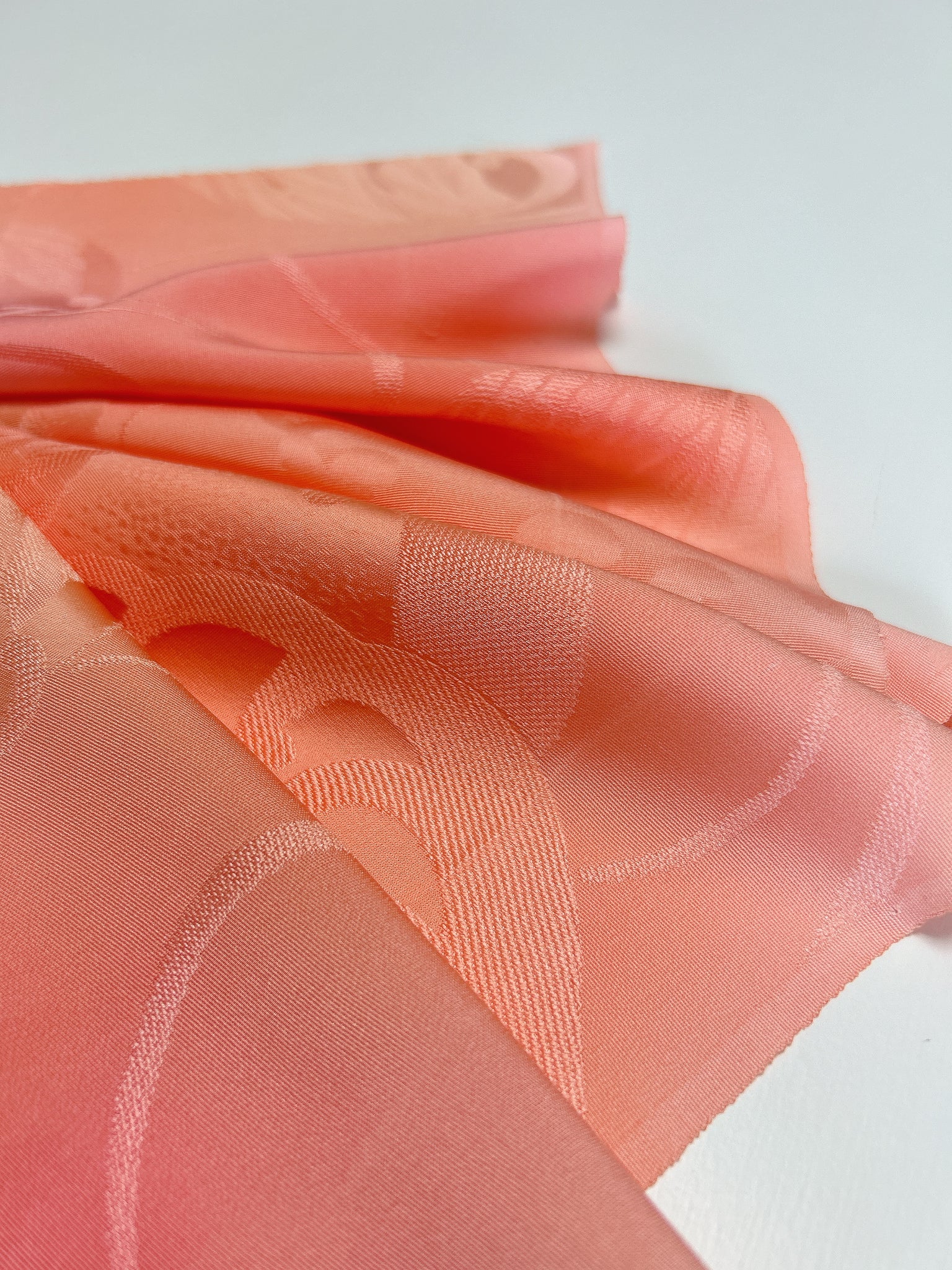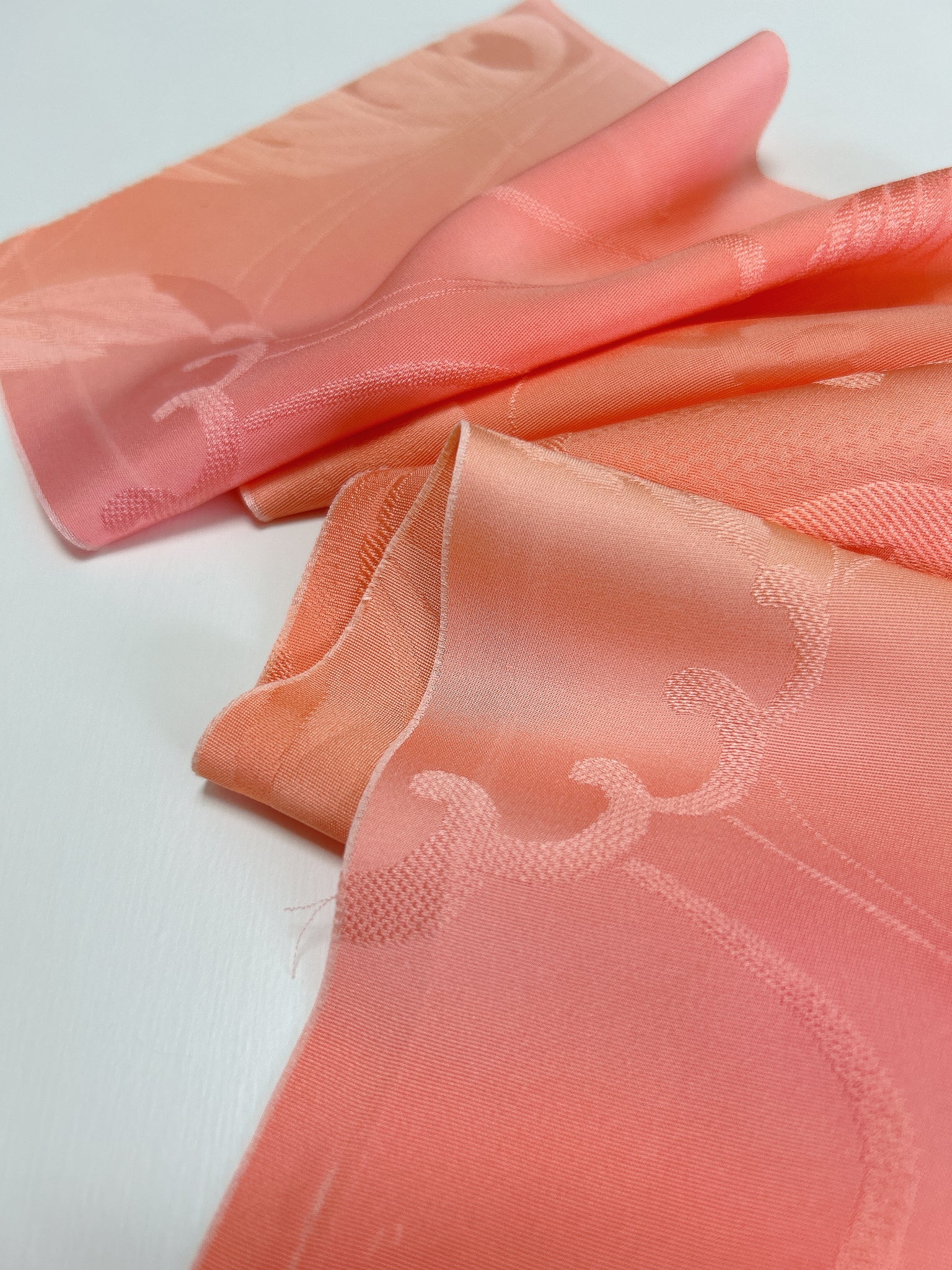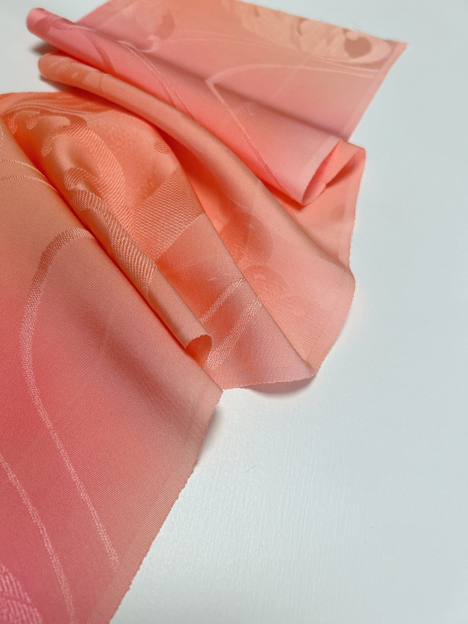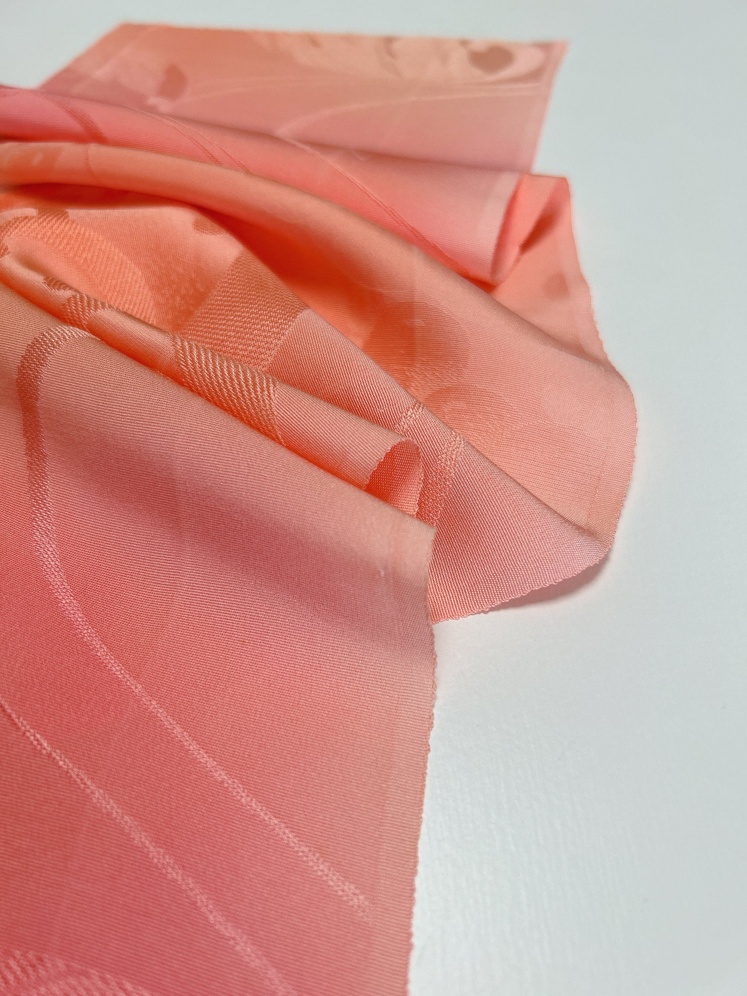 絹織物でございます、濡れた状態では摩擦に弱いため洗濯機でのお洗濯はお控えください、状態を綺麗に長く保つためにも手洗いでの手入れ、もしくはドライクリーニングがおすすめです。