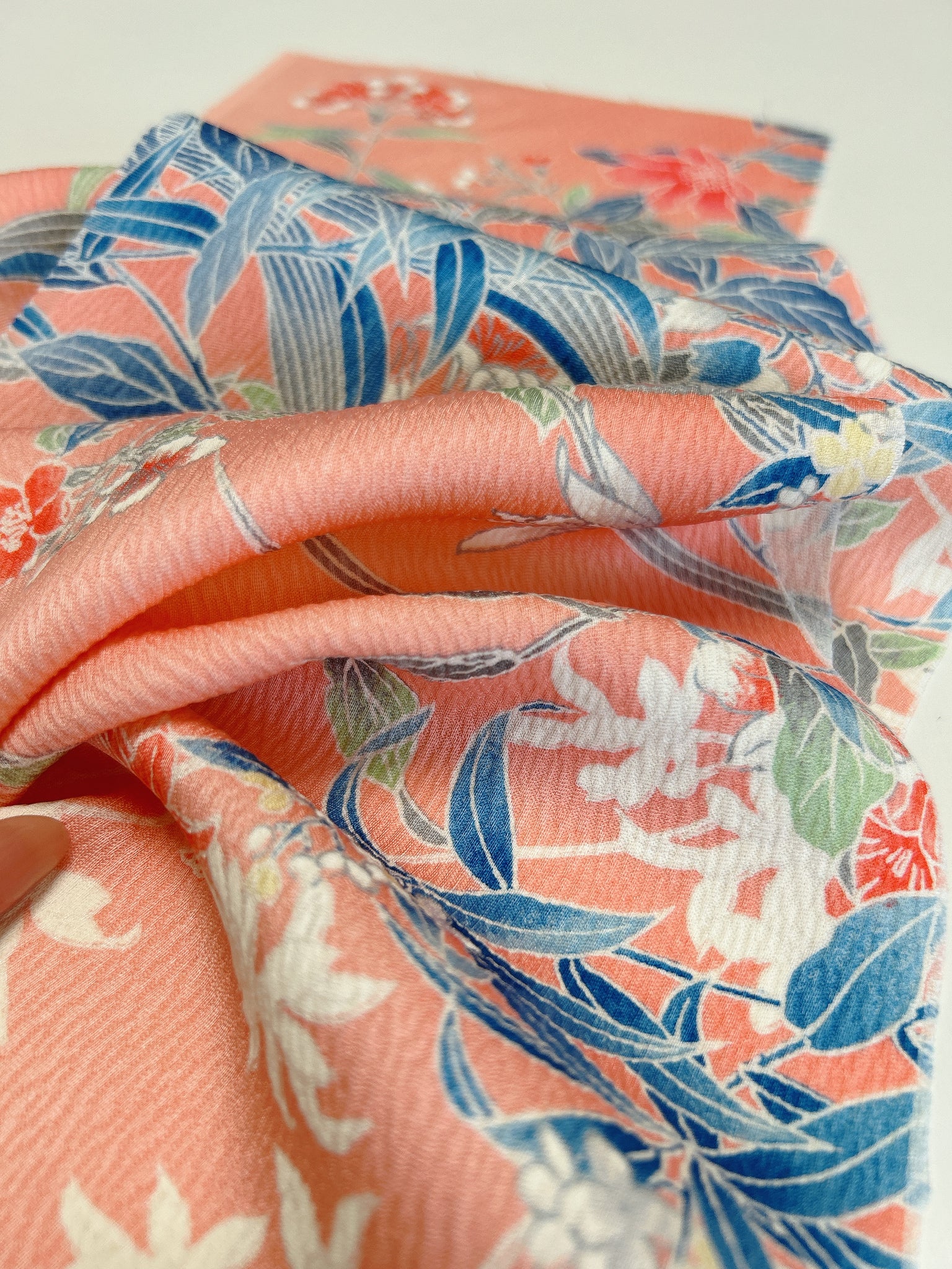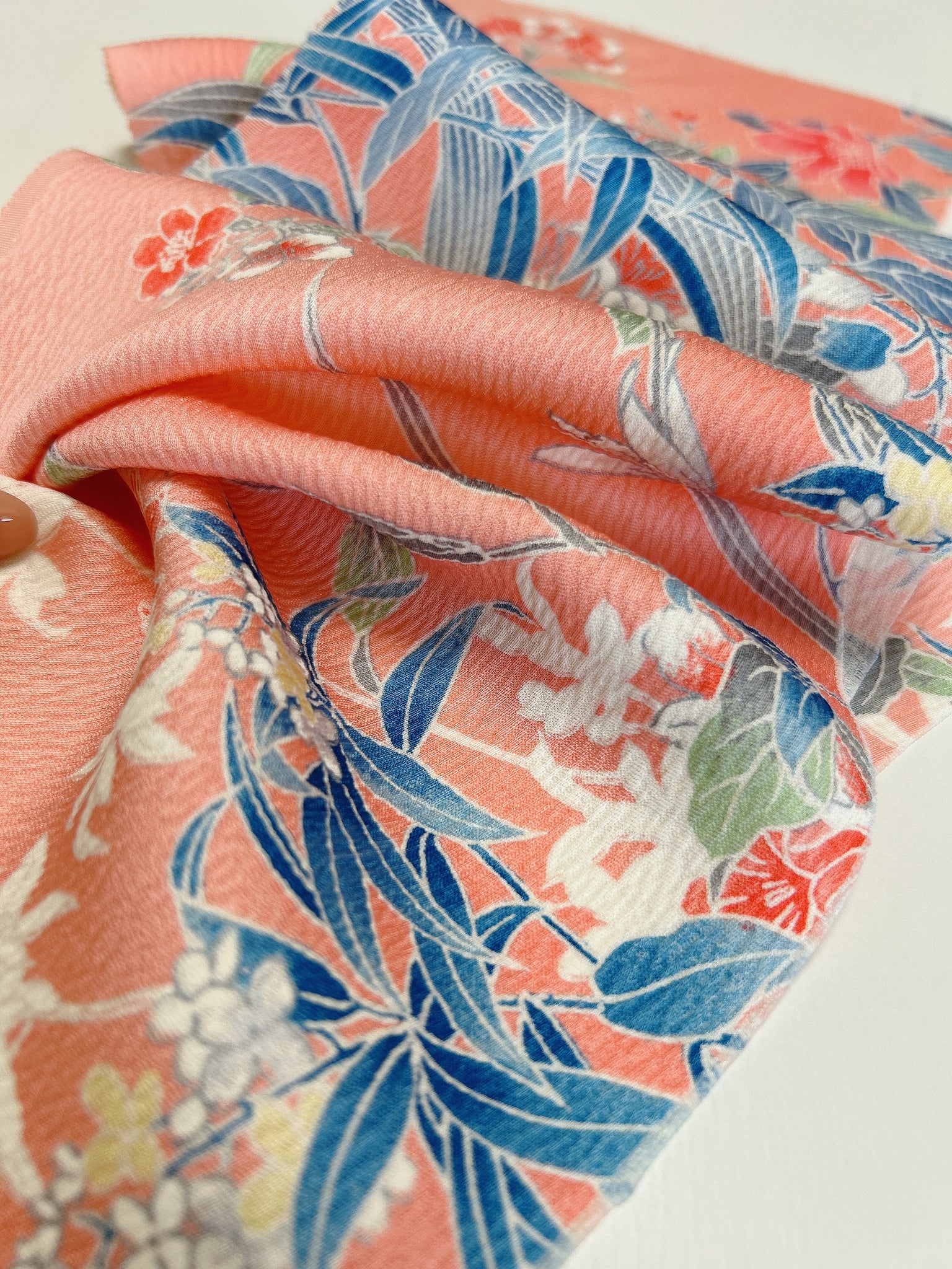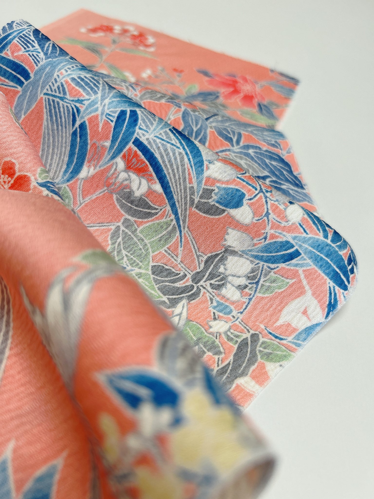 絹織物でございます、濡れた状態では摩擦に弱いため洗濯機でのお洗濯はお控えください、状態を綺麗に長く保つためにも手洗いでの手入れ、もしくはドライクリーニングがおすすめです。