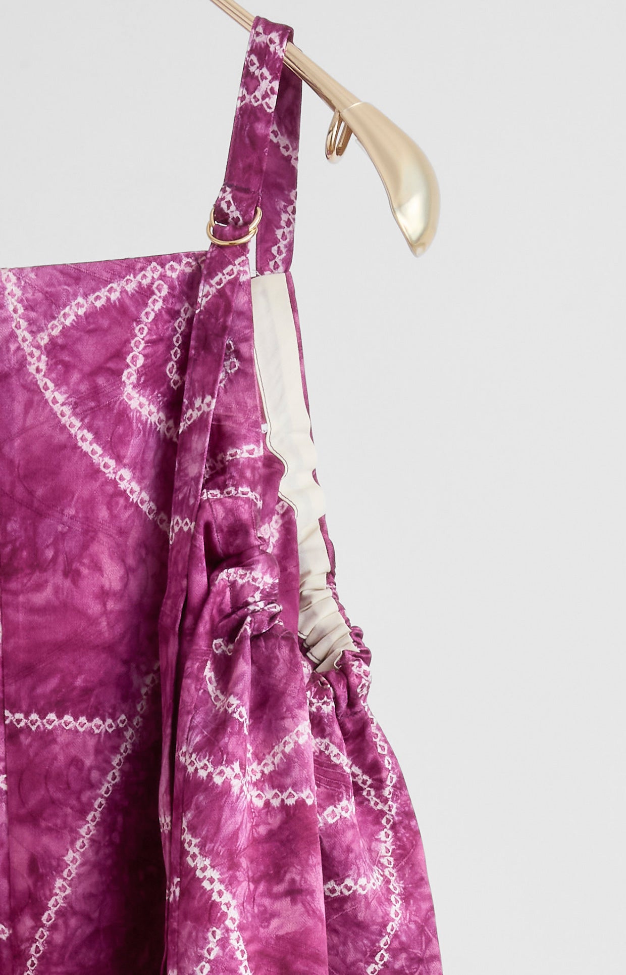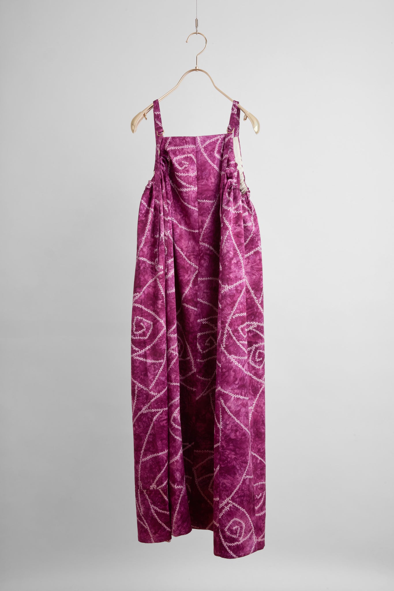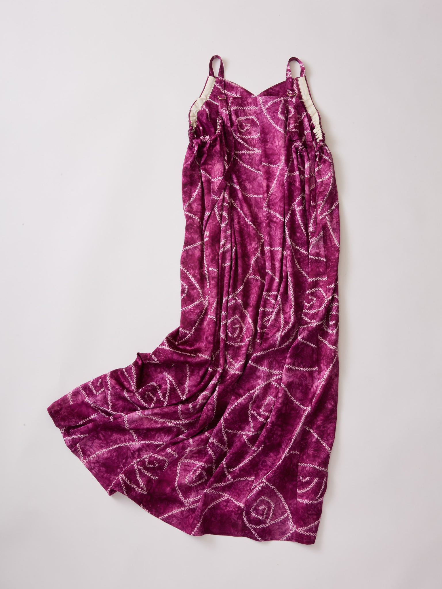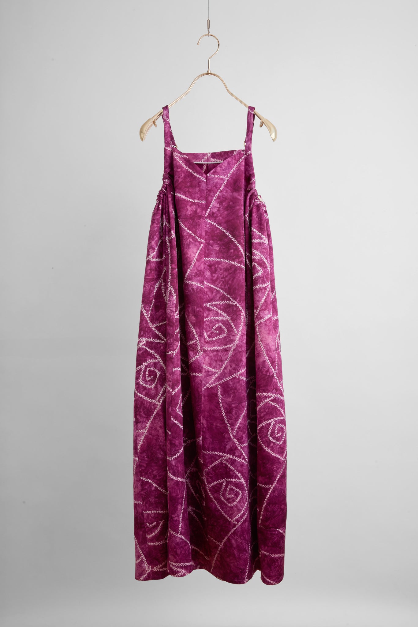 こちらのワンピースは、サイドのギャザーで胸回り、肩紐のリングで丈の両方が自分好みのサイズに長さに調整ができる一品。ほぼ垂直裁ちでおつくりしておりますので着たときしっかり布の重みで落ち感がつくれるようにしました。