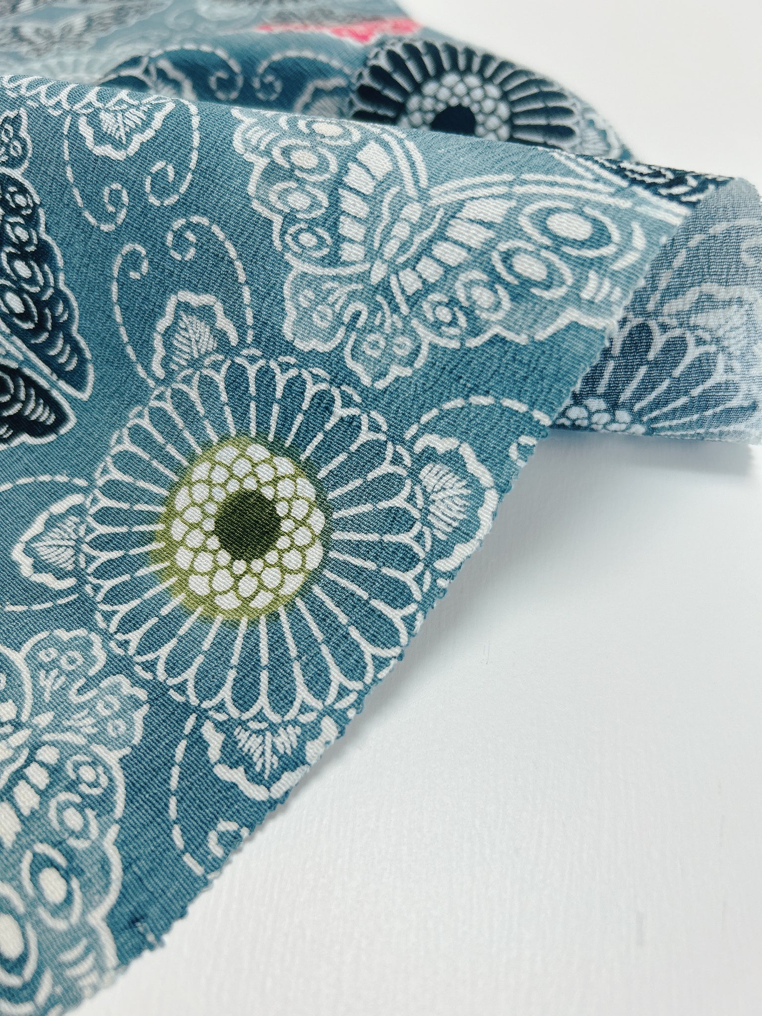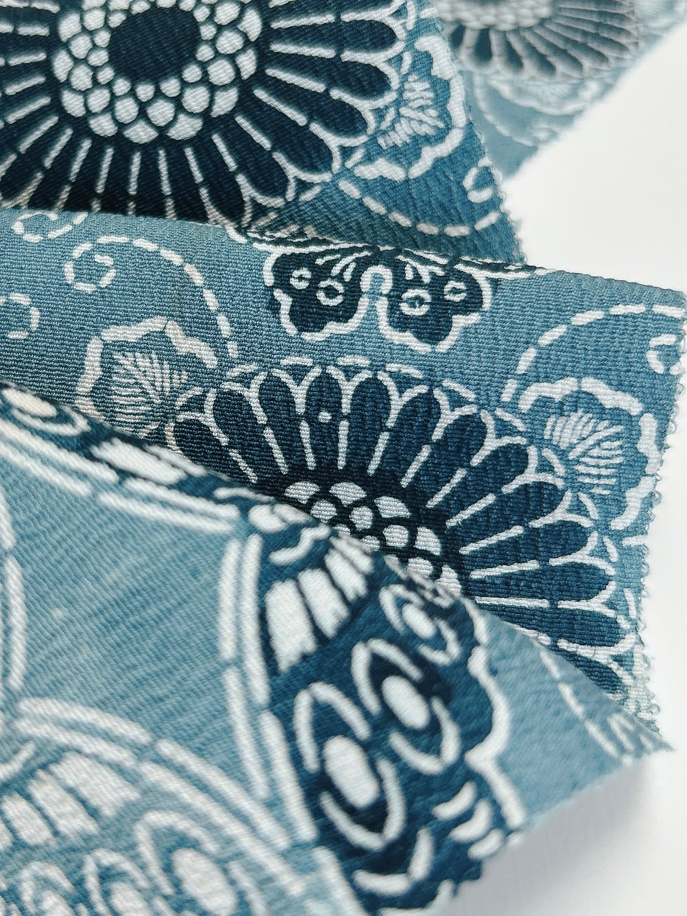 絹織物でございます、濡れた状態では摩擦に弱いため洗濯機でのお洗濯はお控えください、状態を綺麗に長く保つためにも手洗いでの手入れ、もしくはドライクリーニングがおすすめです。※お湯、ぬるま湯でのお手入れ厳禁
