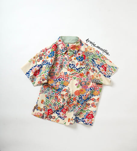 手染め葉幾何学立涌模様 (ビンテージ)【S】
