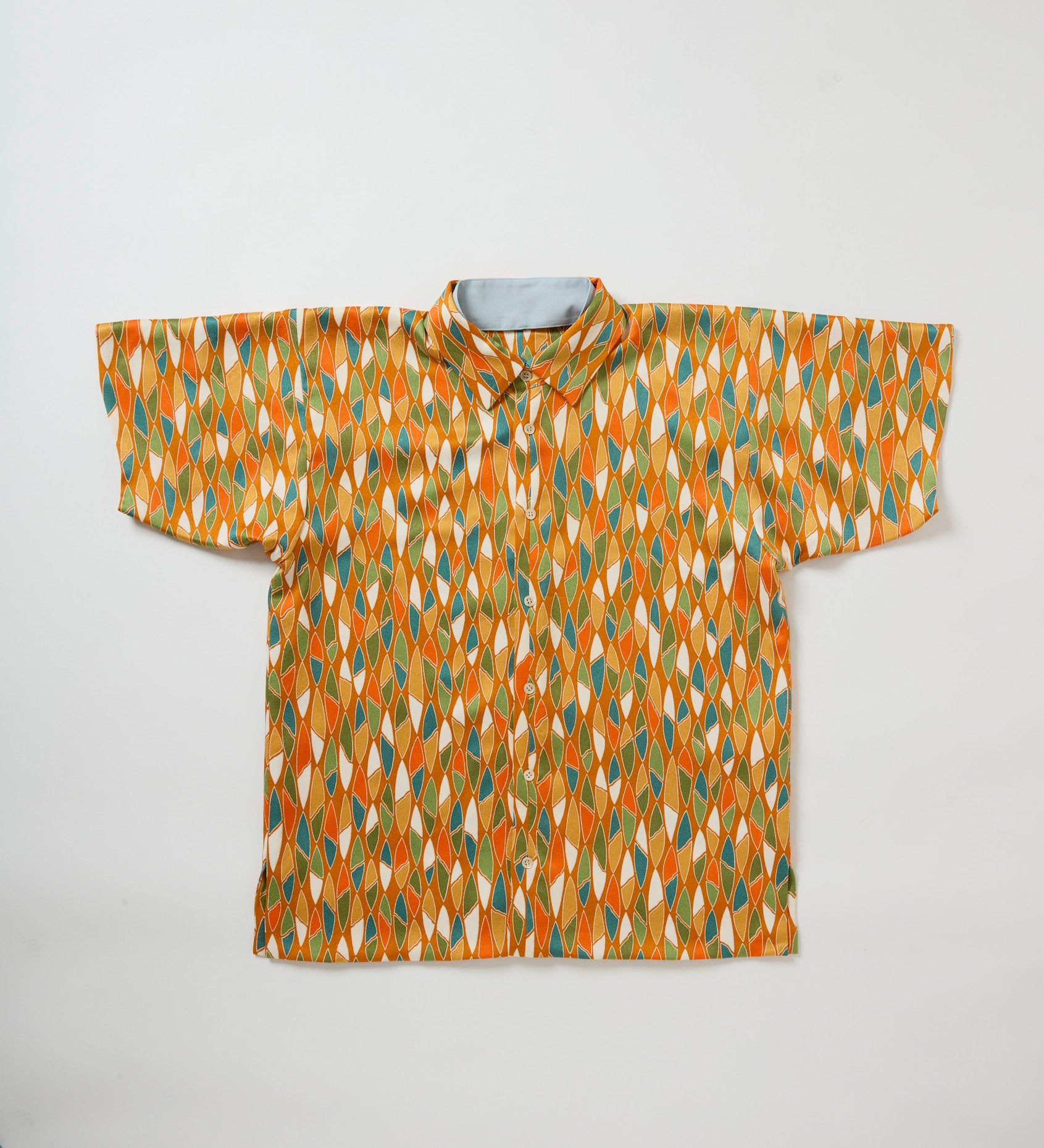 羽織・着物の形を元にシャツの型紙を起こしたデザインに進化しました。