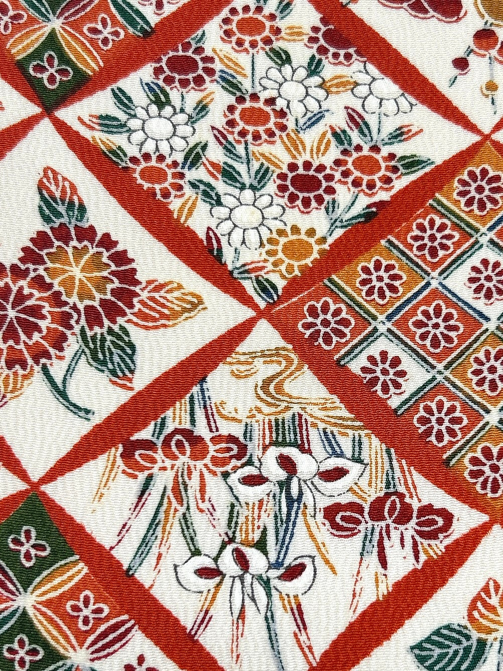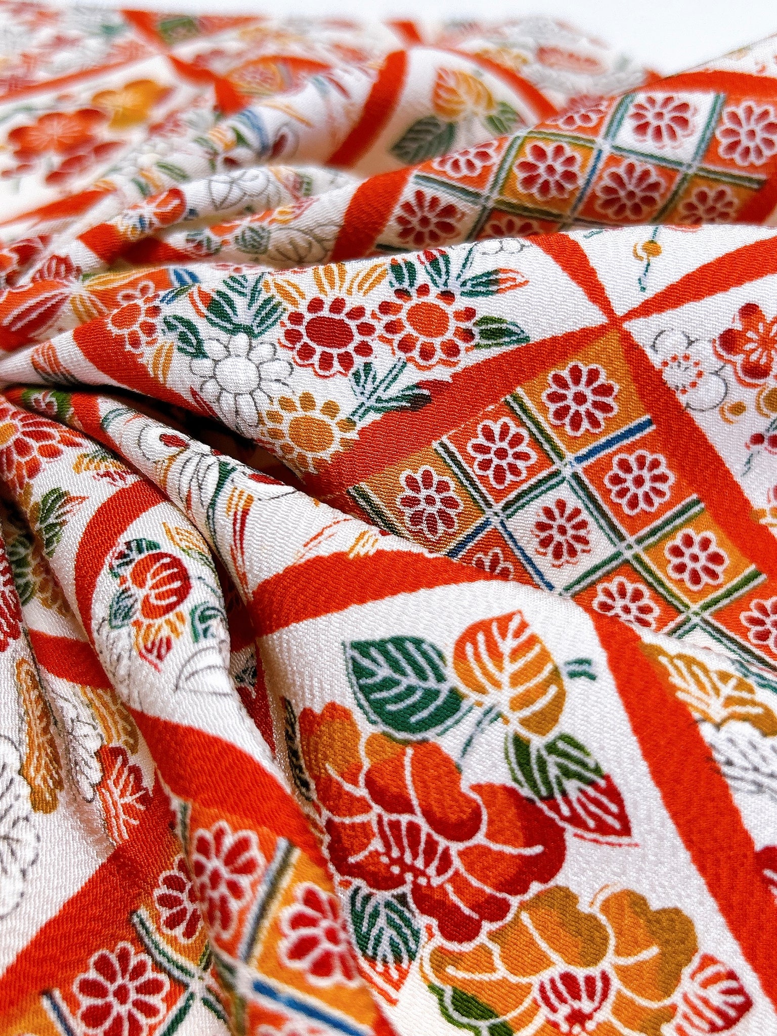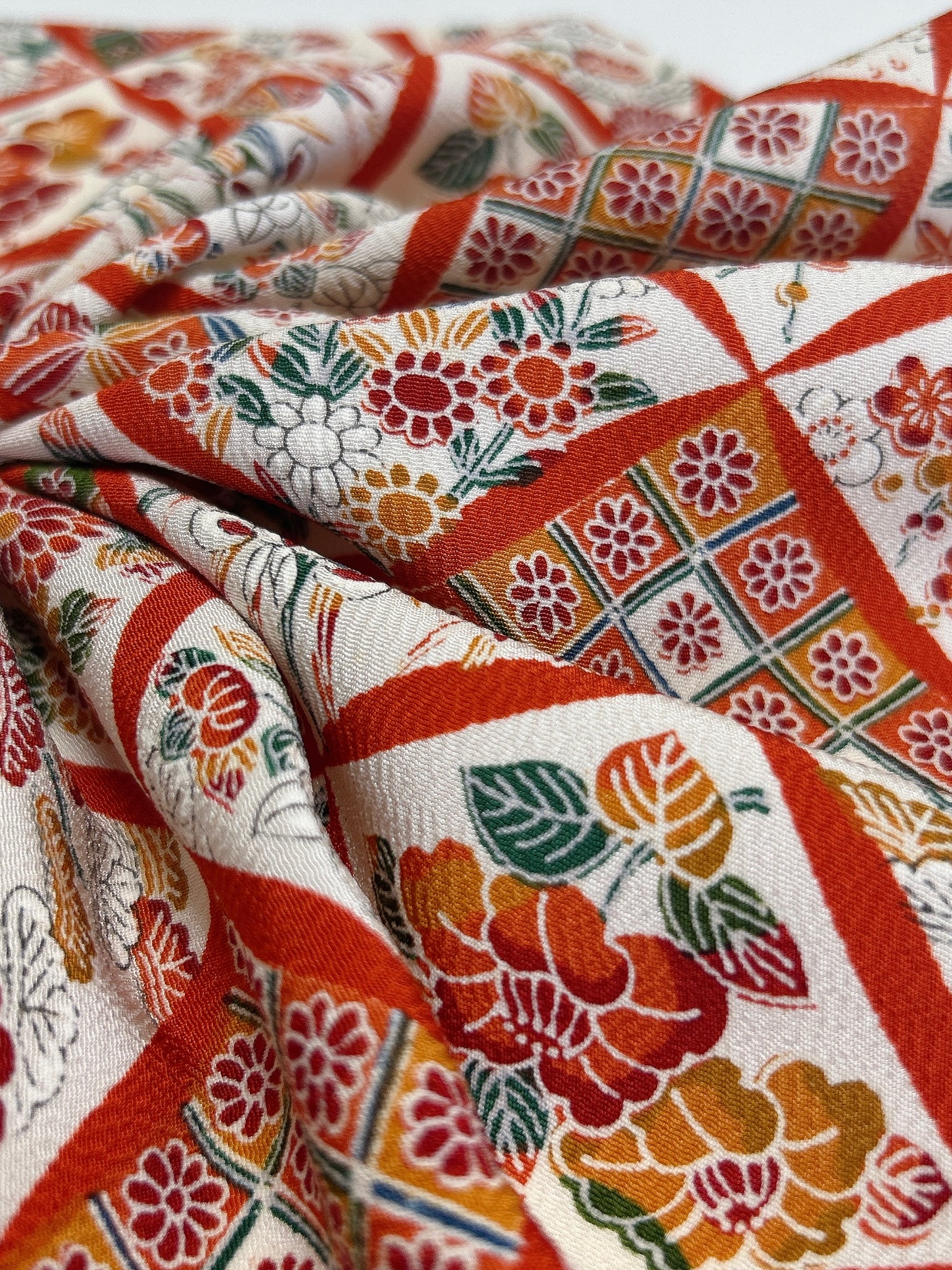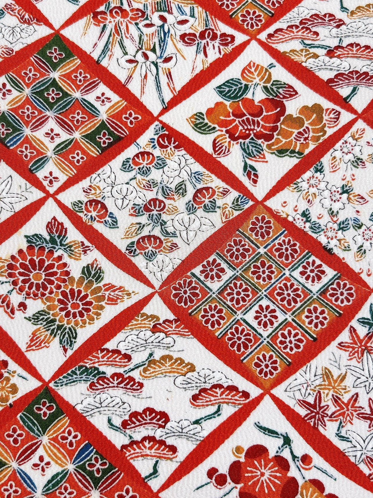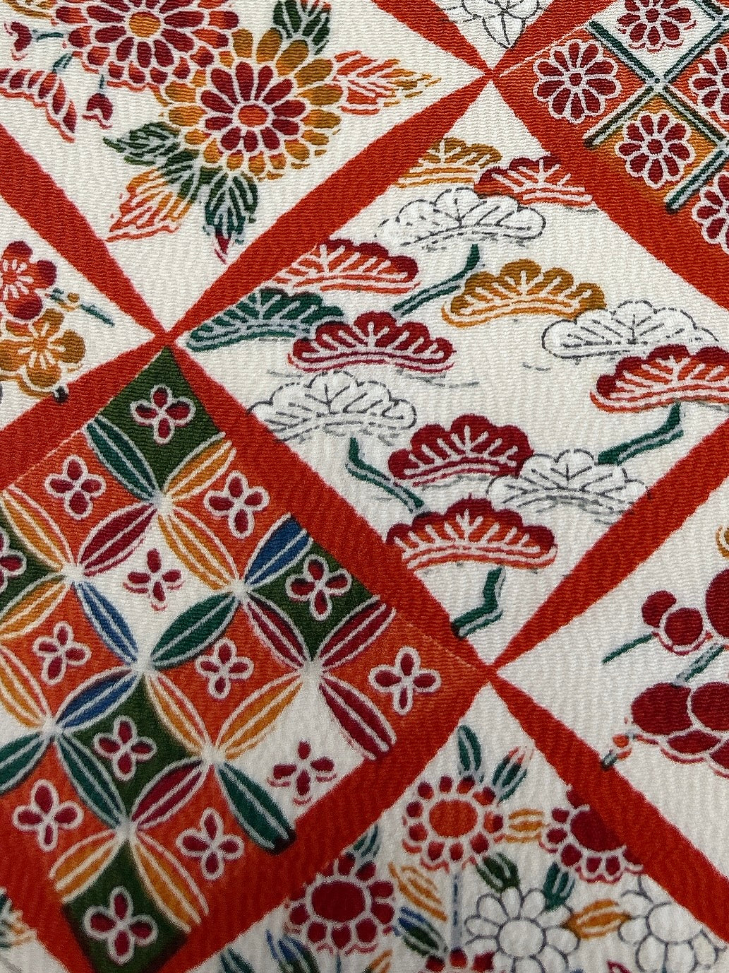 ⁑着物はシミや汚れ破れなどがつきもう着物としては着ることが難しくなったものや、ヴィンテージ、現代着物まで幅広く使用しておりますのでなるべくシミ汚れは逃がして仕立てております。が場合によっては少々アク、シミが付いてるものもございます。古いお着物の時代と時間の経過で現れるものですご理解のほどよろしくお願いもうしあげます。