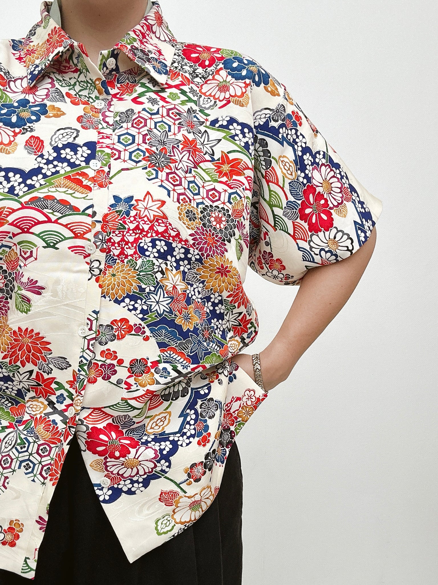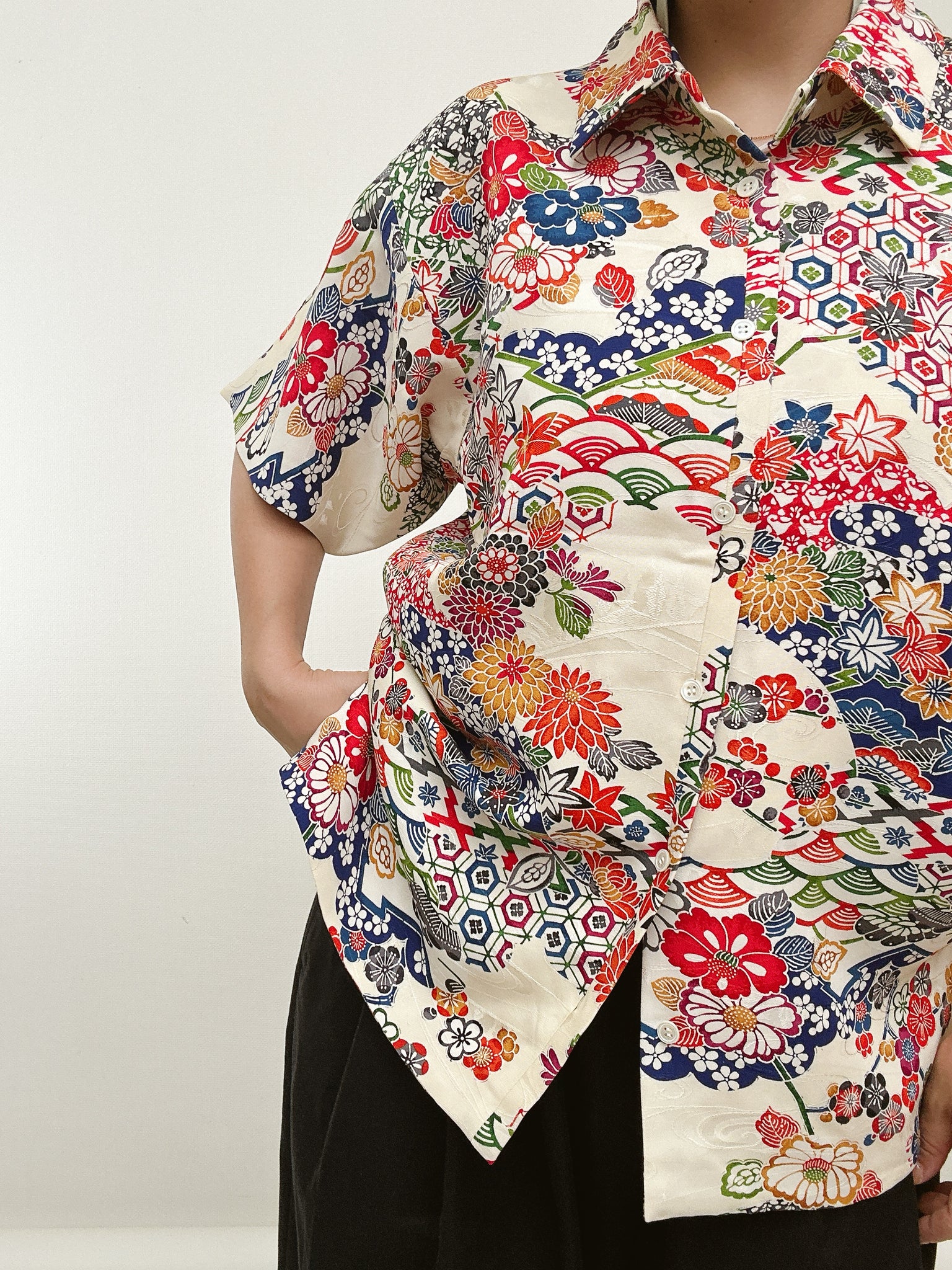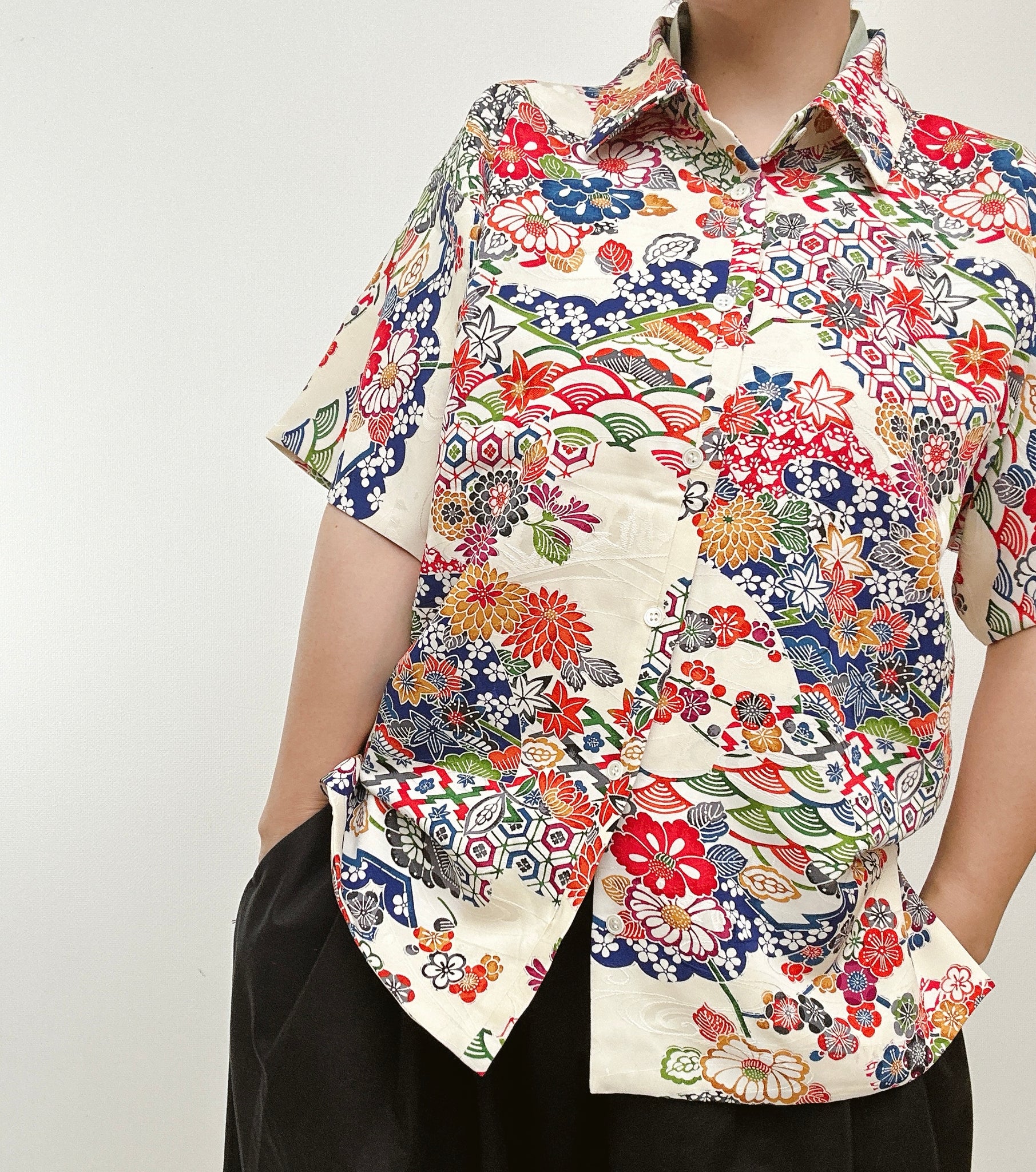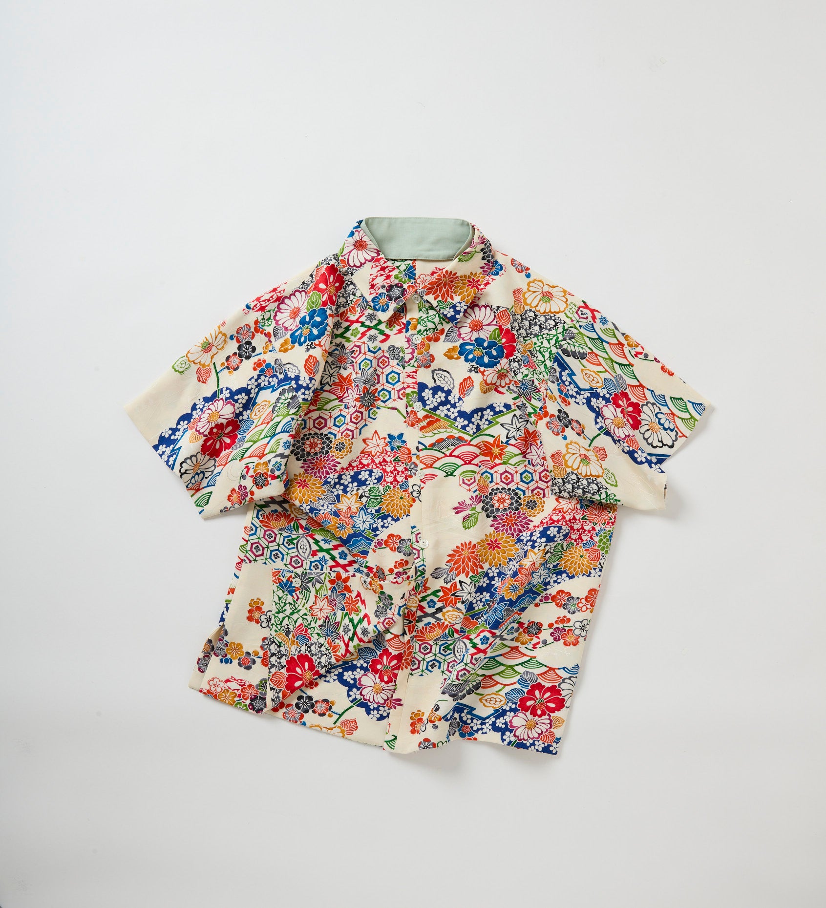 羽織・着物の形を元にシャツの型紙を起こしたデザインに進化しました。