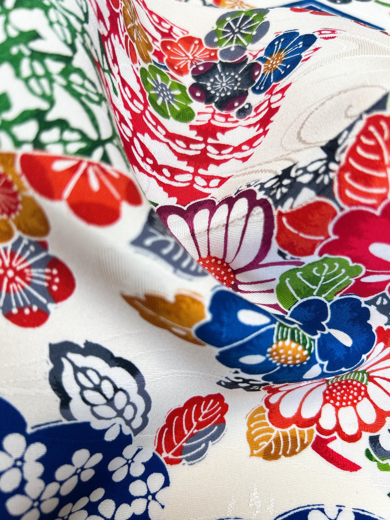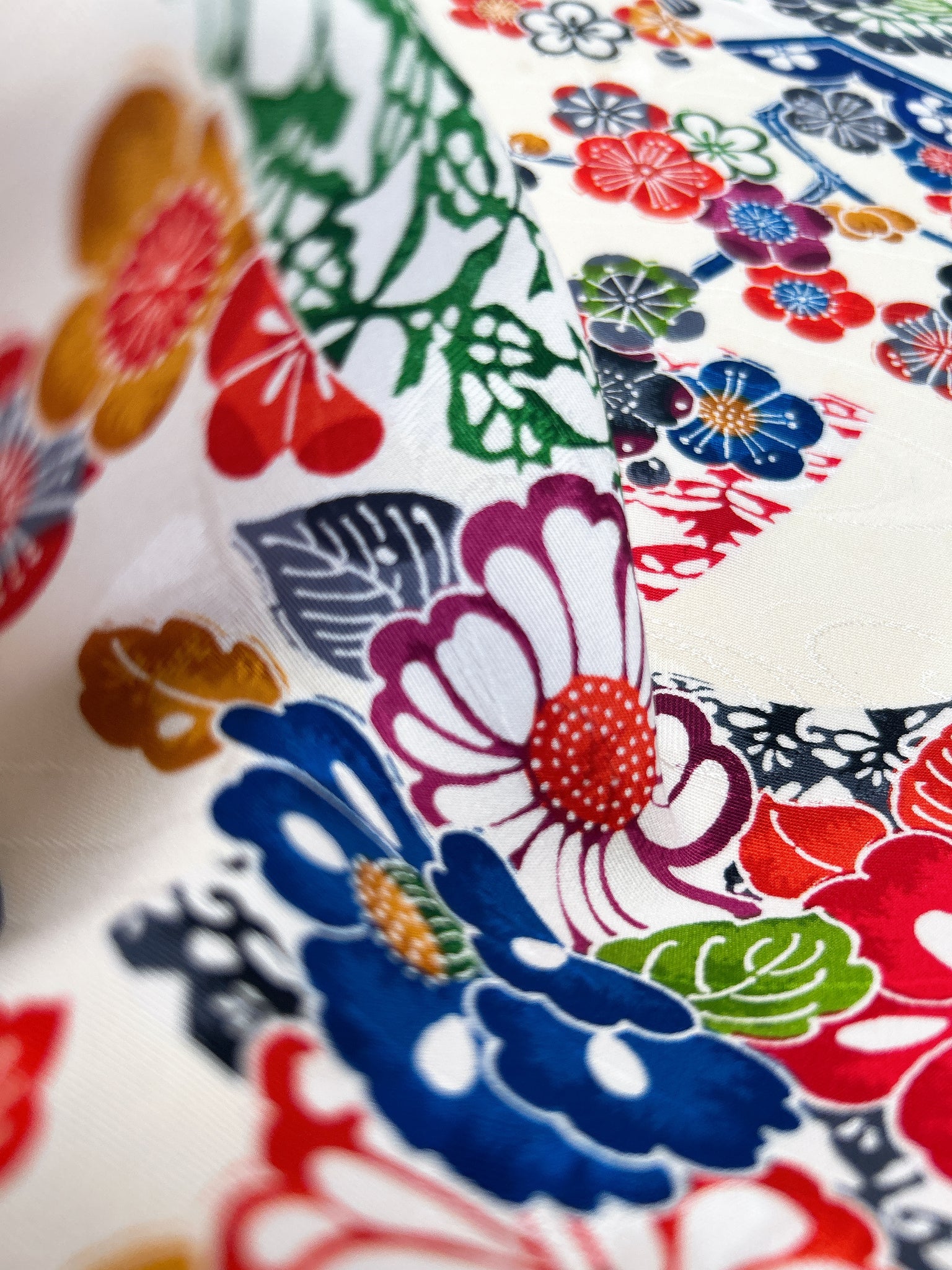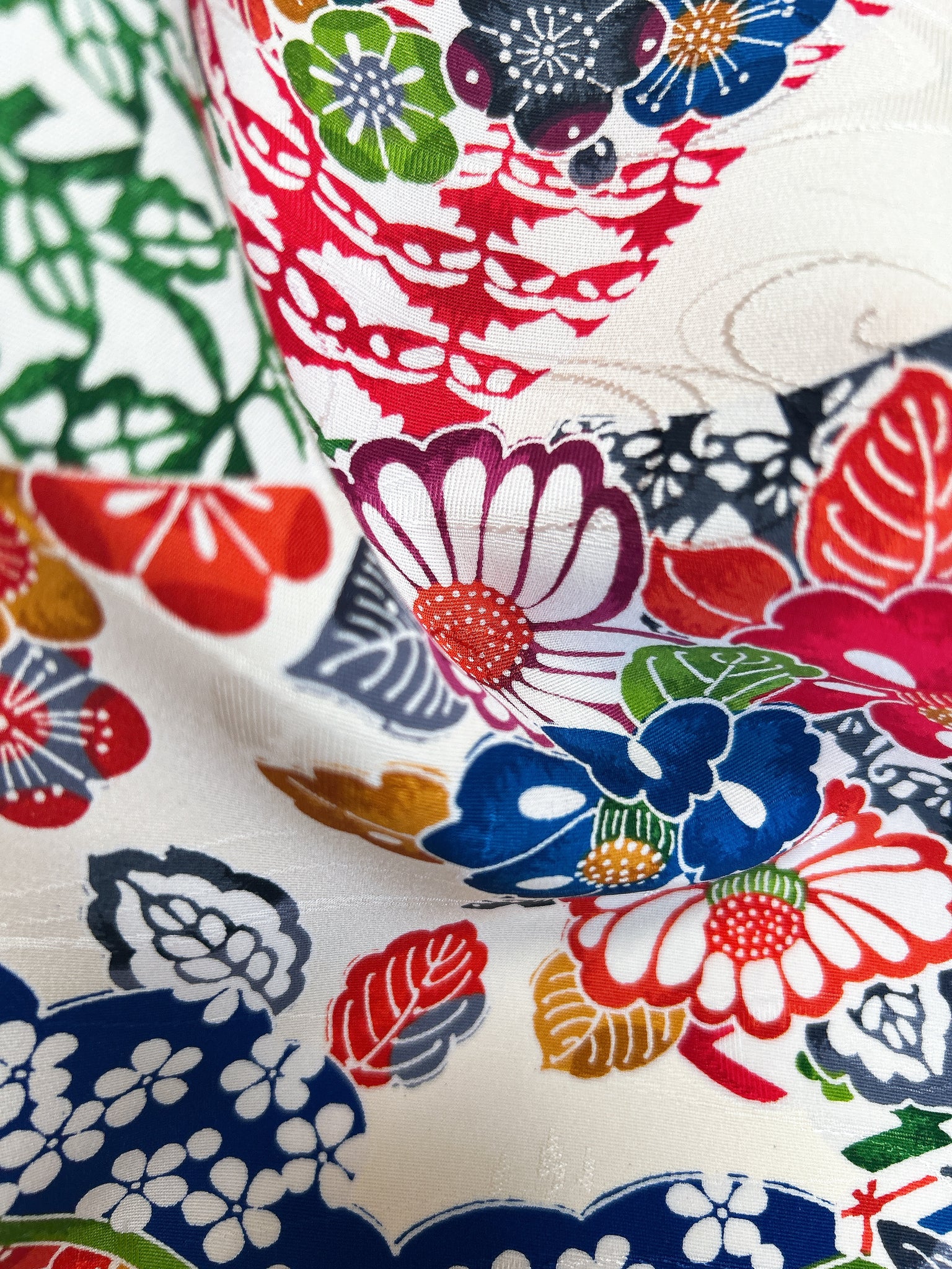 ⁑着物はシミや汚れ破れなどがつきもう着物としては着ることが難しくなったものや、ヴィンテージ、現代着物まで幅広く使用しておりますのでなるべくシミ汚れは逃がして仕立てております。が場合によっては少々アク、シミが付いてるものもございます。古いお着物の時代と時間の経過で現れるものですご理解のほどよろしくお願いもうしあげます。