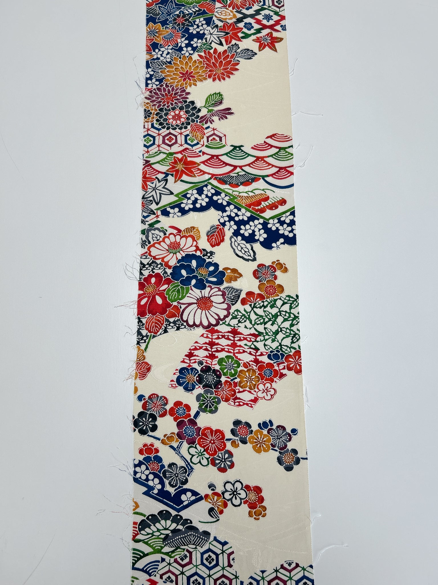 極力垂直断ちにすることでまるでおきものを纏っている様な着心地とシルエットにデザインいたしました。着物を着ることが難しくても、せめて反物から作られる服には