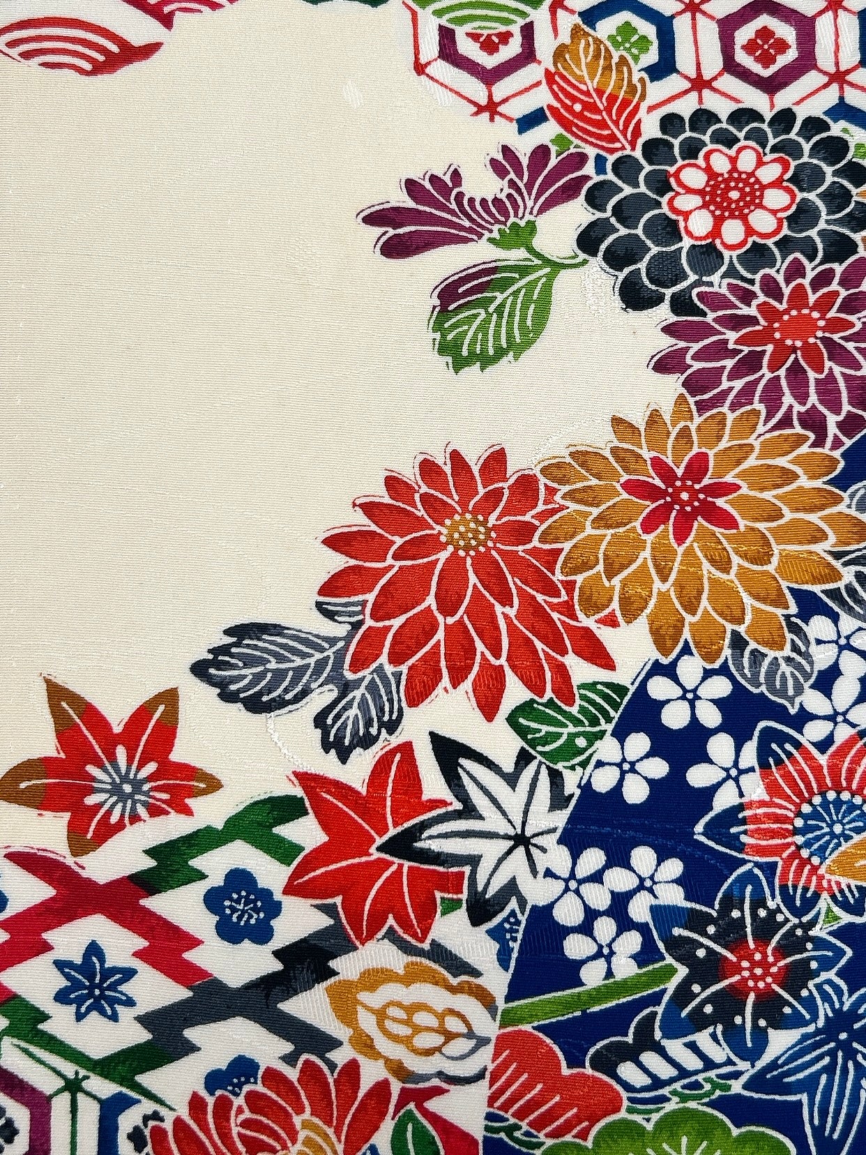 • 画像をギャラリービューアに読み込む, 流水地紋に吉祥絵菊笹楓模様【S】