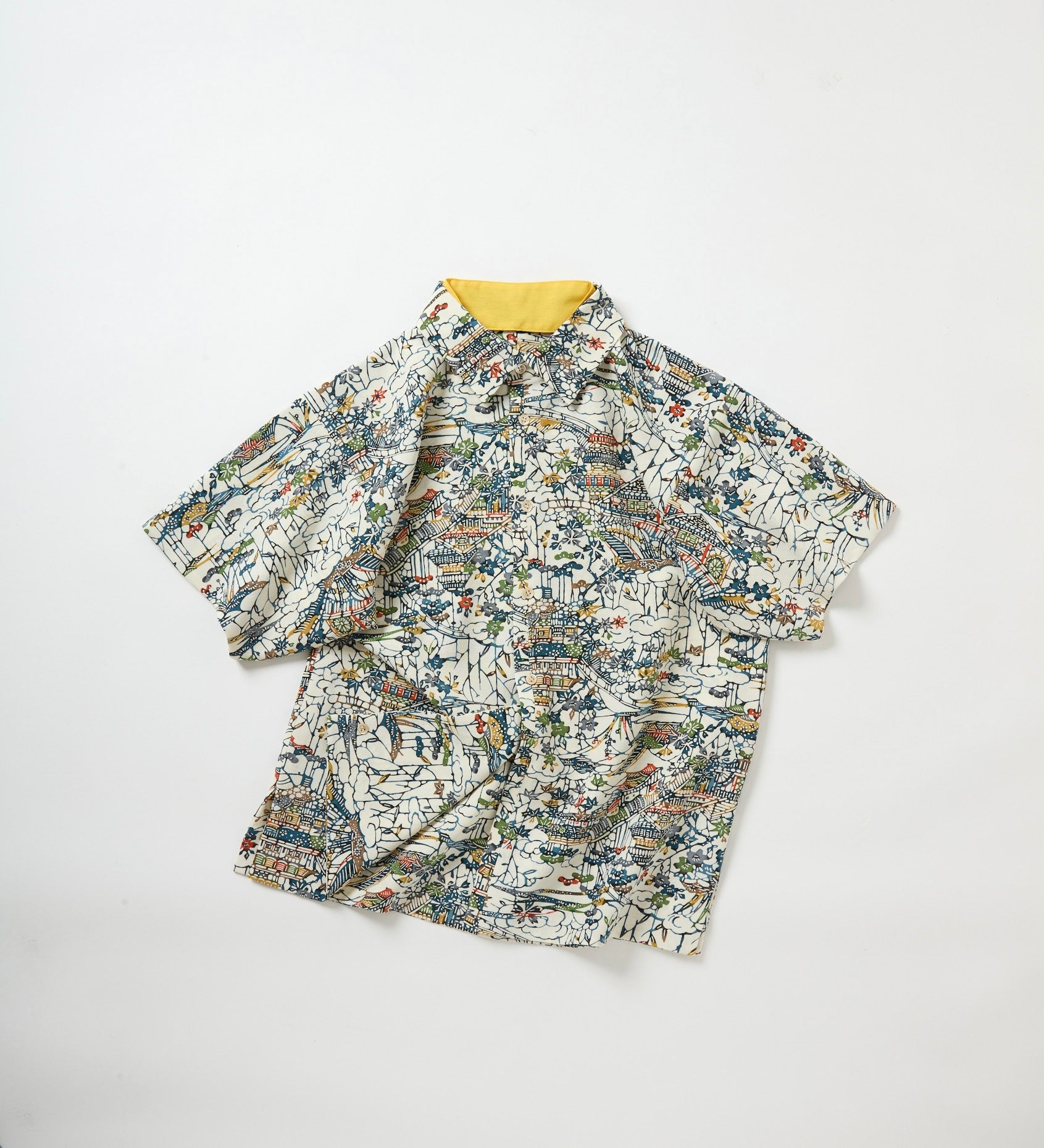 羽織・着物の形を元にシャツの型紙を起こしたデザインに進化しました。