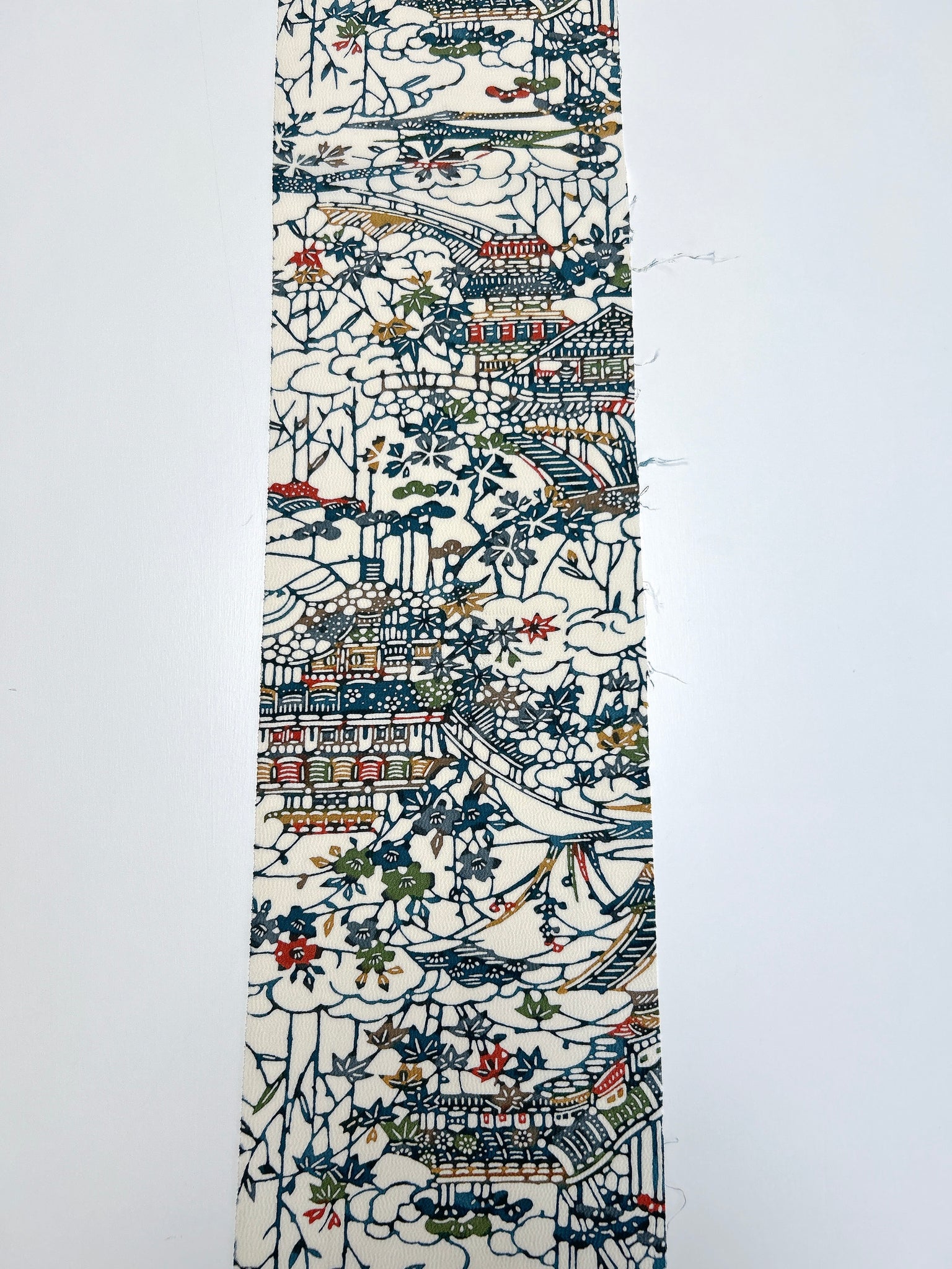 極力垂直断ちにすることでまるでおきものを纏っている様な着心地とシルエットにデザインいたしました。着物を着ることが難しくても、せめて反物から作られる服には