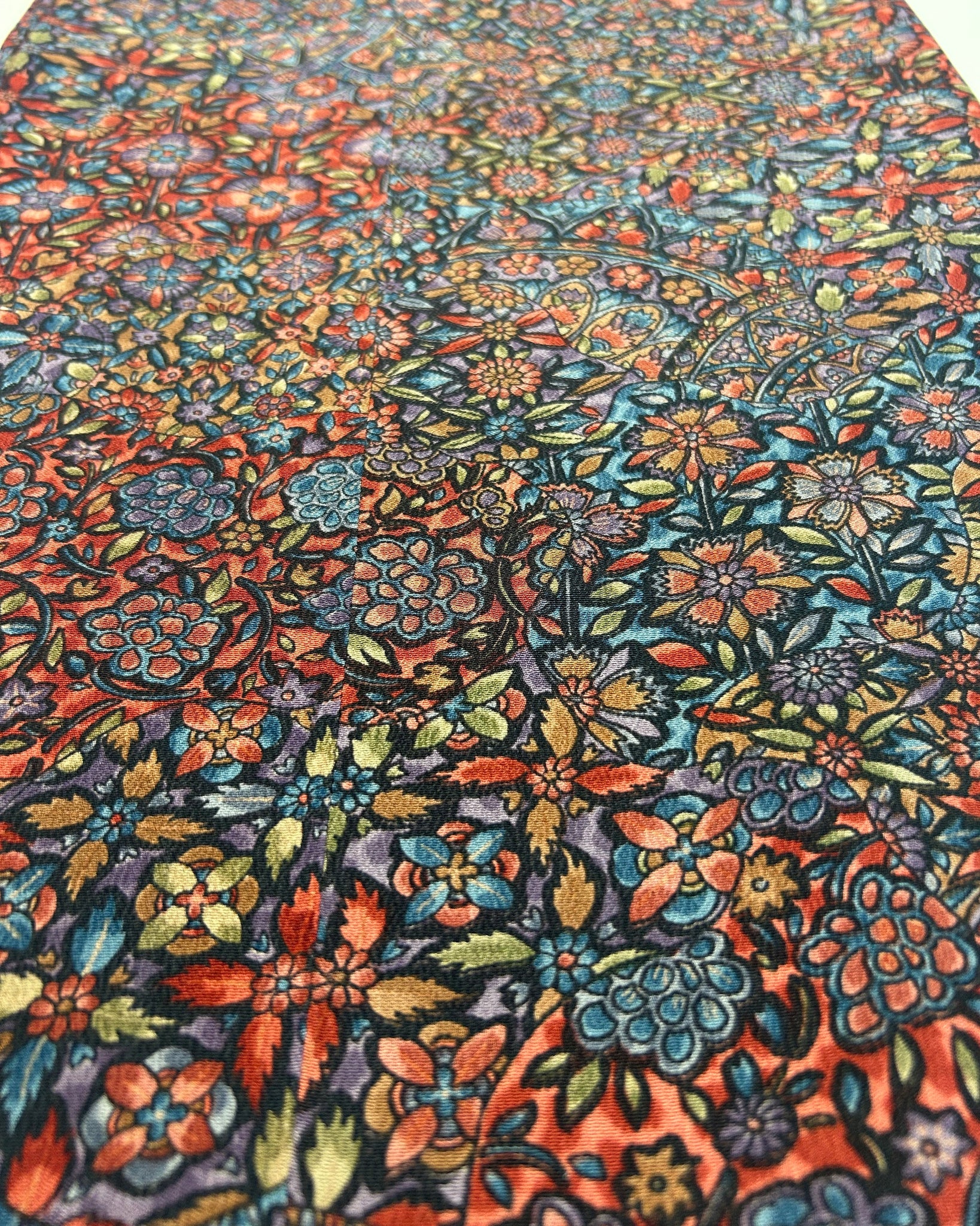 絹織物でございます、濡れた状態では摩擦に弱いため洗濯機でのお洗濯はお控えください、状態を綺麗に長く保つためにも手洗いでの手入れ、もしくはドライクリーニングがおすすめです。