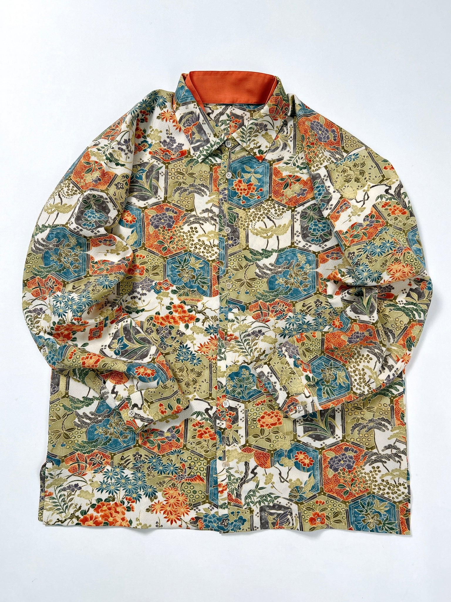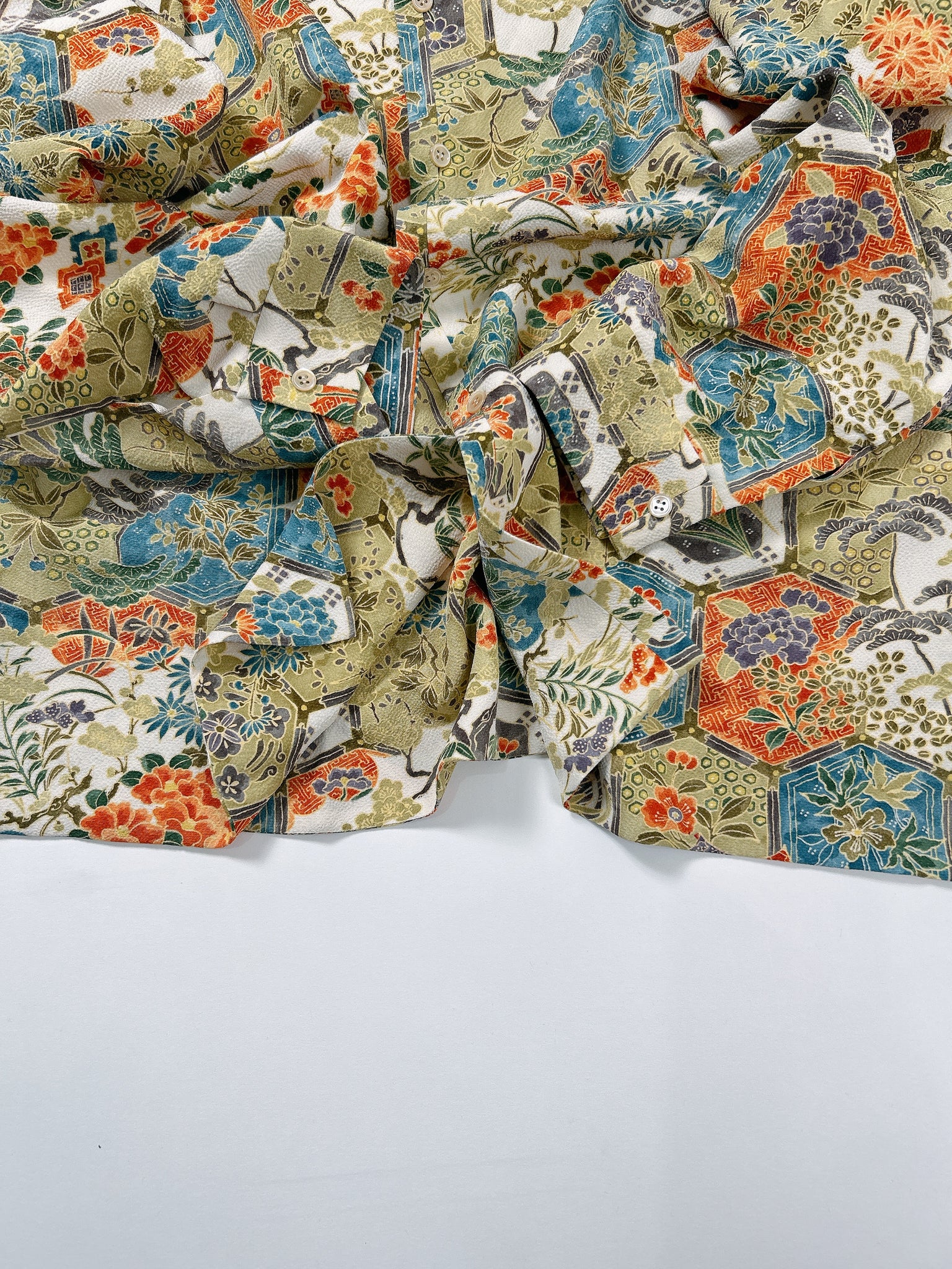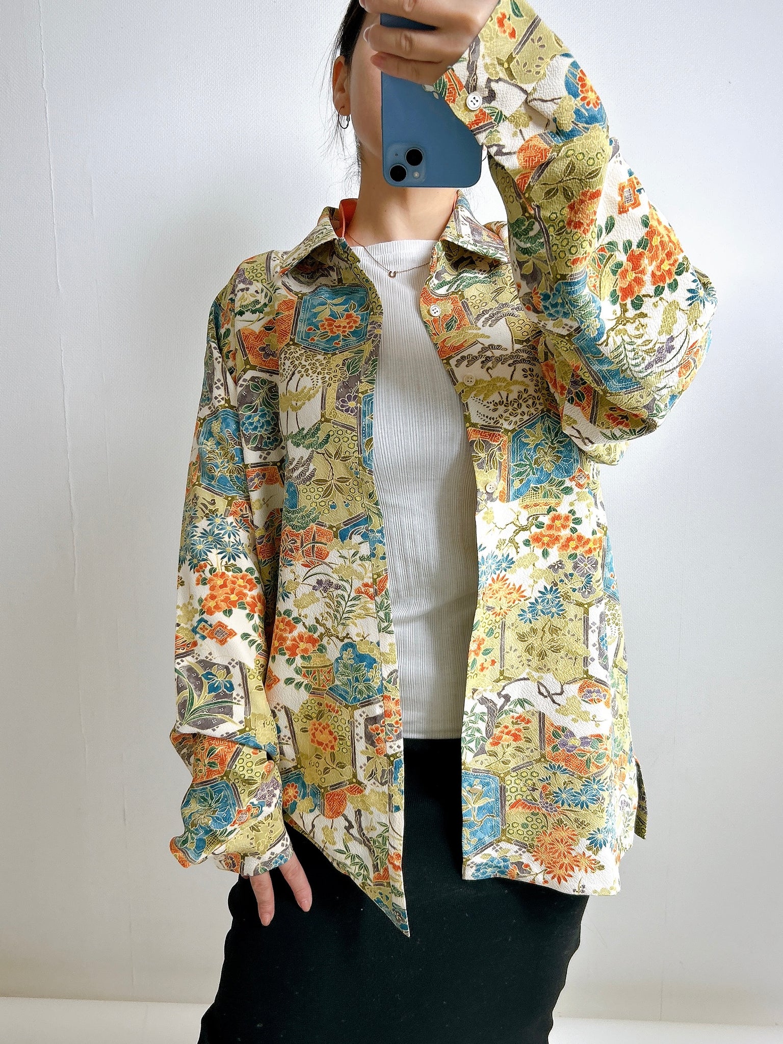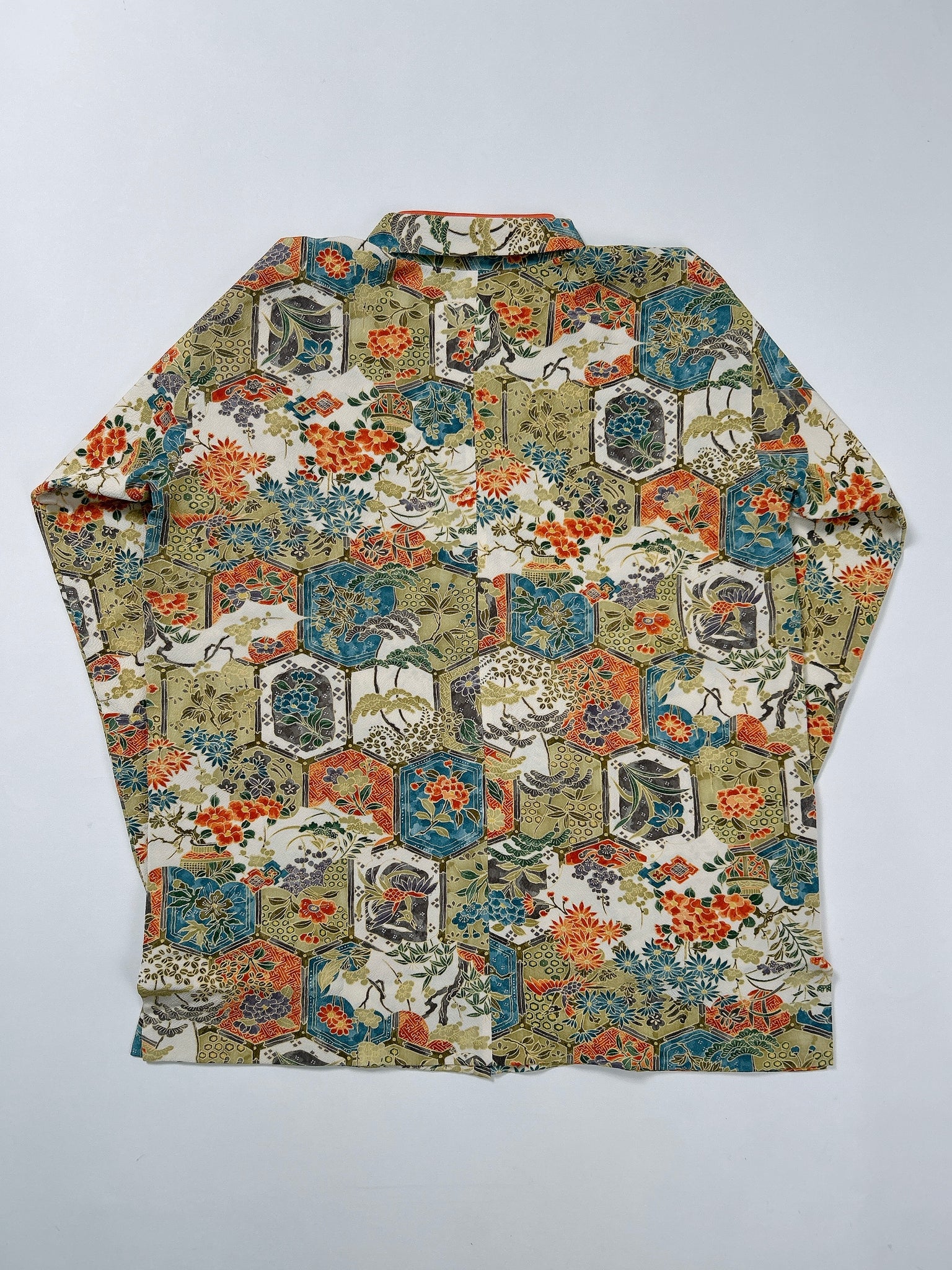 これまでと変わらず、ケニシャツは一反(約12メートル)のお着物生地を余すことなく使用し、総裏仕立ての二枚合わせにてお作りしております。そのため、程よい厚みと重みがあり、お着物一反から一点のみお作りできる、貴重なお品です。