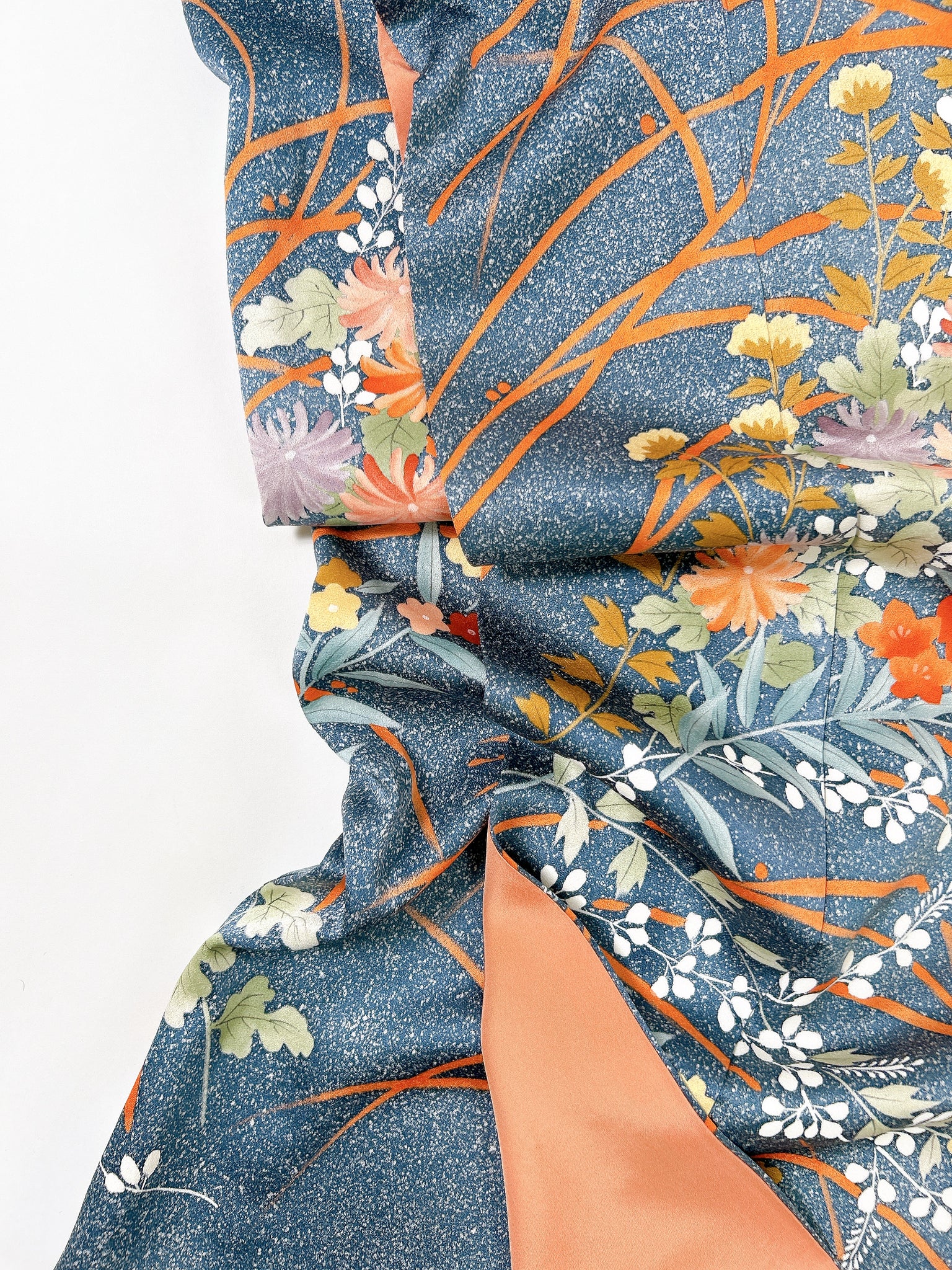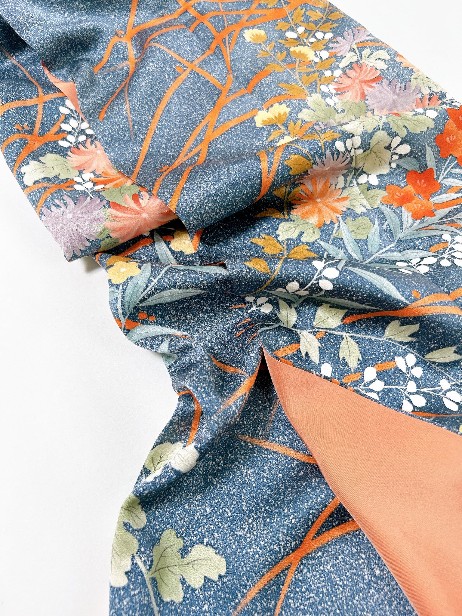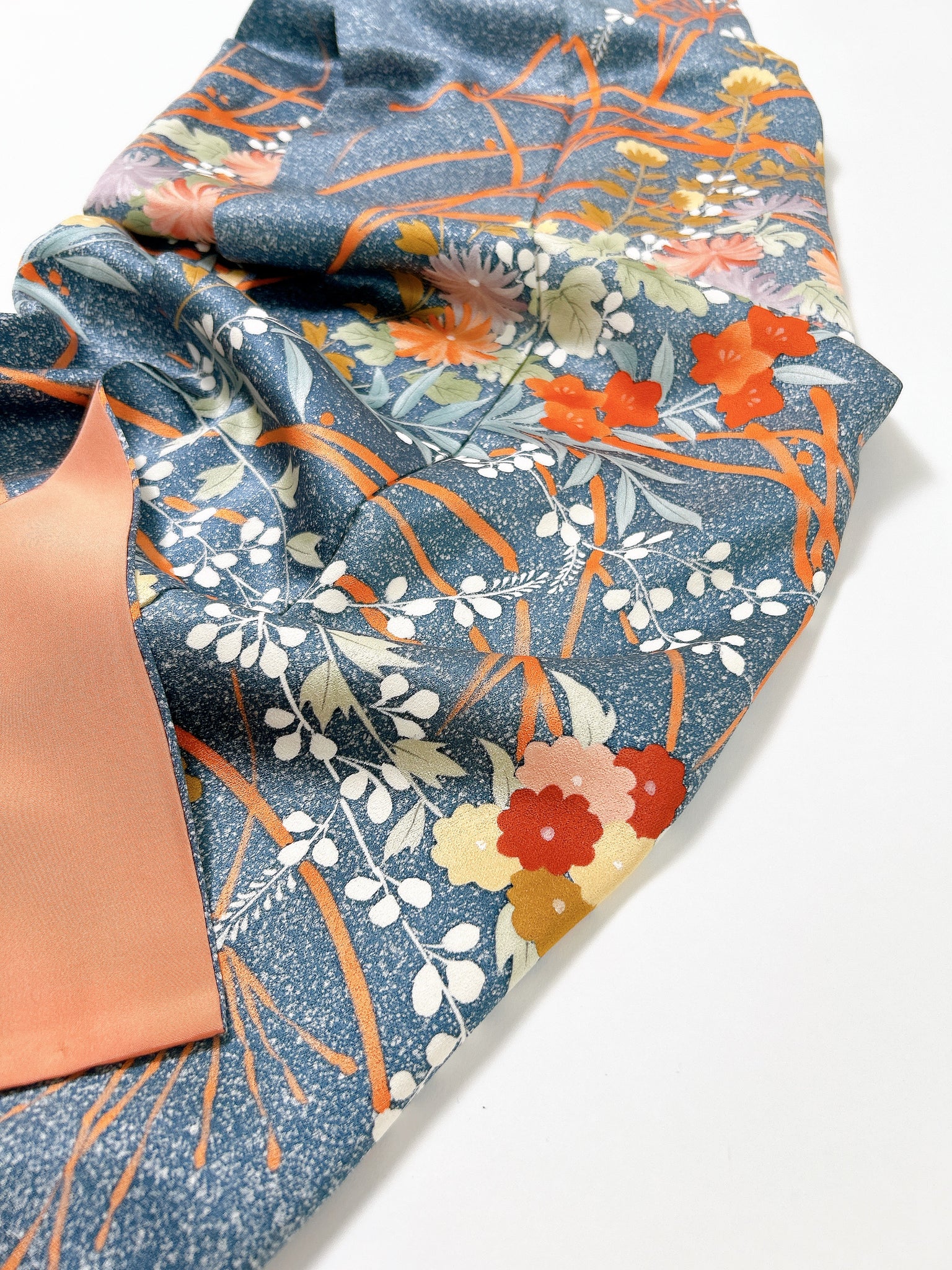 ⁑着物はシミや汚れ破れなどがつきもう着物としては着ることが難しくなったものや、ヴィンテージ、現代着物まで幅広く使用しておりますのでなるべくシミ汚れは逃がして仕立てております。が場合によっては少々アク、シミが付いてるものもございます。古いお着物の時代と時間の経過で現れるものですご理解のほどよろしくお願いもうしあげます。また正絹、化繊共に「防縮加工」をほどこしておりますので家でのお手入れが可能です。