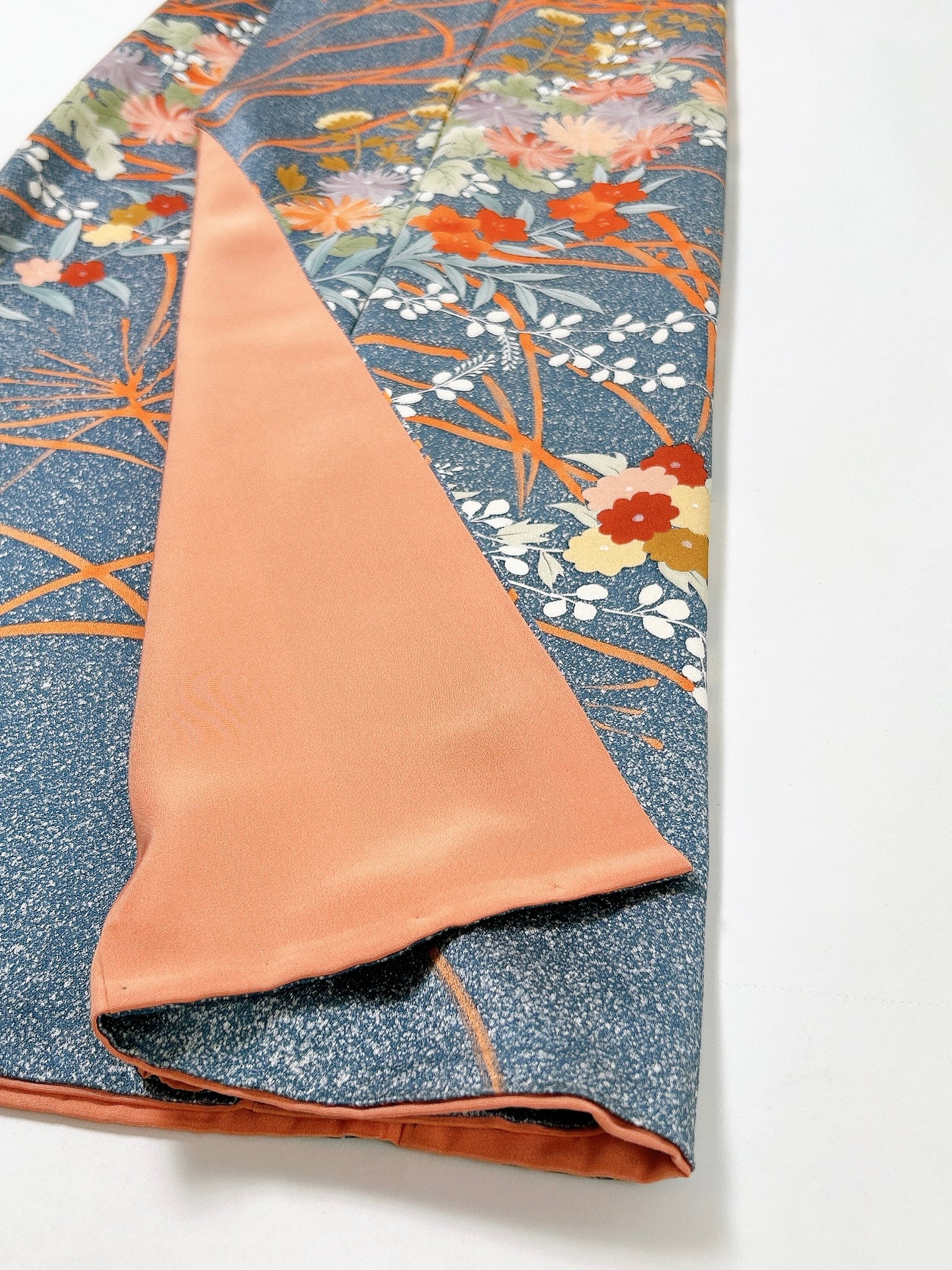 訪問着や付け下げは箔加工や刺繍、模様絵付けが特殊です。また胴裏、八掛がついておりますため水洗い厳禁。水に濡れると色移りする可能性がございます。お手入れはドライクリーニングにてお願い申し上げます。