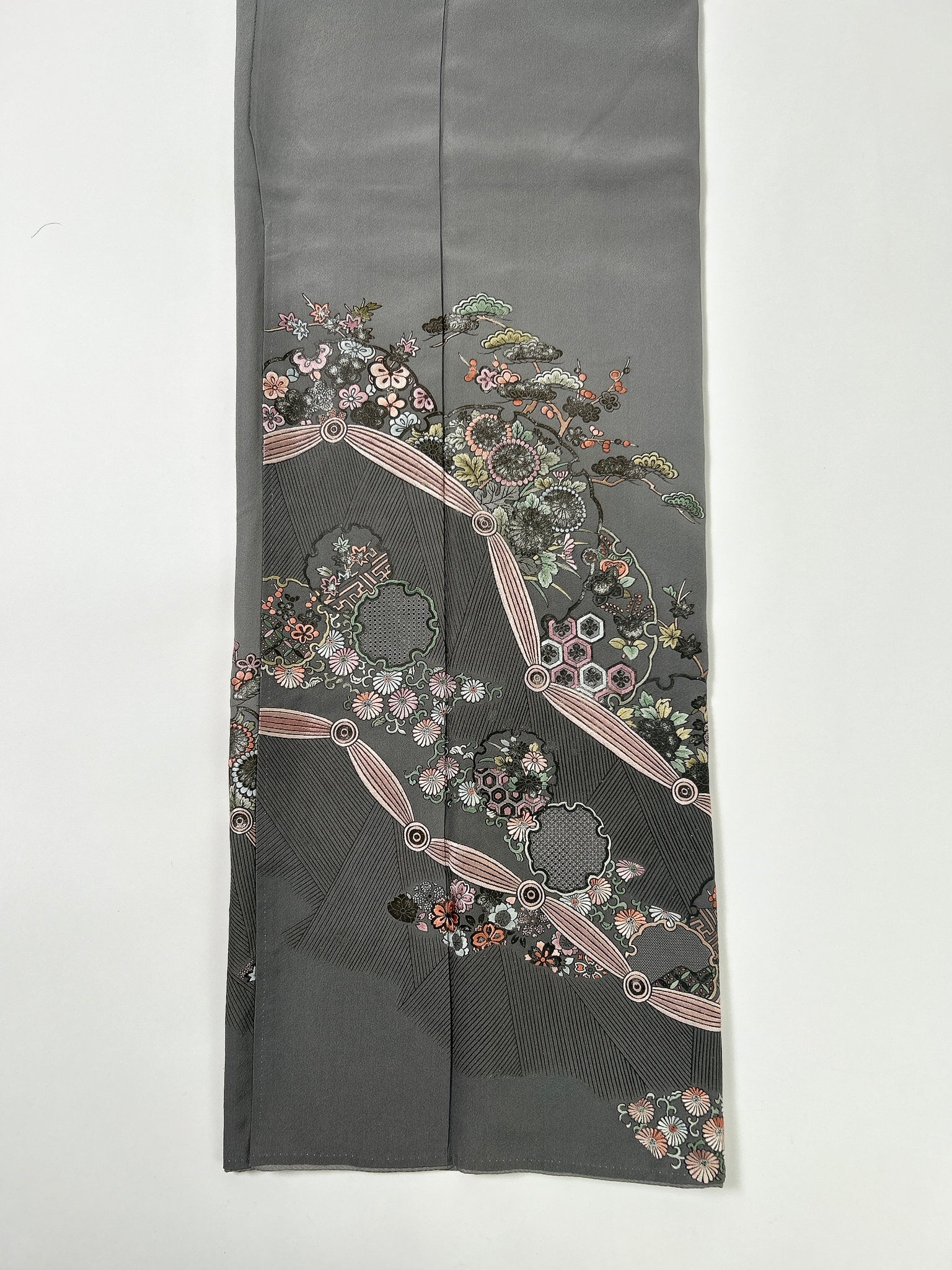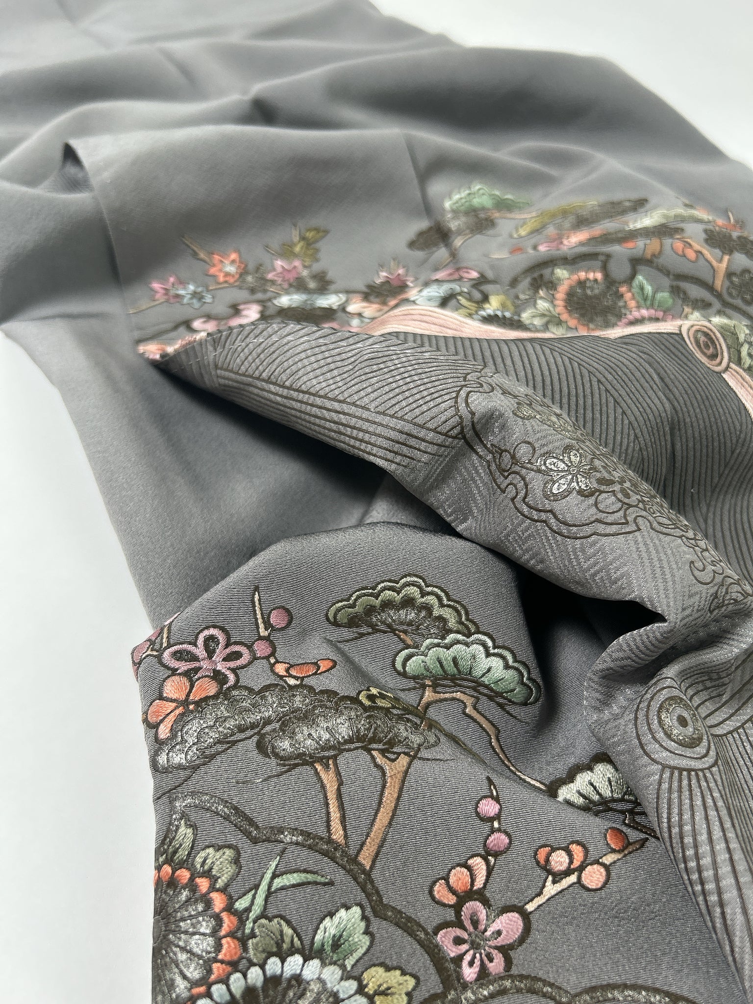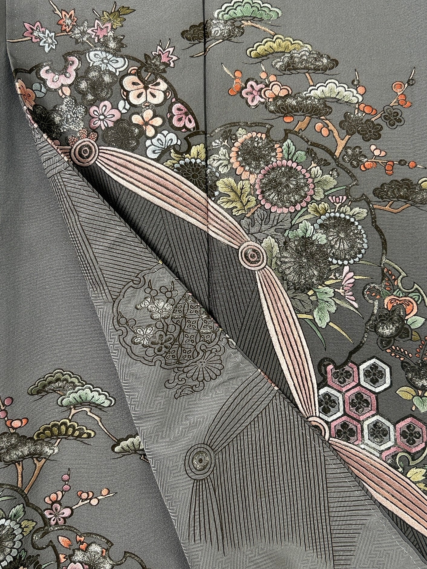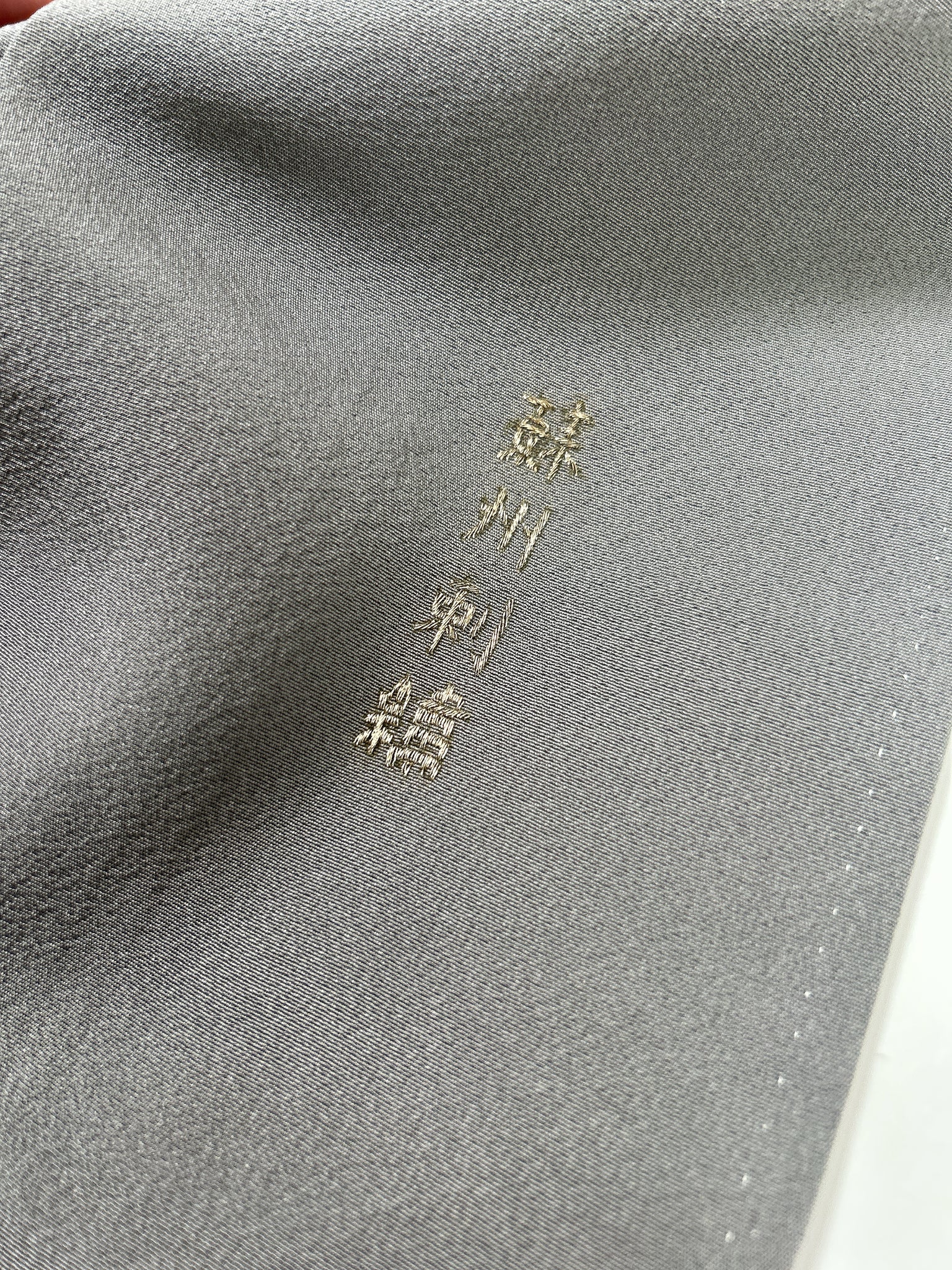 訪問着や付け下げは箔加工や刺繍、模様絵付けが特殊です。また胴裏、八掛がついておりますため水洗い厳禁。水に濡れると色移りする可能性がございます。お手入れはドライクリーニングにてお願い申し上げます。