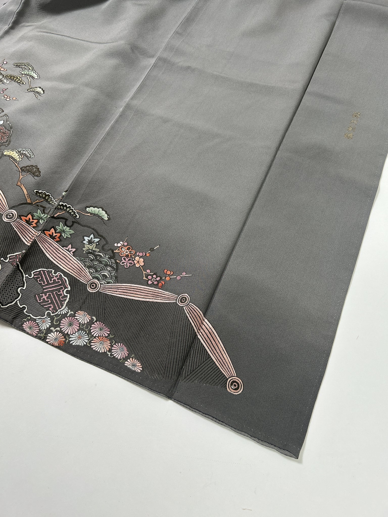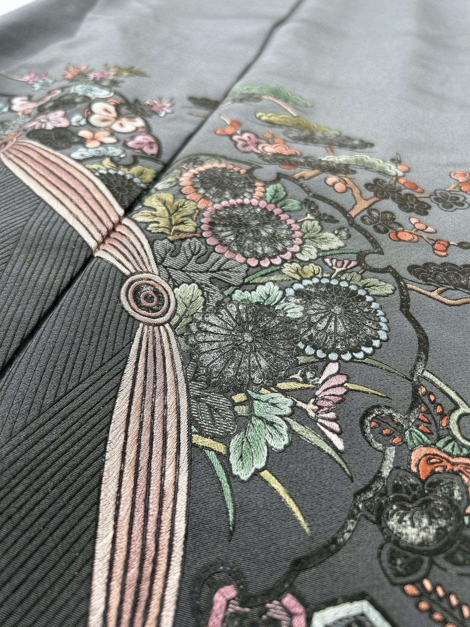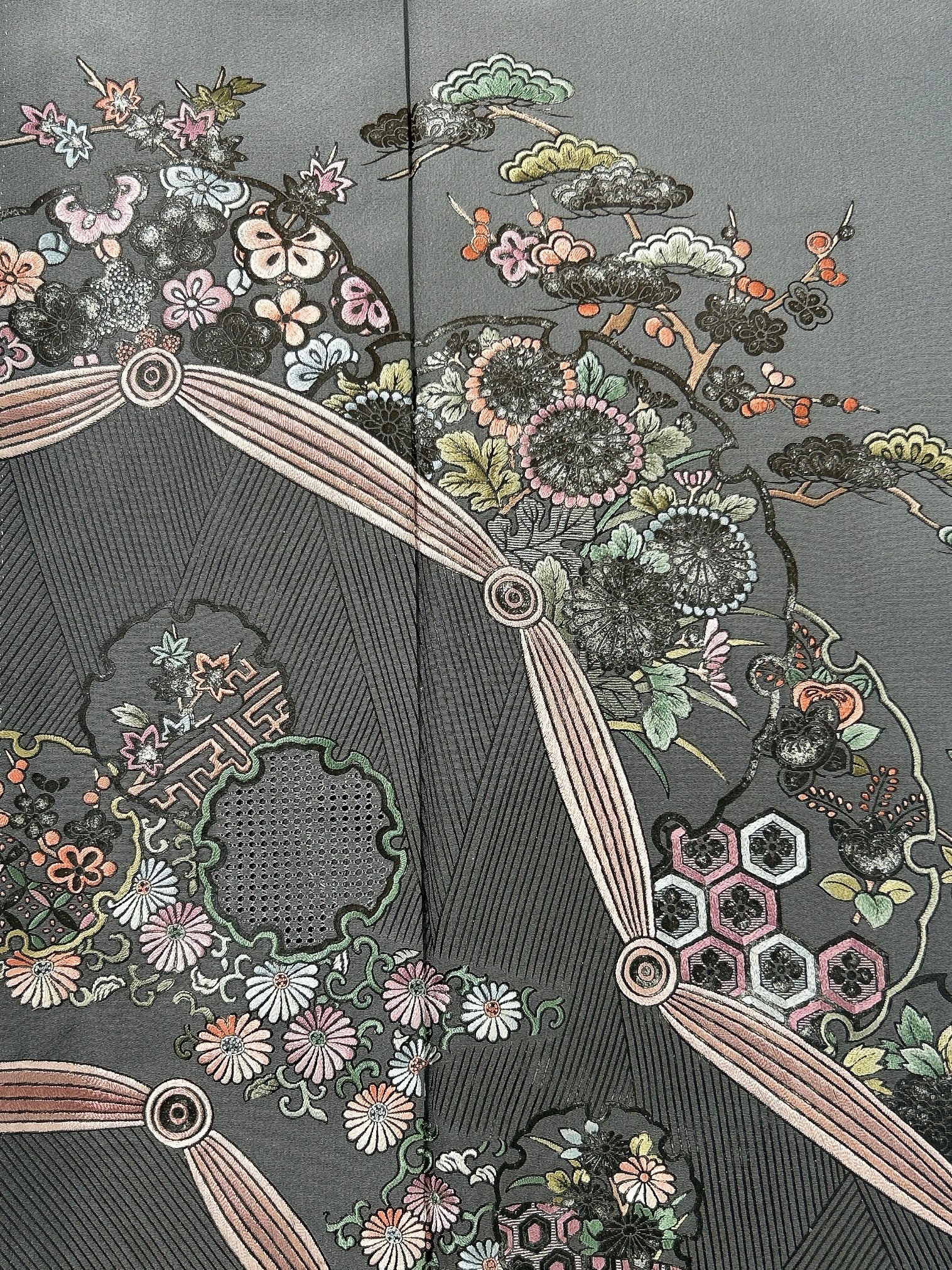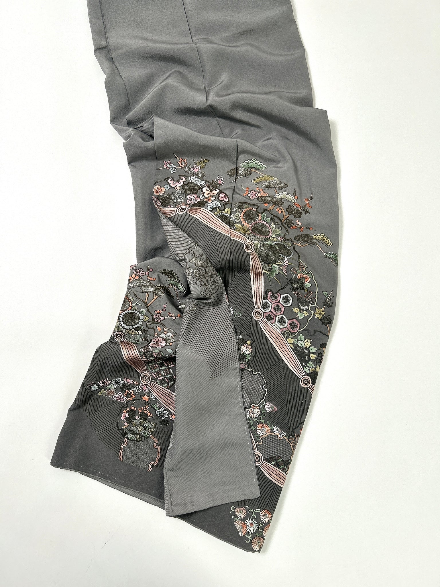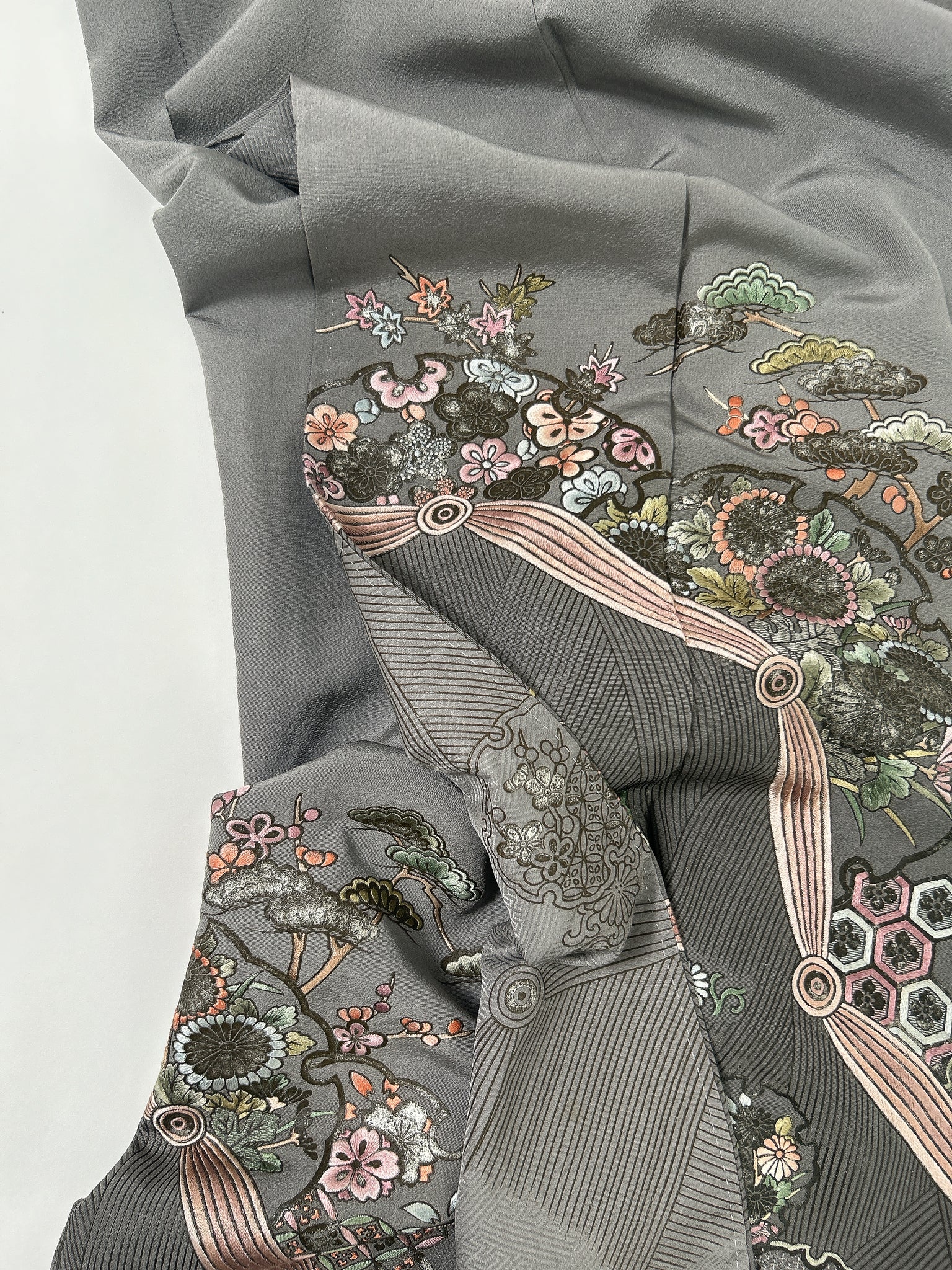 訪問着や付け下げは箔加工や刺繍、模様絵付けが特殊です。また胴裏、八掛がついておりますため水洗い厳禁。水に濡れると色移りする可能性がございます。お手入れはドライクリーニングにてお願い申し上げます。