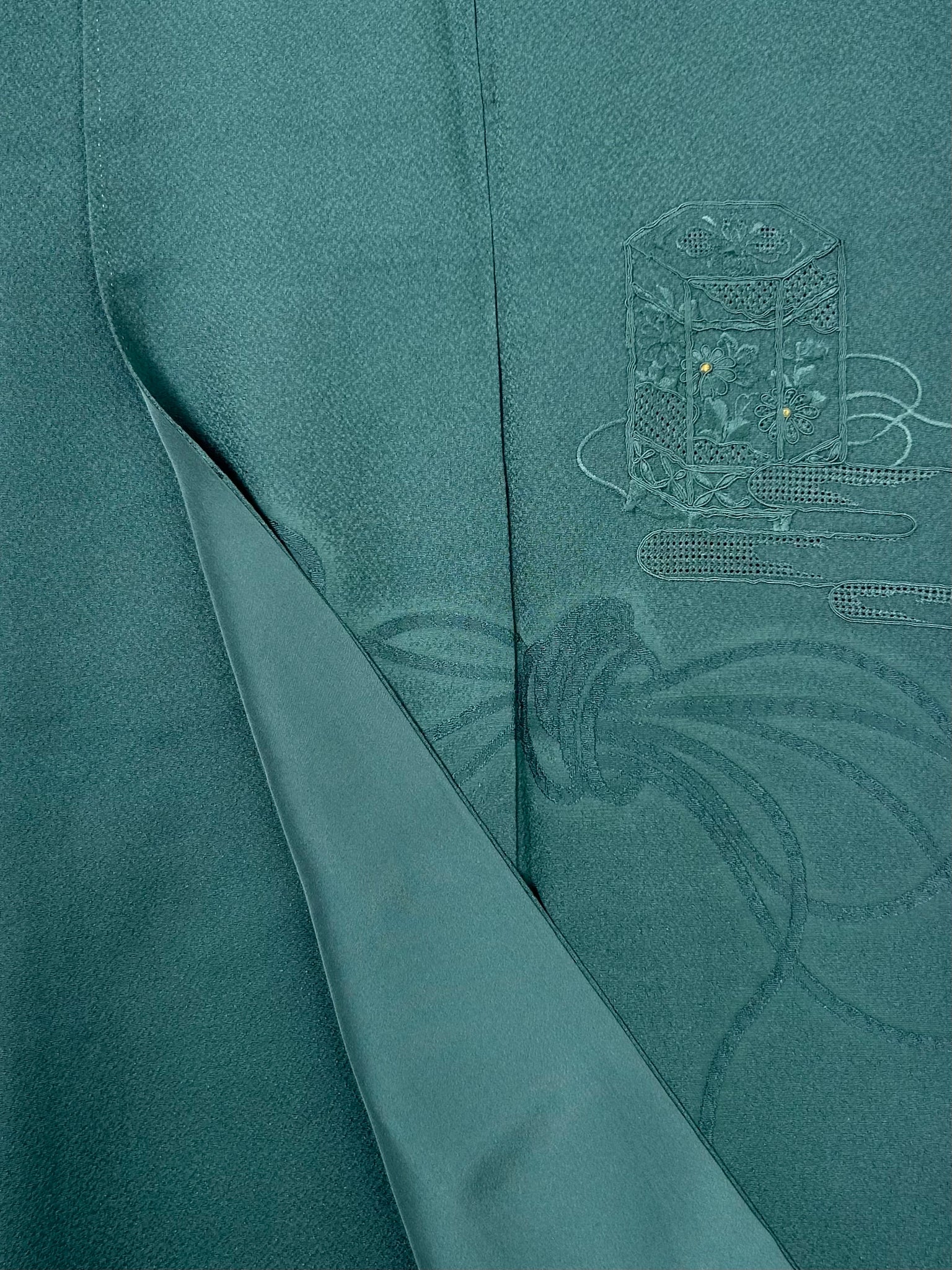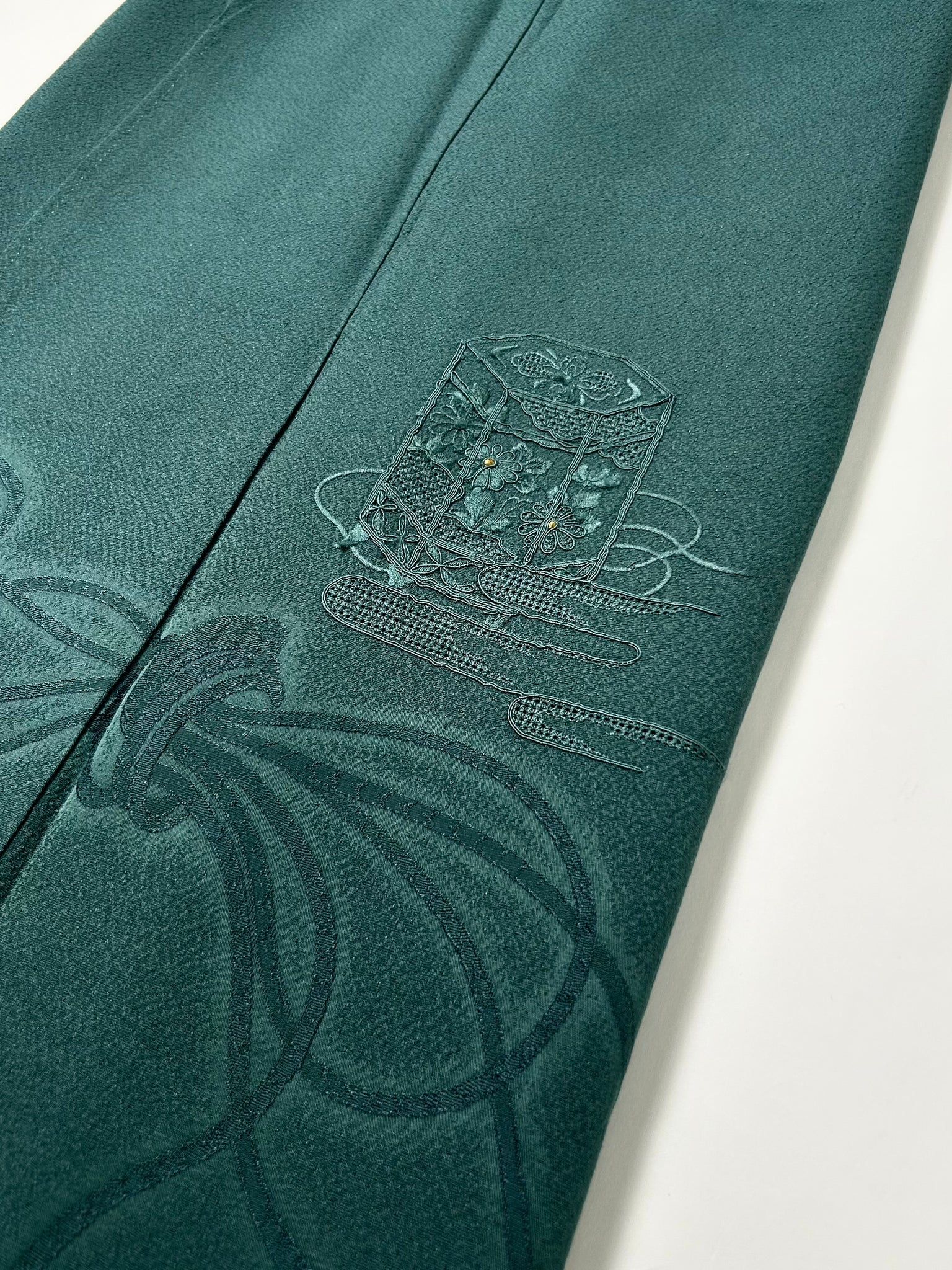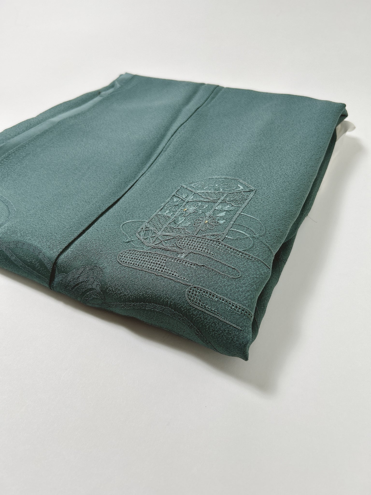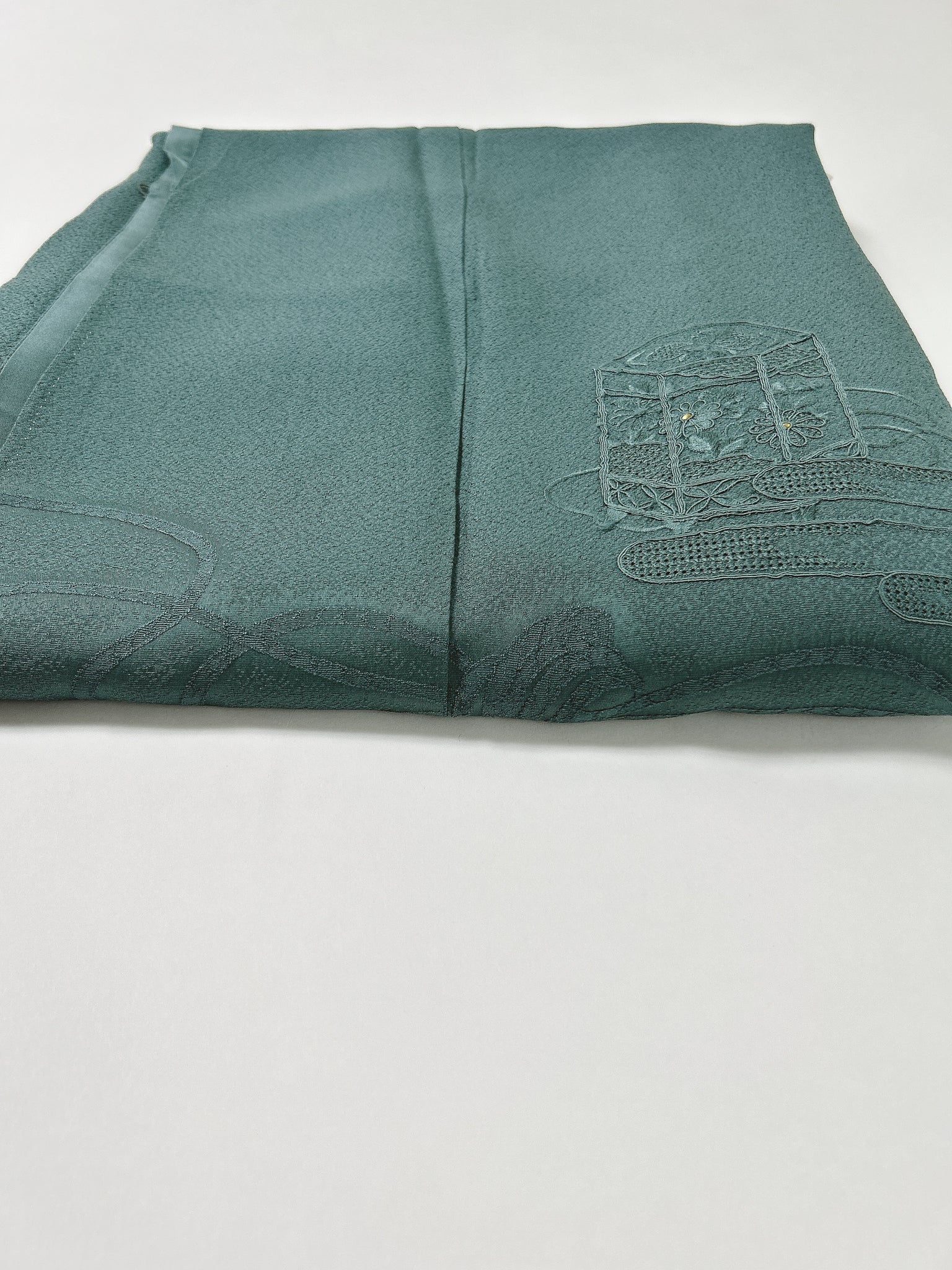 訪問着や付け下げは箔加工や刺繍、模様絵付けが特殊です。また胴裏、八掛がついておりますため水洗い厳禁。水に濡れると色移りする可能性がございます。お手入れはドライクリーニングにてお願い申し上げます。