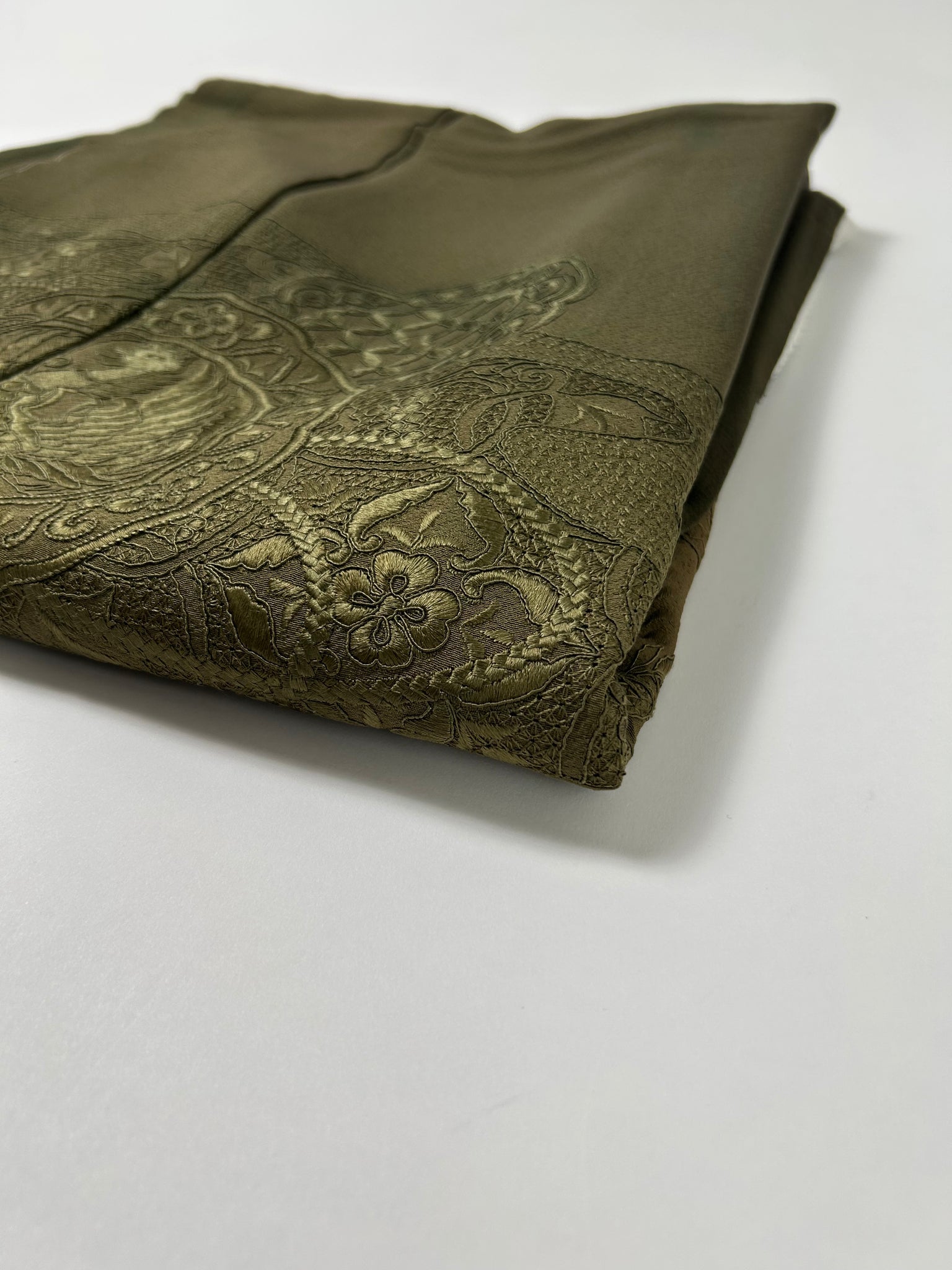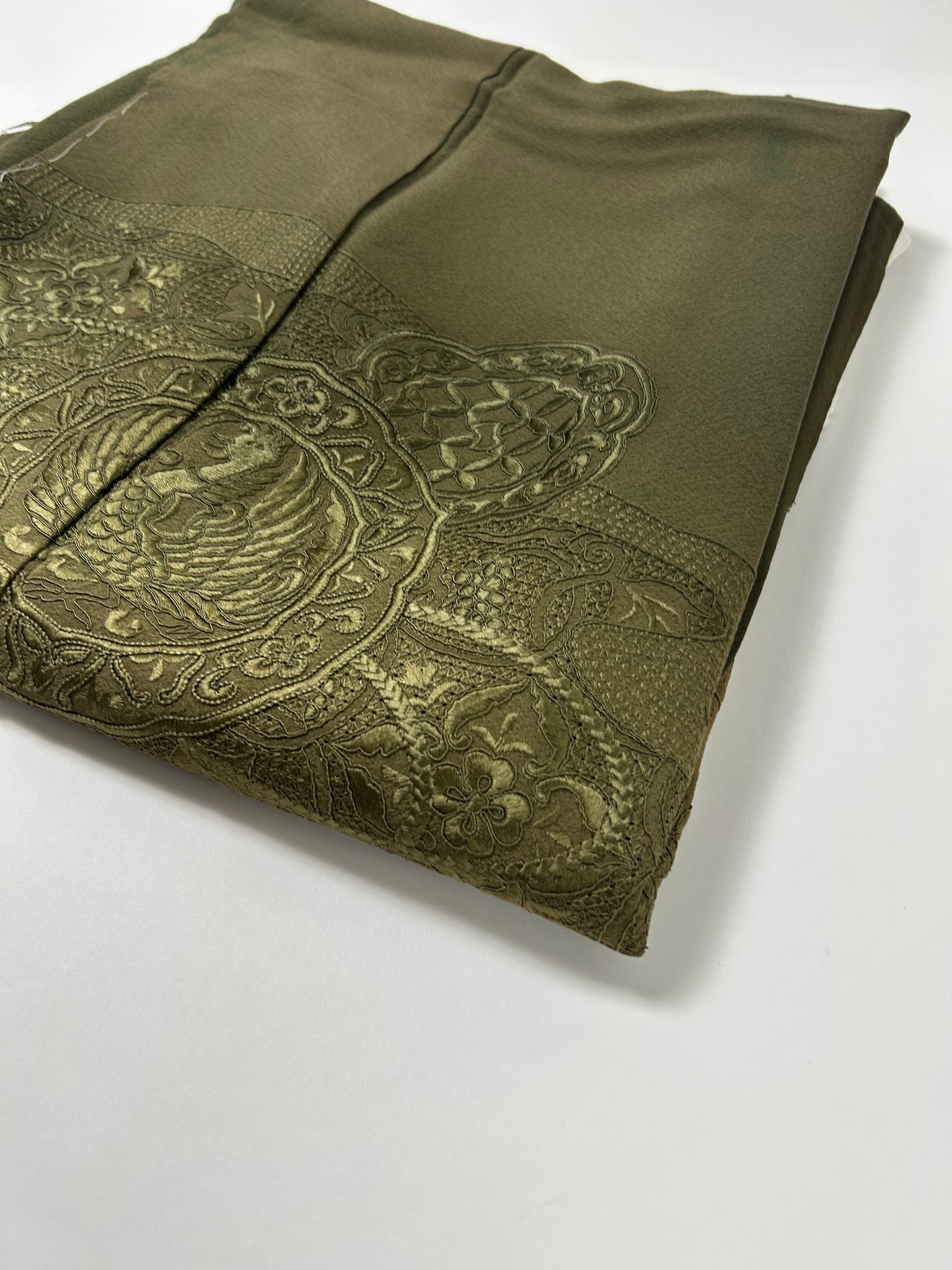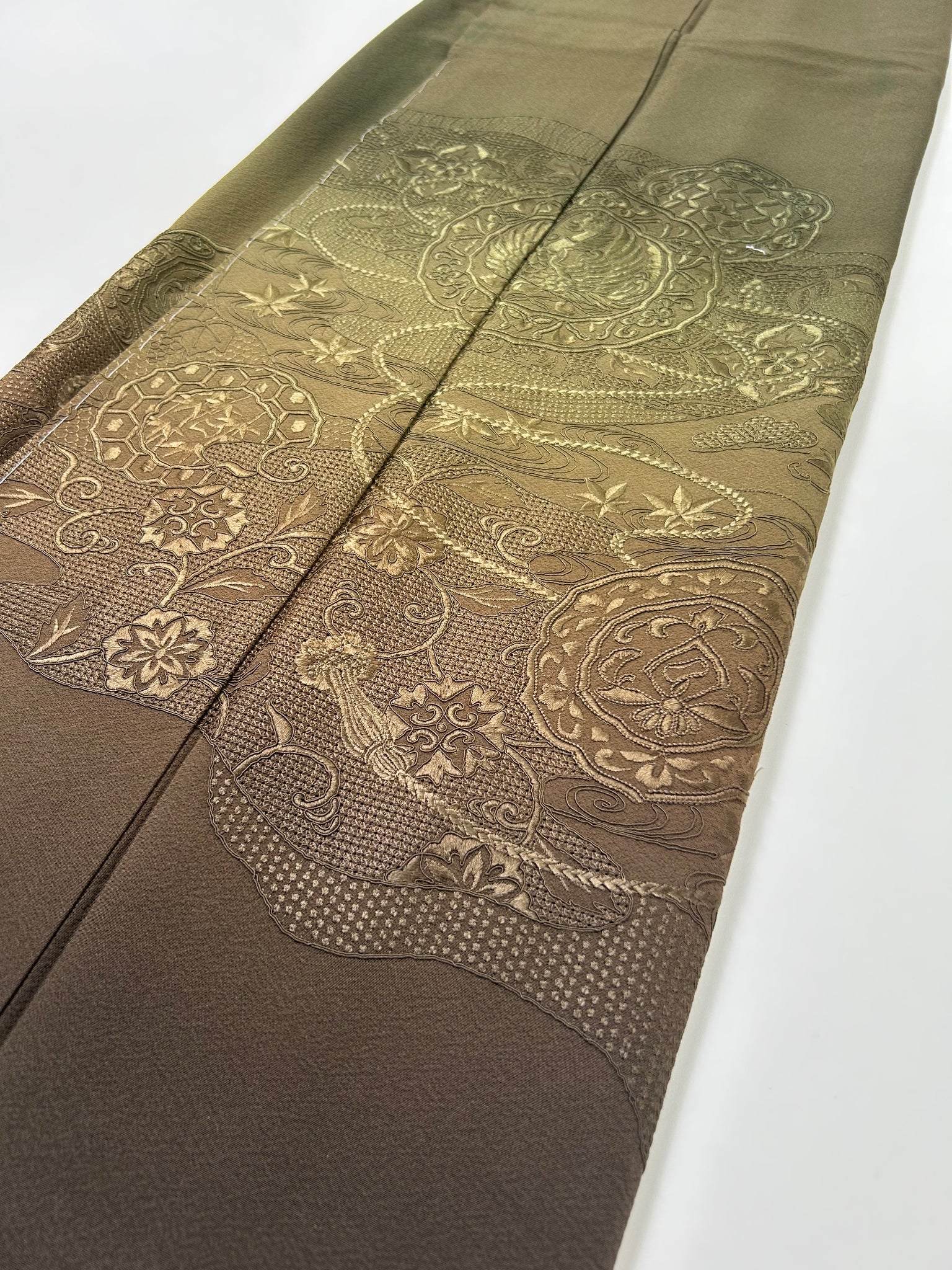 訪問着や付け下げは箔加工や刺繍、模様絵付けが特殊です。また胴裏、八掛がついておりますため水洗い厳禁。水に濡れると色移りする可能性がございます。お手入れはドライクリーニングにてお願い申し上げます。