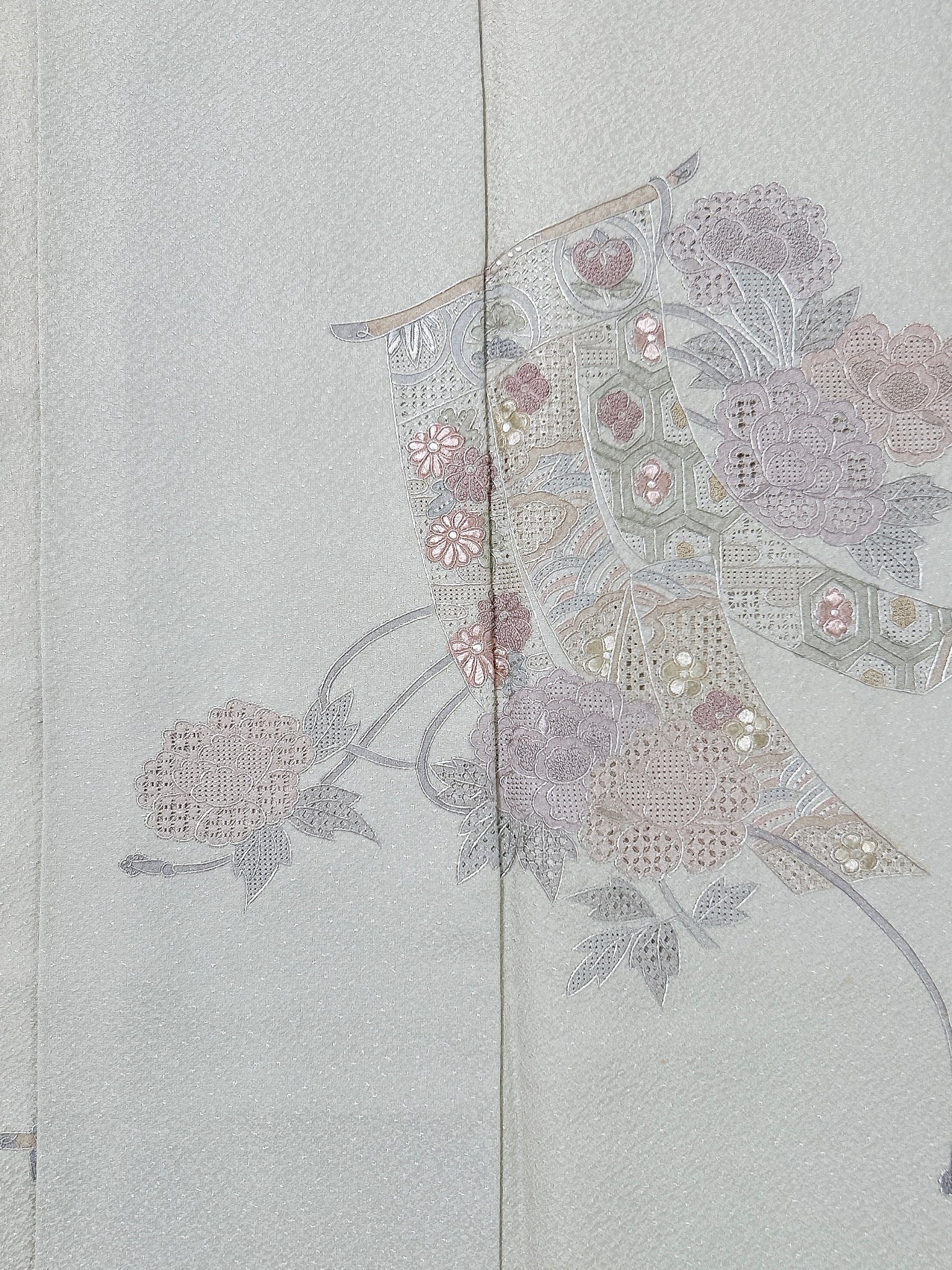 【予約品】スワトウ刺繍・牡丹に几帳模様