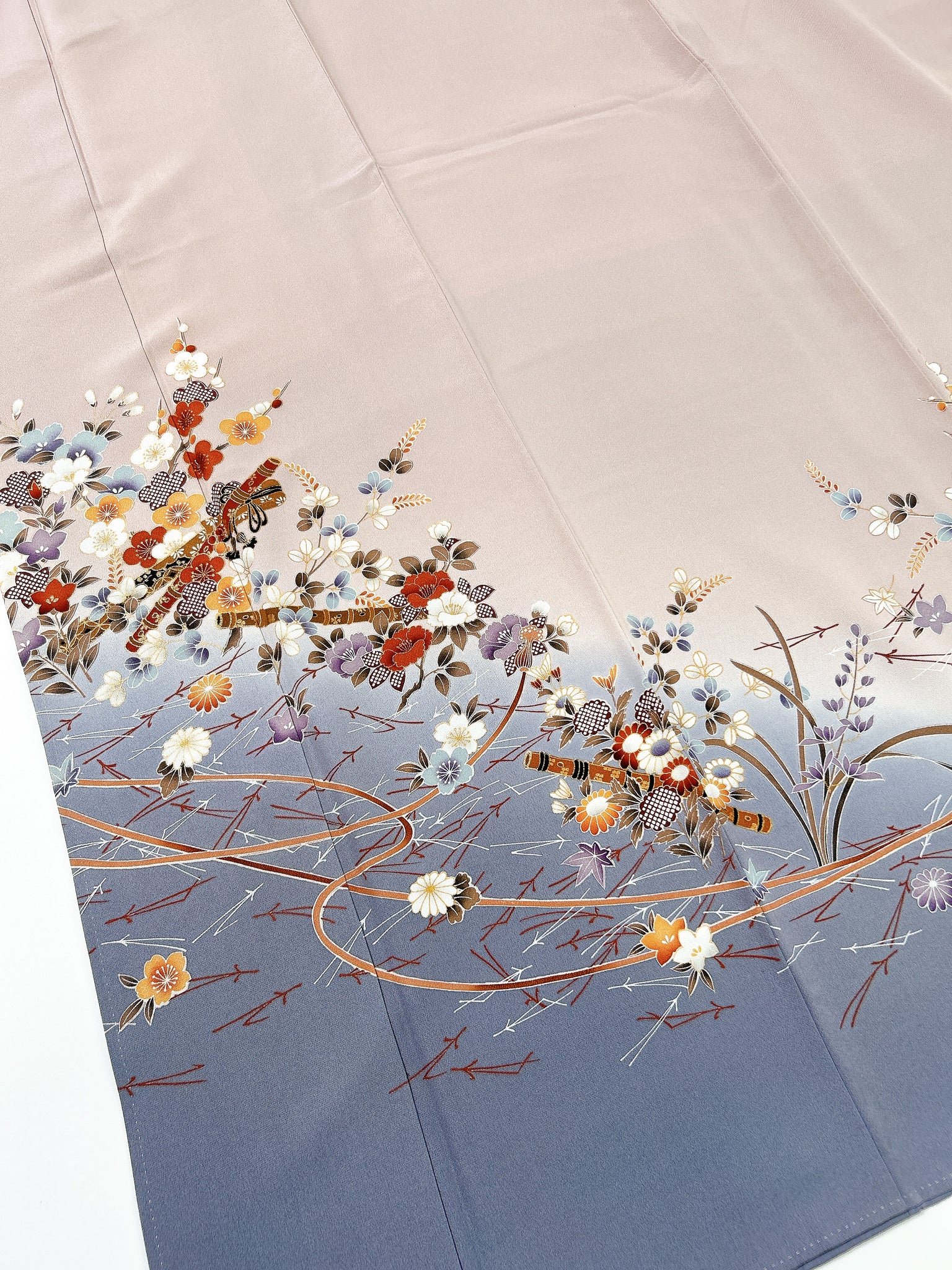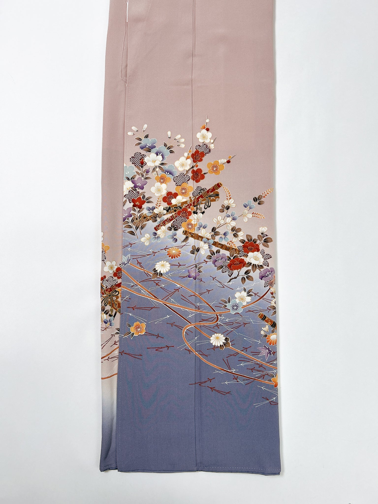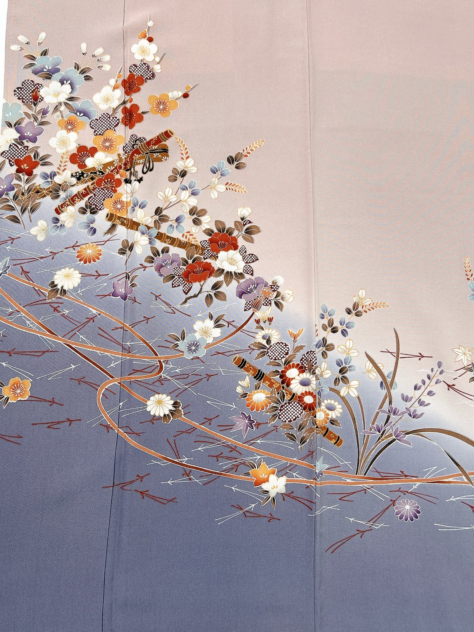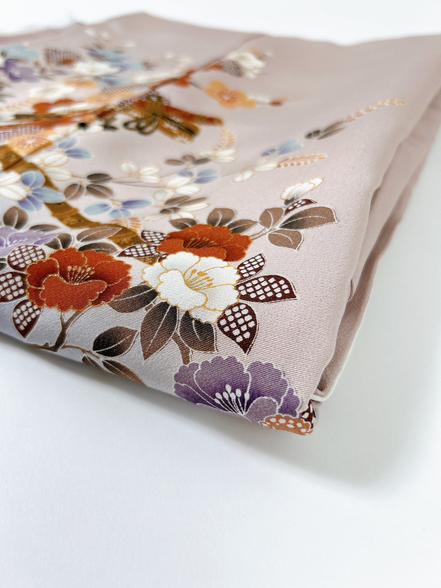 訪問着や付け下げは箔加工や刺繍、模様絵付けが特殊です。また胴裏、八掛がついておりますため水洗い厳禁。水に濡れると色移りする可能性がございます。お手入れはドライクリーニングにてお願い申し上げます。