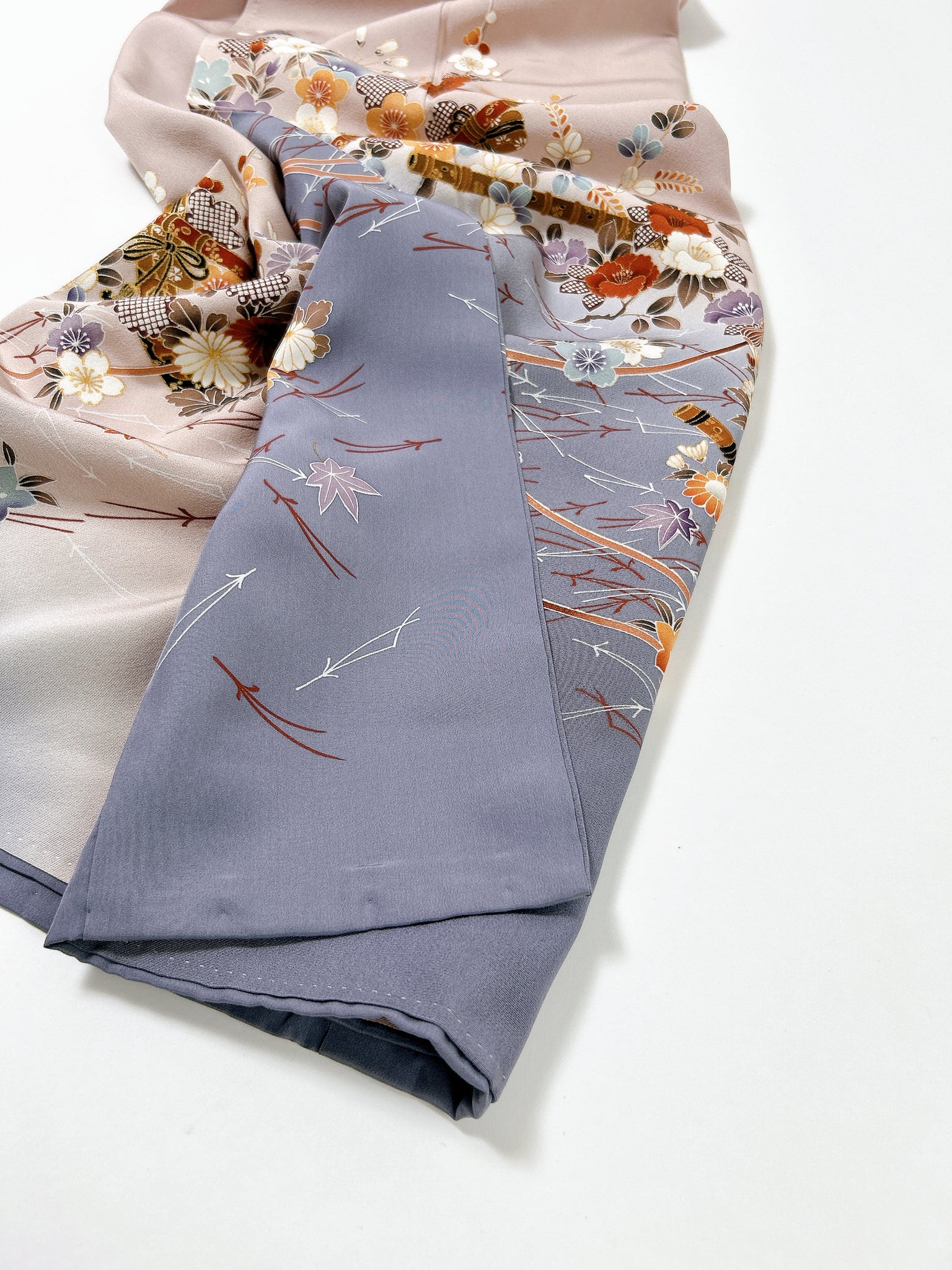 ⁑着物はシミや汚れ破れなどがつきもう着物としては着ることが難しくなったものや、ヴィンテージ、現代着物まで幅広く使用しておりますのでなるべくシミ汚れは逃がして仕立てております。が場合によっては少々アク、シミが付いてるものもございます。古いお着物の時代と時間の経過で現れるものですご理解のほどよろしくお願いもうしあげます。また正絹、化繊共に「防縮加工」をほどこしておりますので家でのお手入れが可能です。