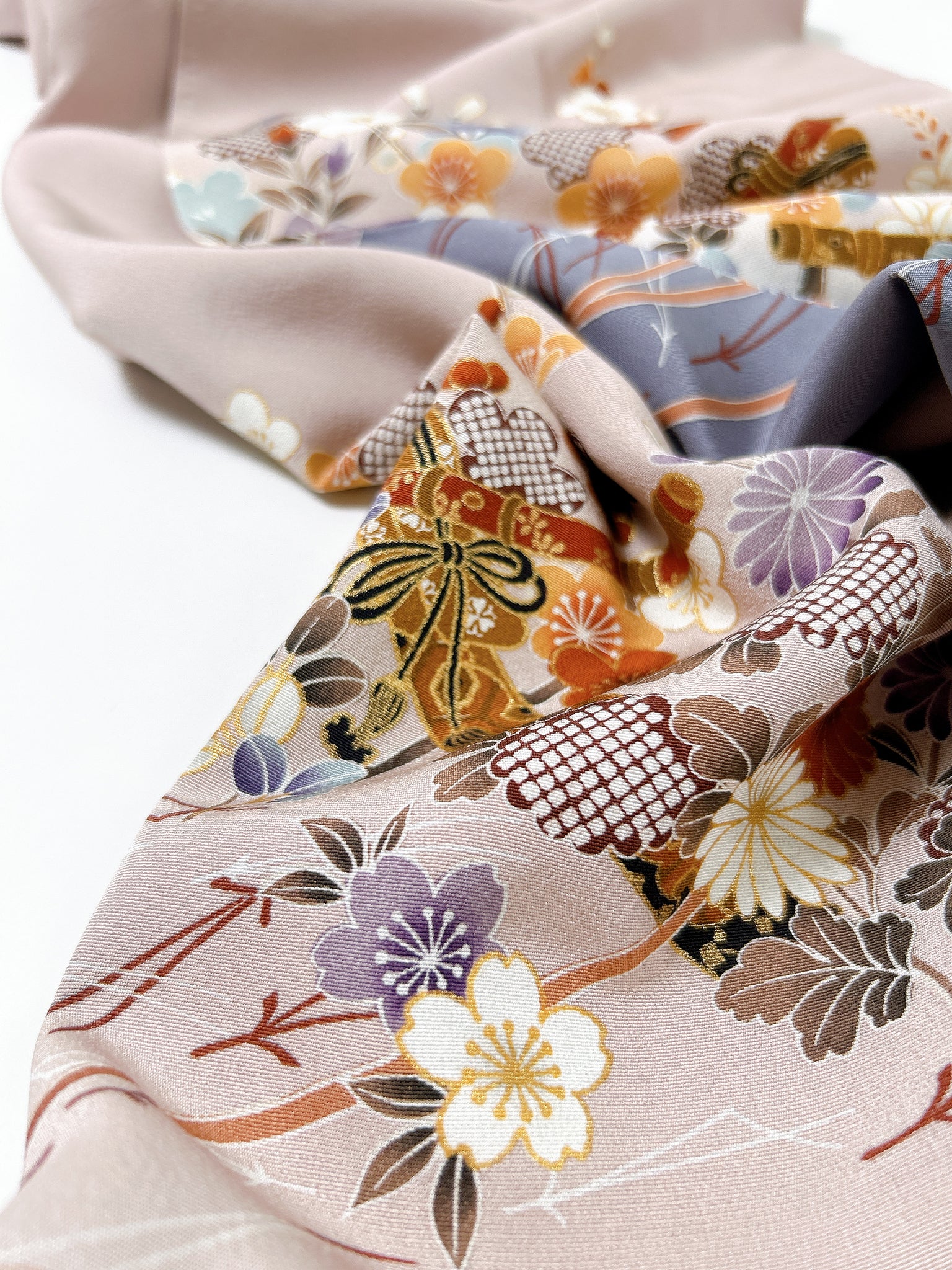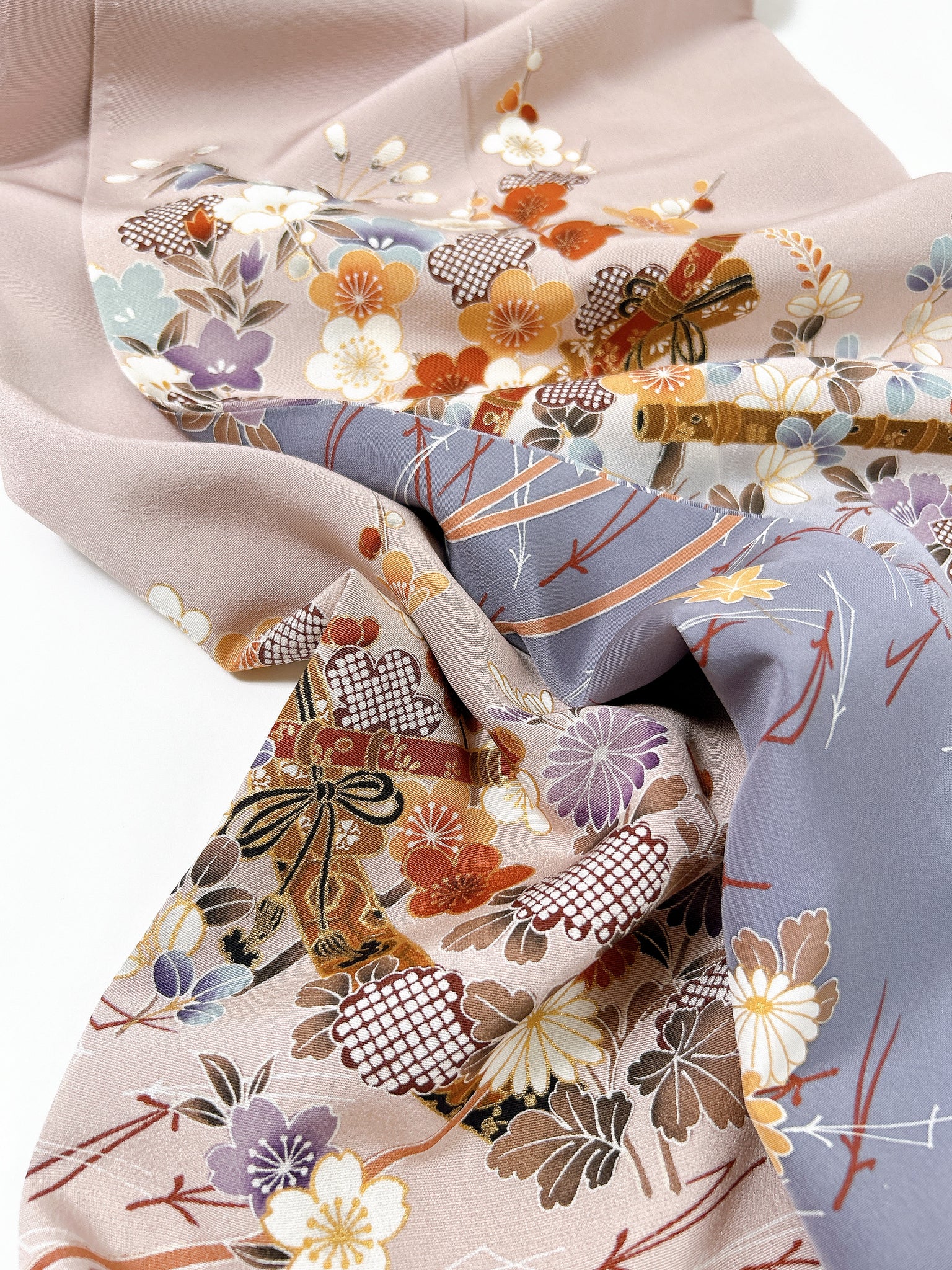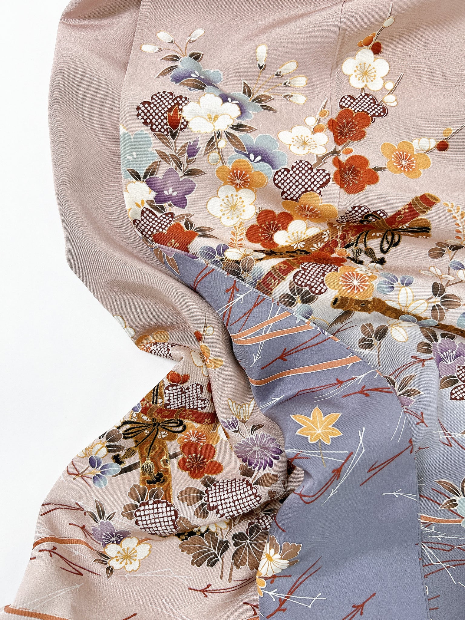 フォーマルならではの流れる絵羽模様や品格ある色彩を生かしたデザイン仕様、大切な門出やご挨拶の場、お呼ばれのお席、食事会や舞台鑑賞など、「本当は着物で伺いたいけれど、フルセットで装うのは難しい」そんな場面に、フォーマルシュッケニを纏っていただくことで空間に華を添えつつ、日本の美意識と文化を感じさせてくれる一着となるようお作りしました。