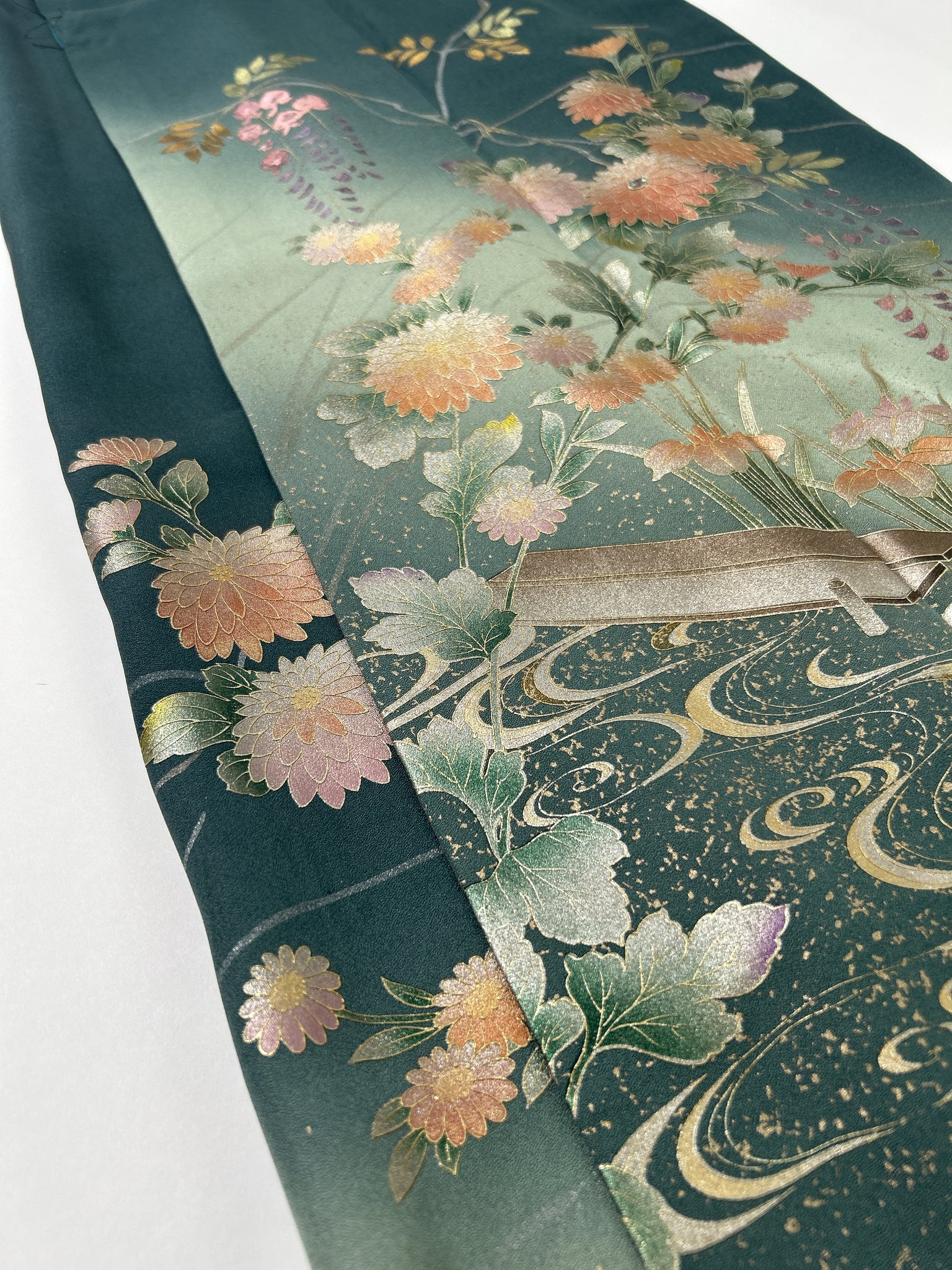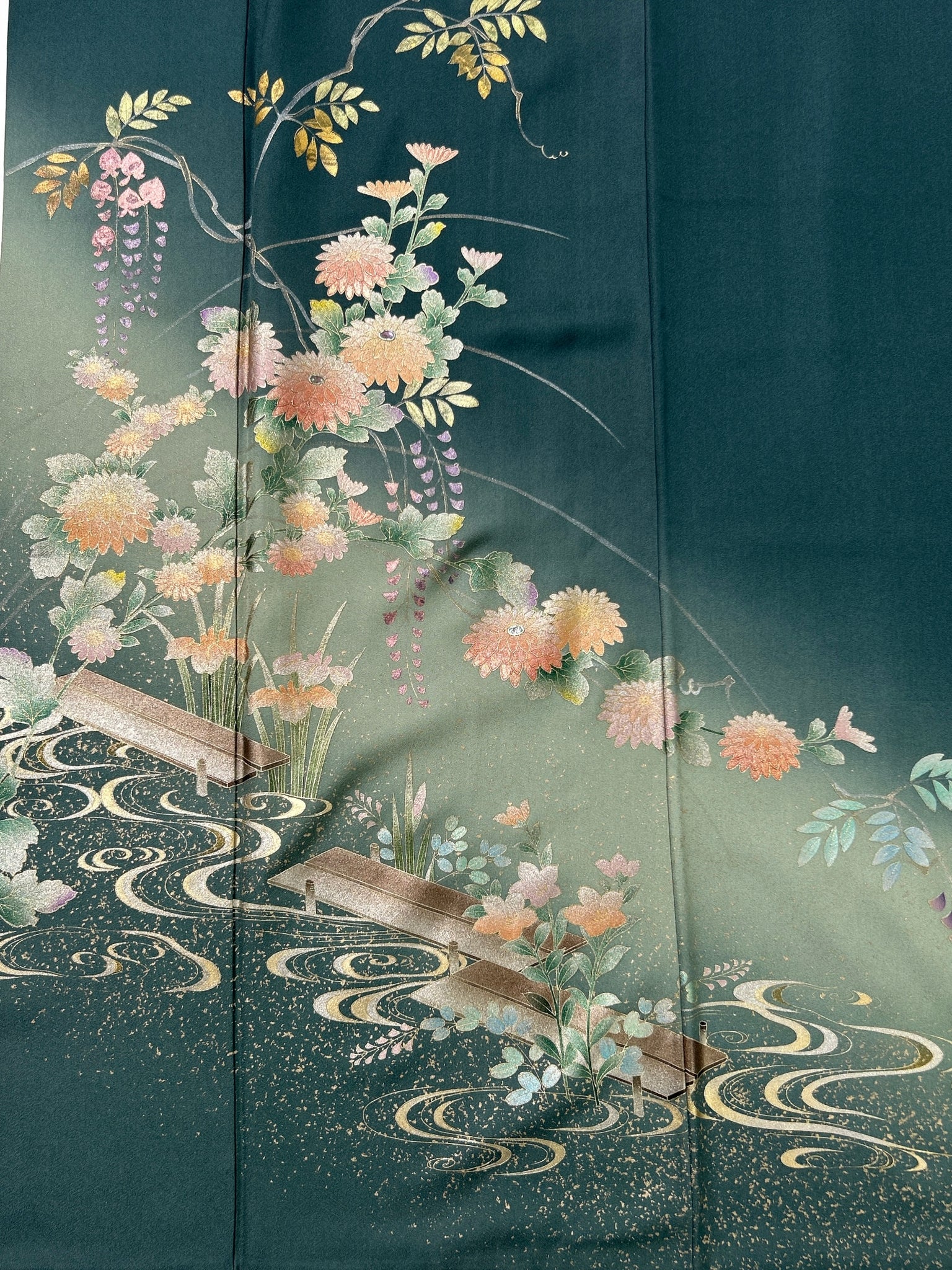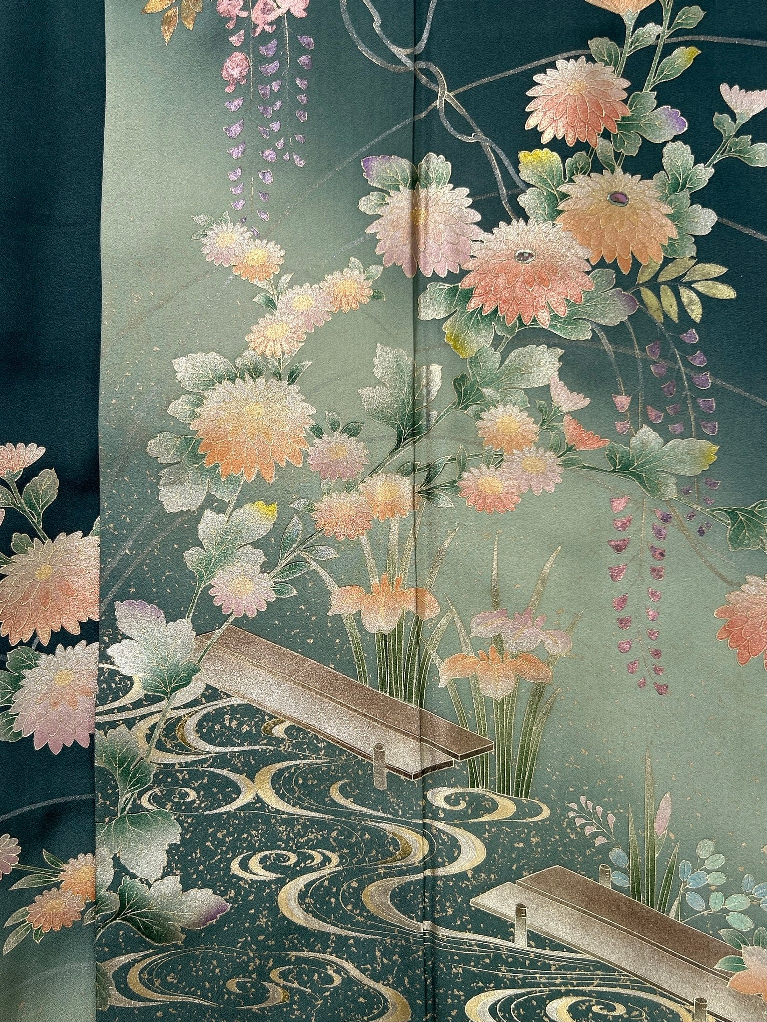 訪問着や付け下げは箔加工や刺繍、模様絵付けが特殊です。また胴裏、八掛がついておりますため水洗い厳禁。水に濡れると色移りする可能性がございます。お手入れはドライクリーニングにてお願い申し上げます。