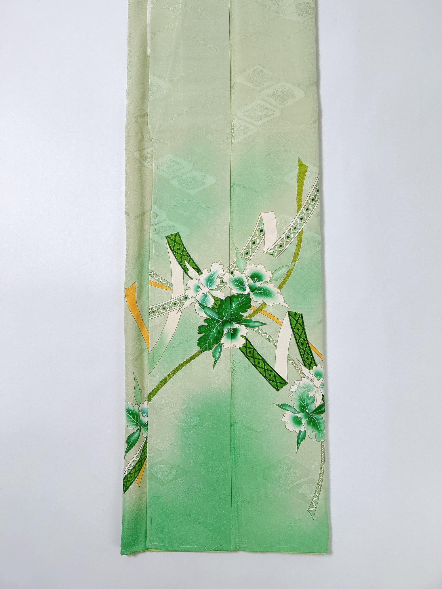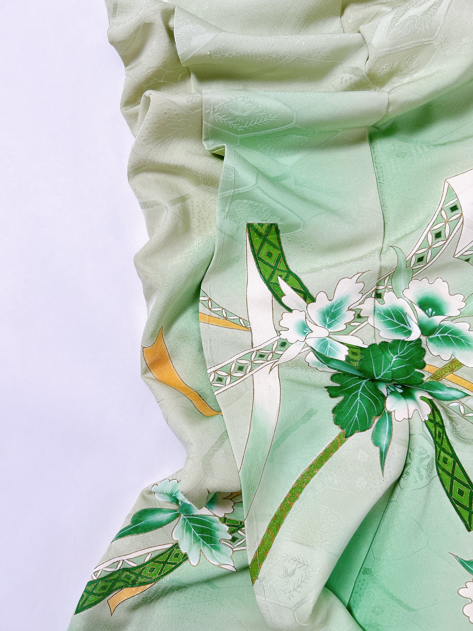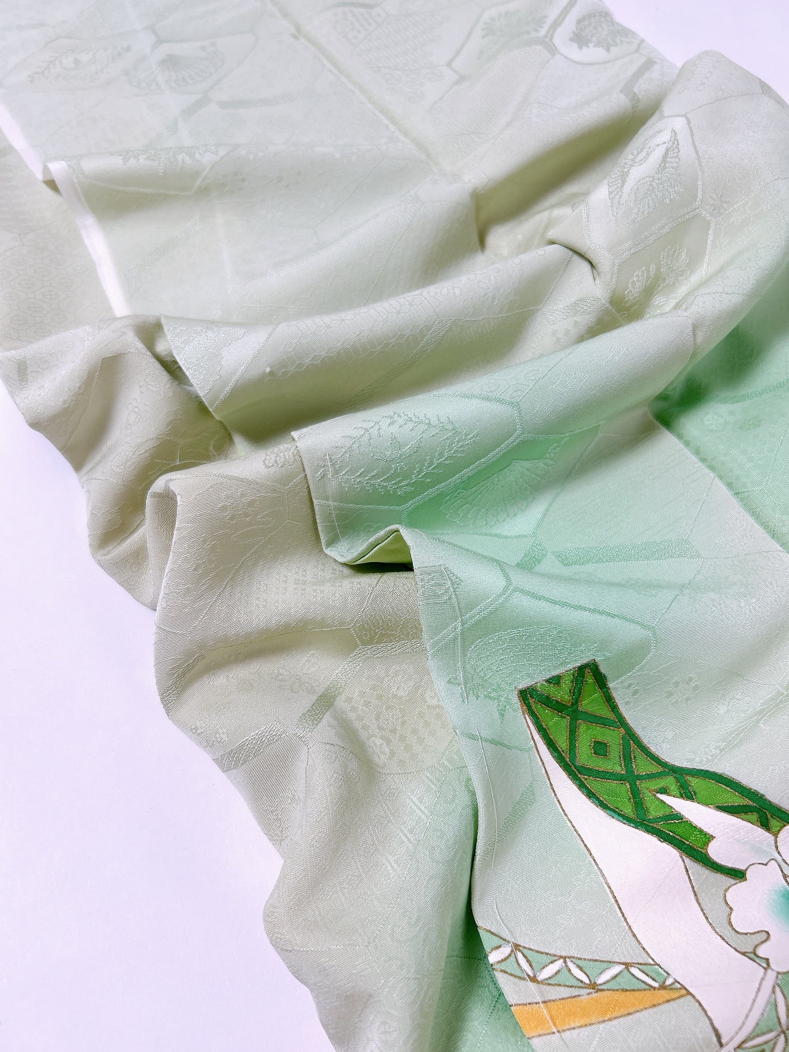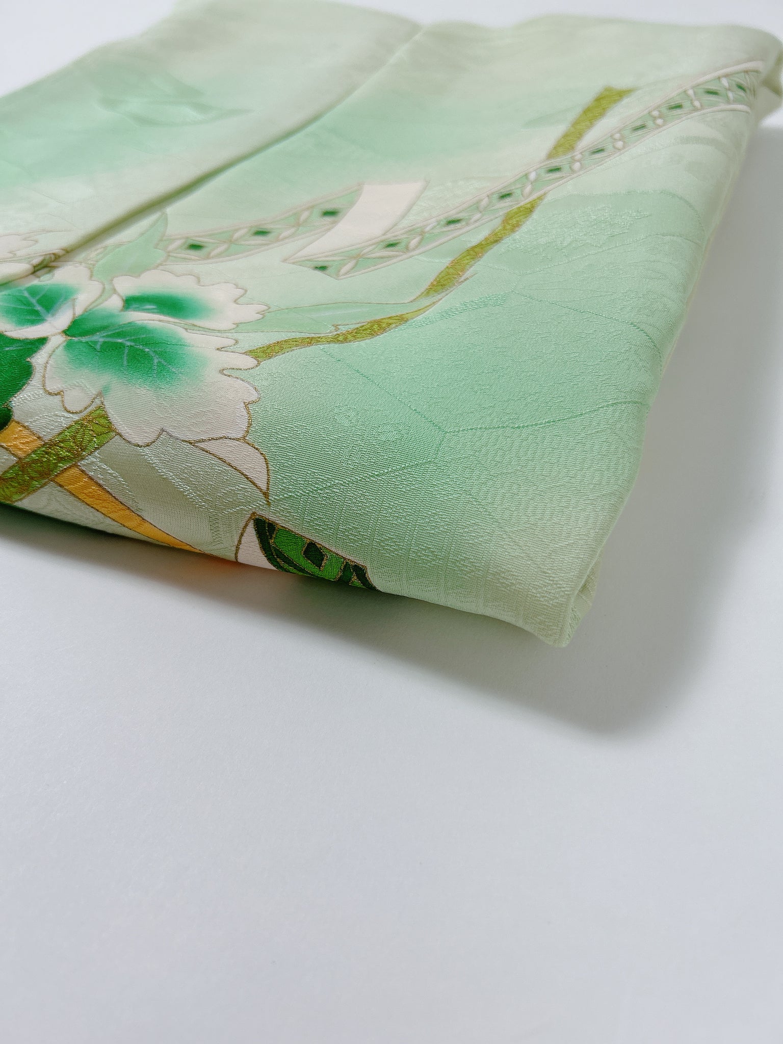 訪問着や付け下げは箔加工や刺繍、模様絵付けが特殊です。また胴裏、八掛がついておりますため水洗い厳禁。水に濡れると色移りする可能性がございます。お手入れはドライクリーニングにてお願い申し上げます。