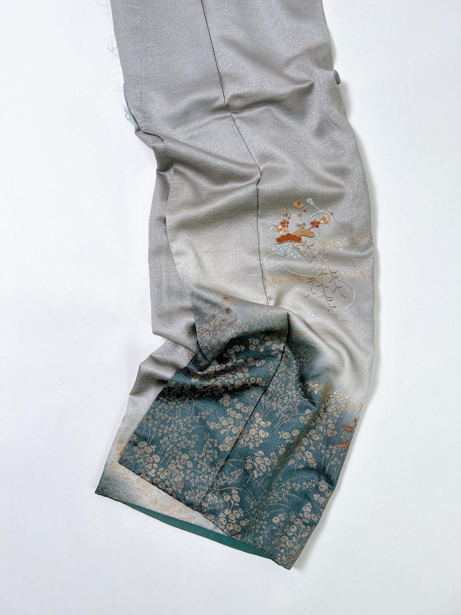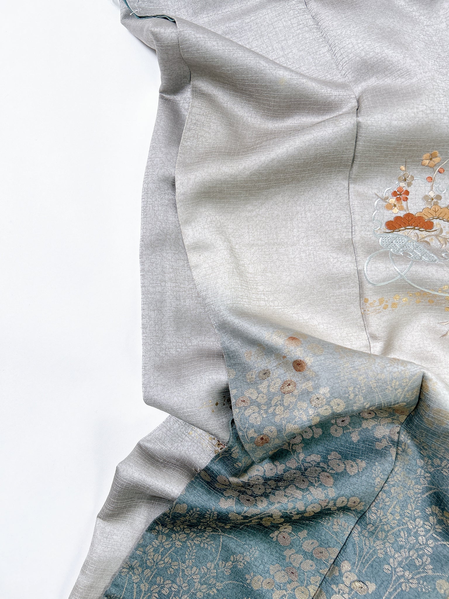 訪問着や付け下げは箔加工や刺繍、模様絵付けが特殊です。また胴裏、八掛がついておりますため水洗い厳禁。水に濡れると色移りする可能性がございます。お手入れはドライクリーニングにてお願い申し上げます。