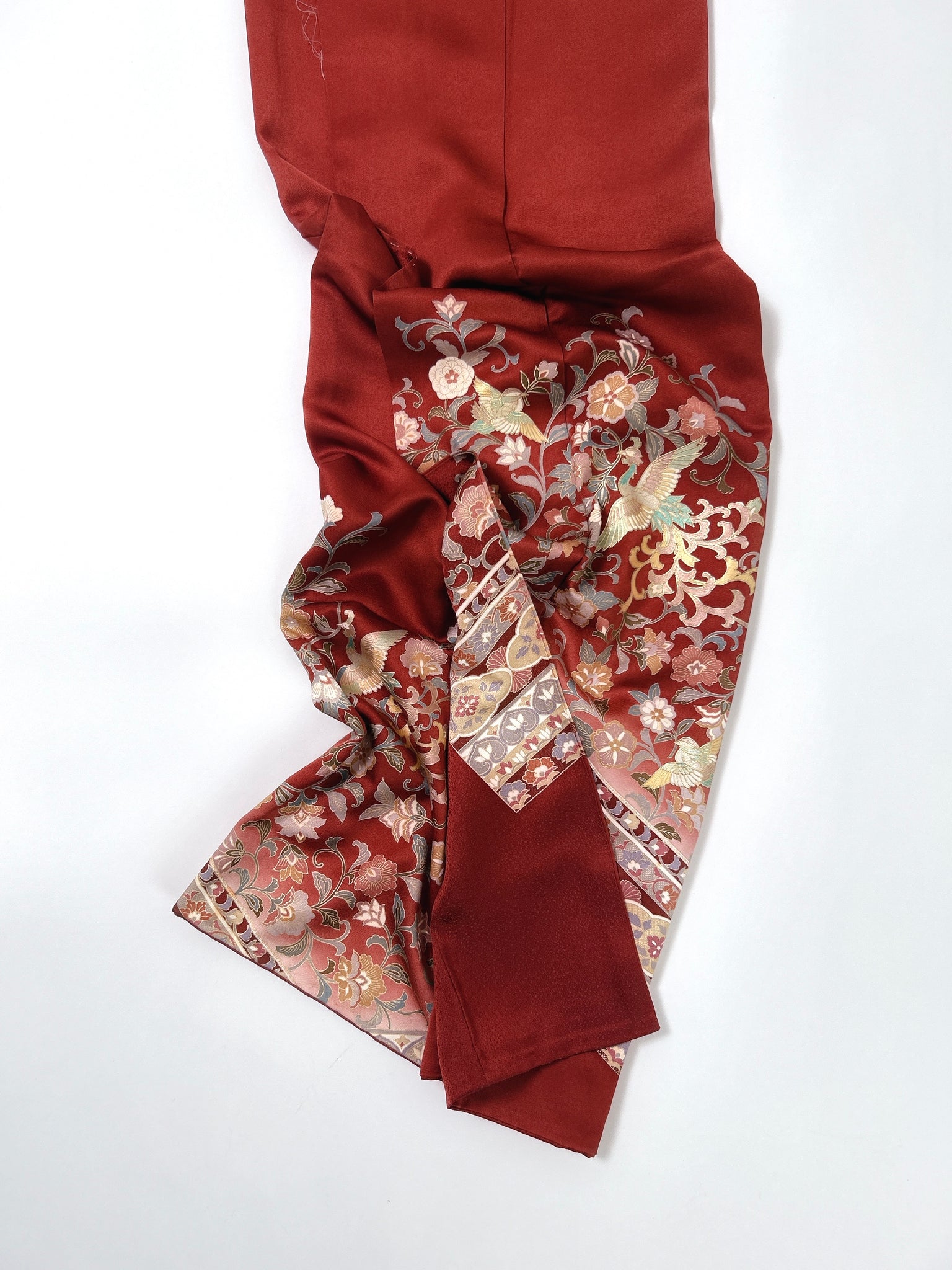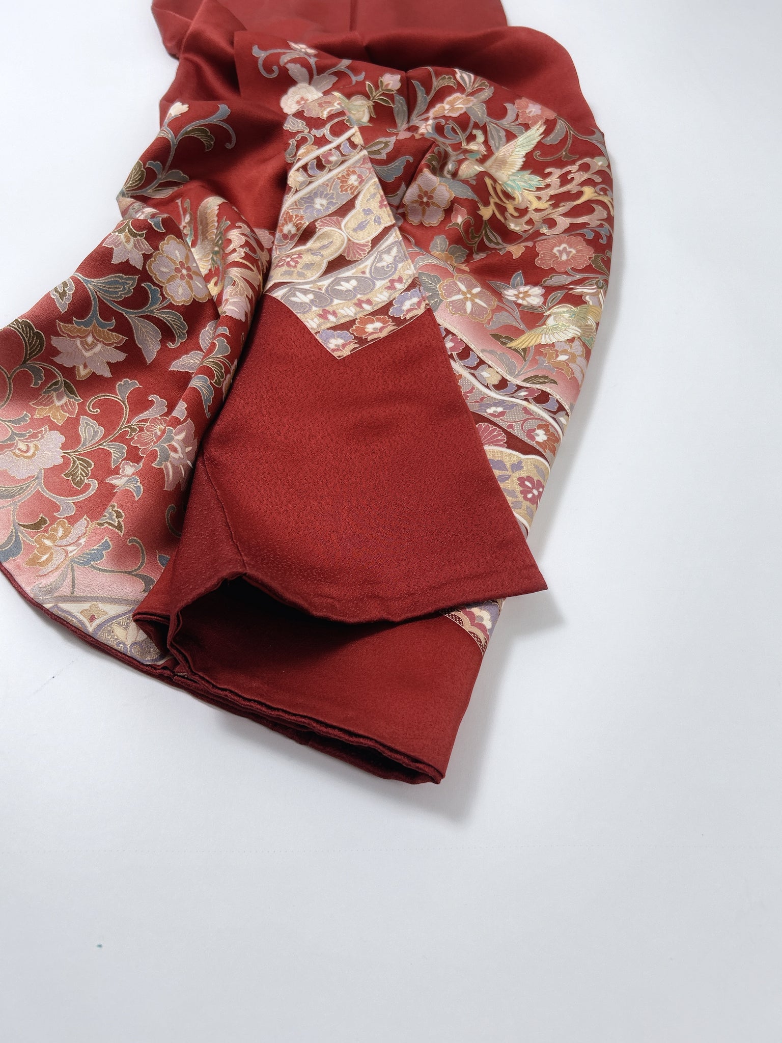 ⁑着物はシミや汚れ破れなどがつきもう着物としては着ることが難しくなったものや、ヴィンテージ、現代着物まで幅広く使用しておりますのでなるべくシミ汚れは逃がして仕立てております。が場合によっては少々アク、シミが付いてるものもございます。古いお着物の時代と時間の経過で現れるものですご理解のほどよろしくお願いもうしあげます。また正絹、化繊共に「防縮加工」をほどこしておりますので家でのお手入れが可能です。