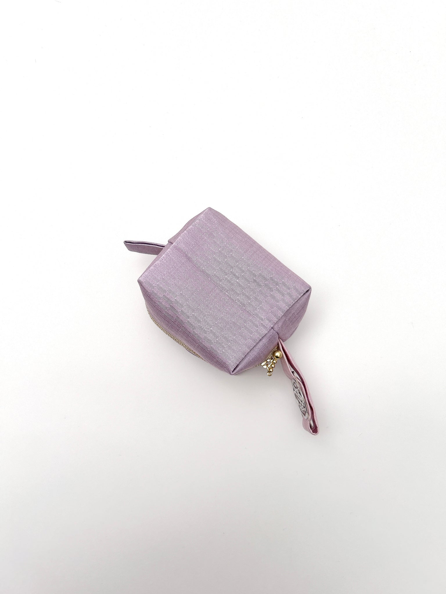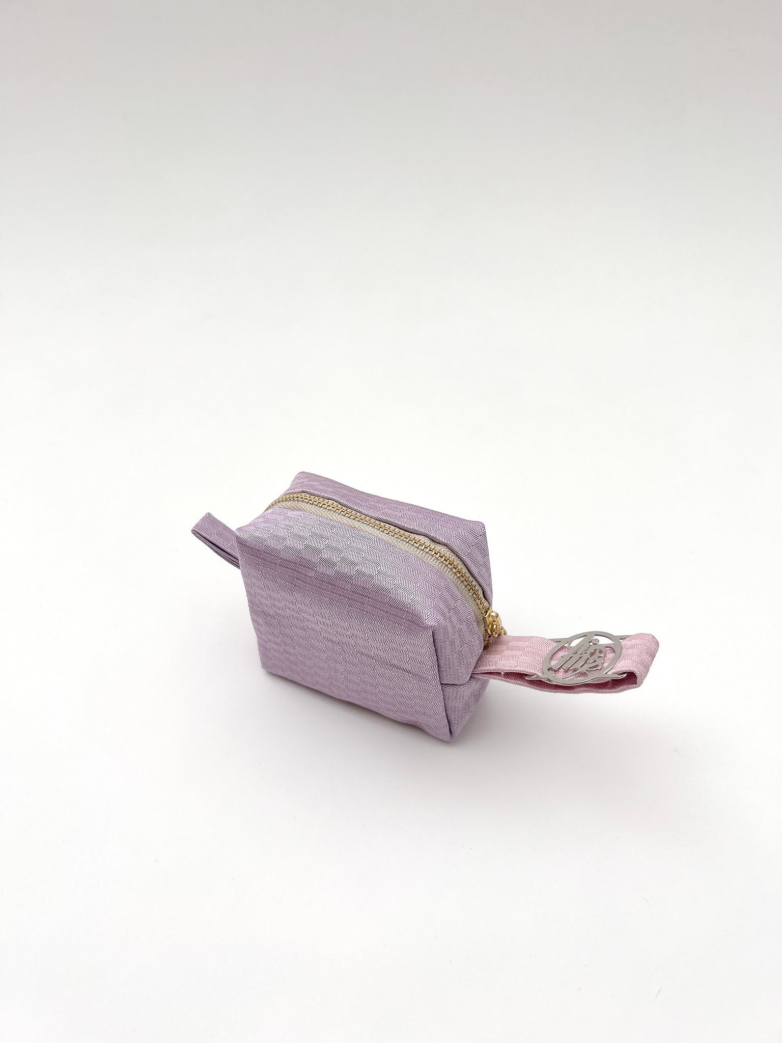 タブがついているのでカラビナで鞄に外付けが可能です是非お手持ちのお鞄に合わせて美しい絹織物のコーディネートをお楽しみください。