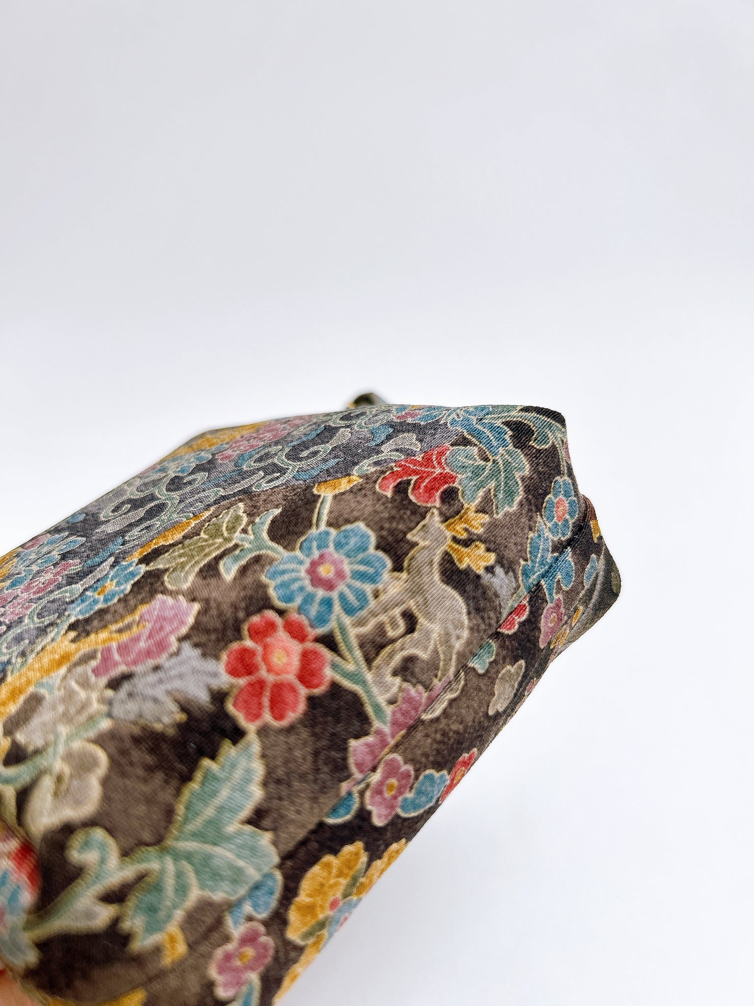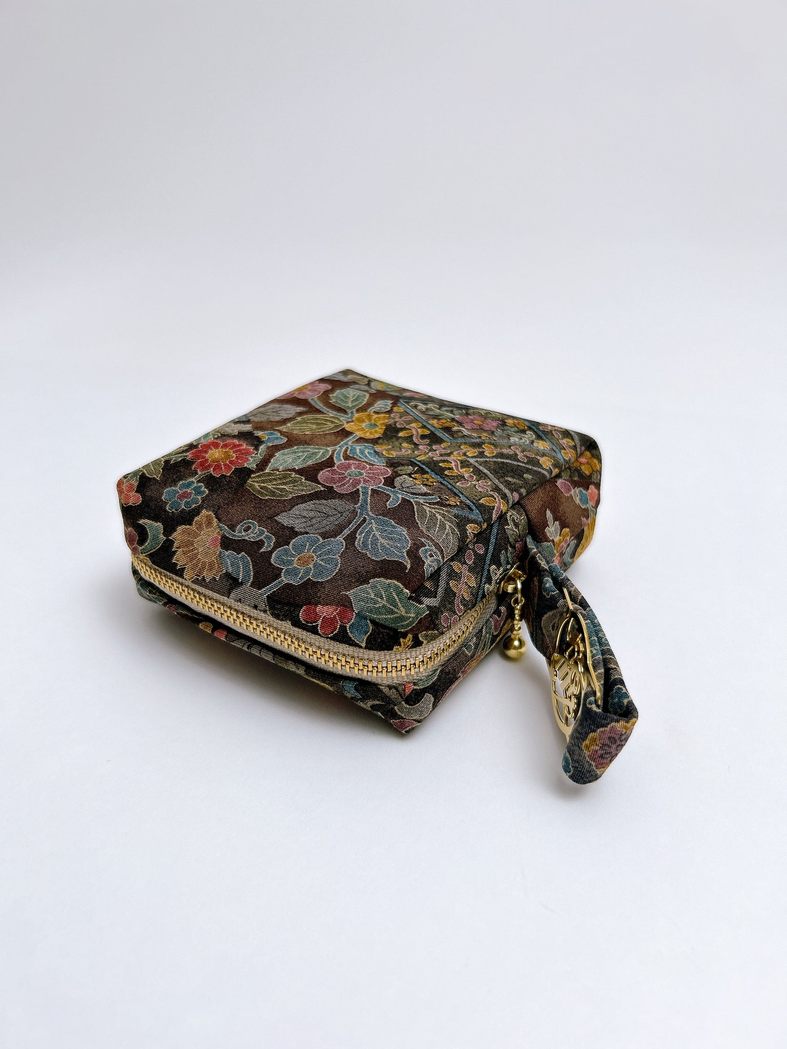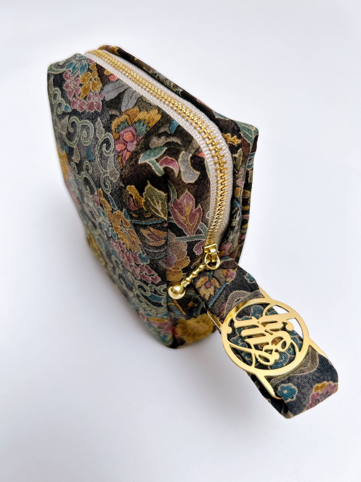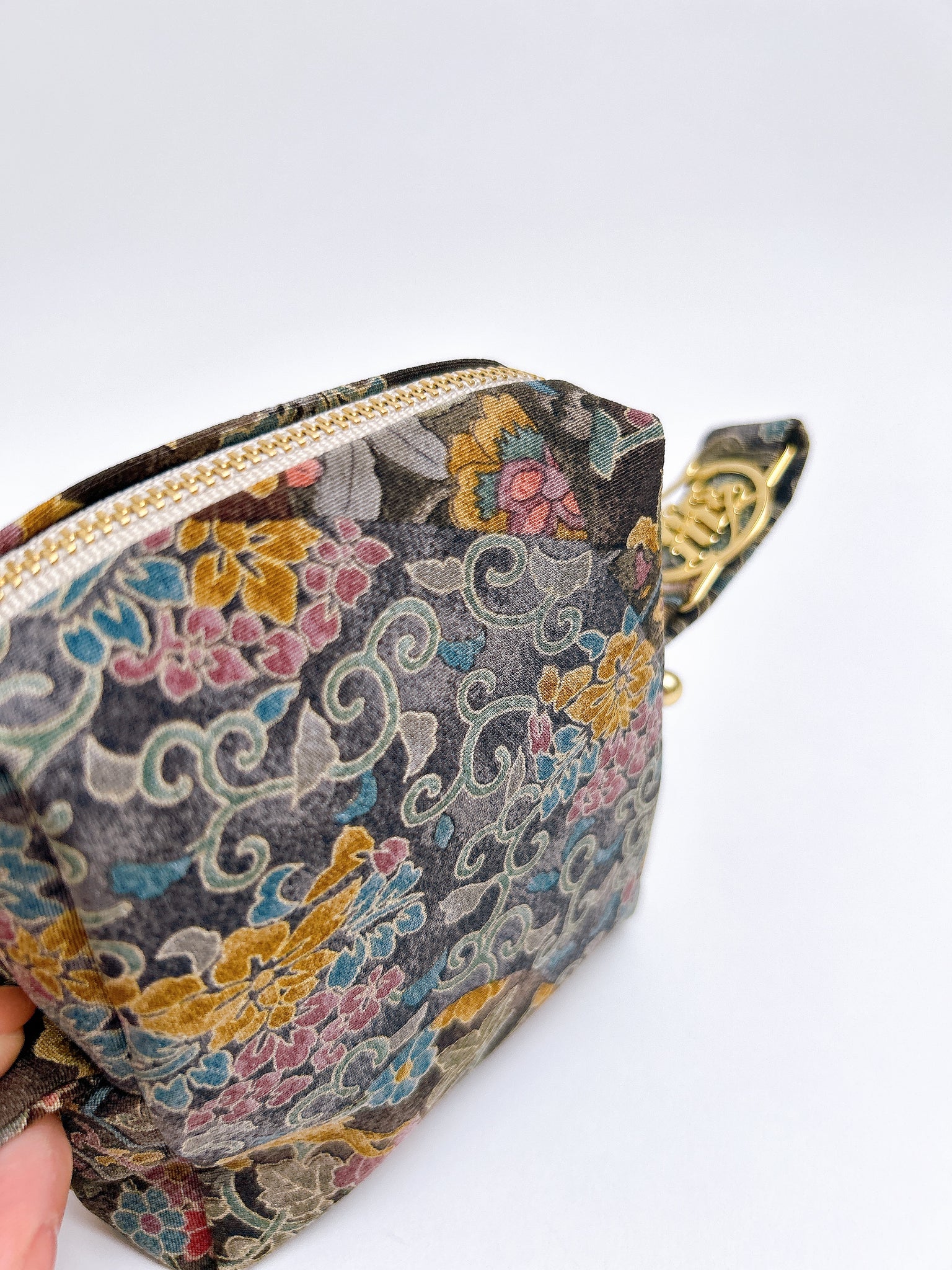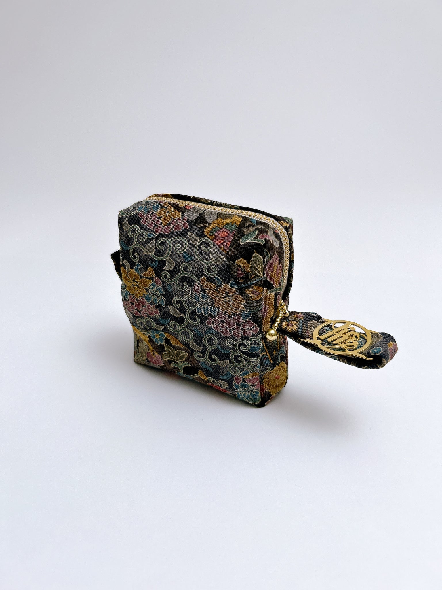 タブがついているのでカラビナで鞄に外付けが可能です是非お手持ちのお鞄に合わせて美しい絹織物のコーディネートをお楽しみください。