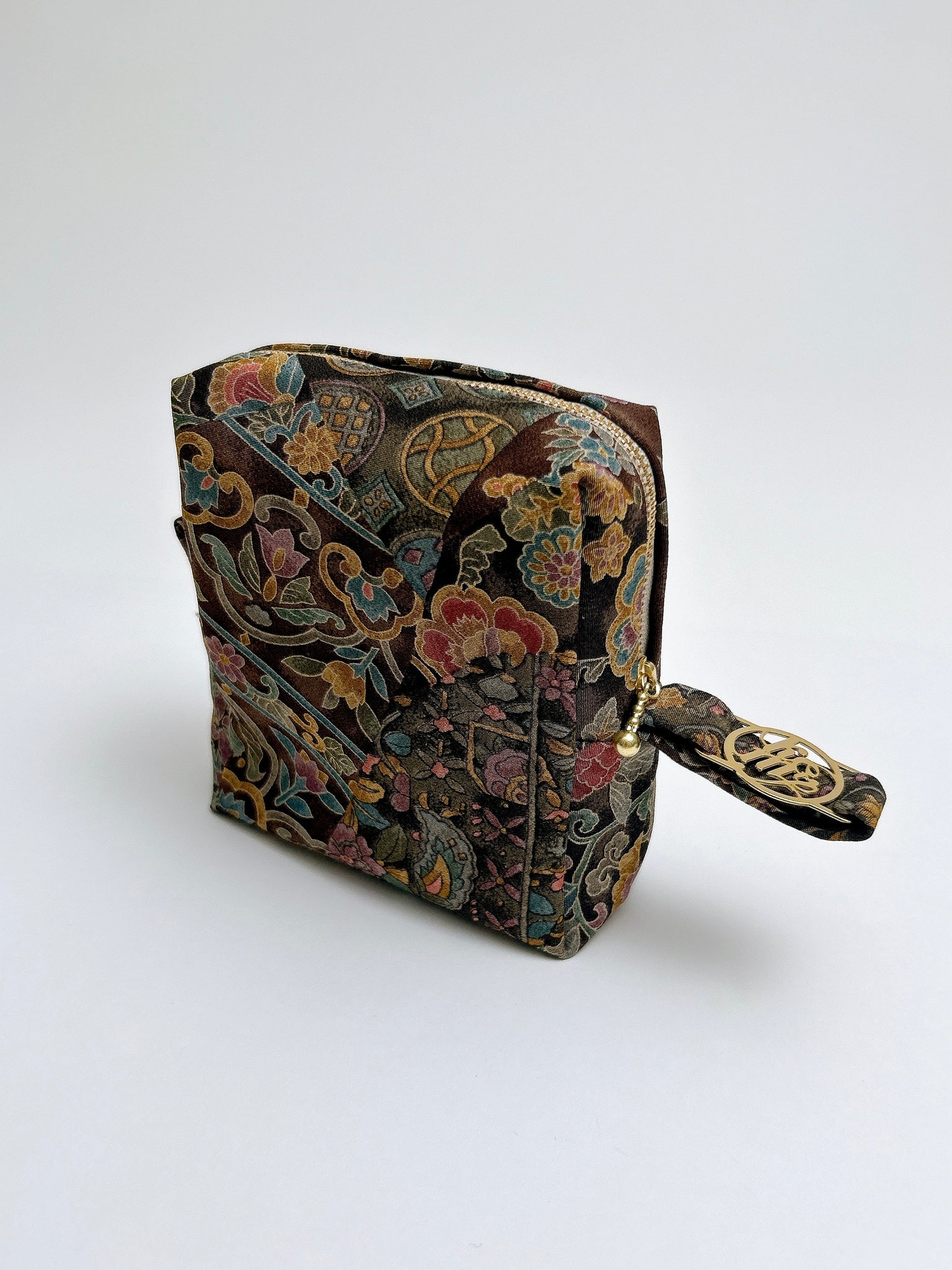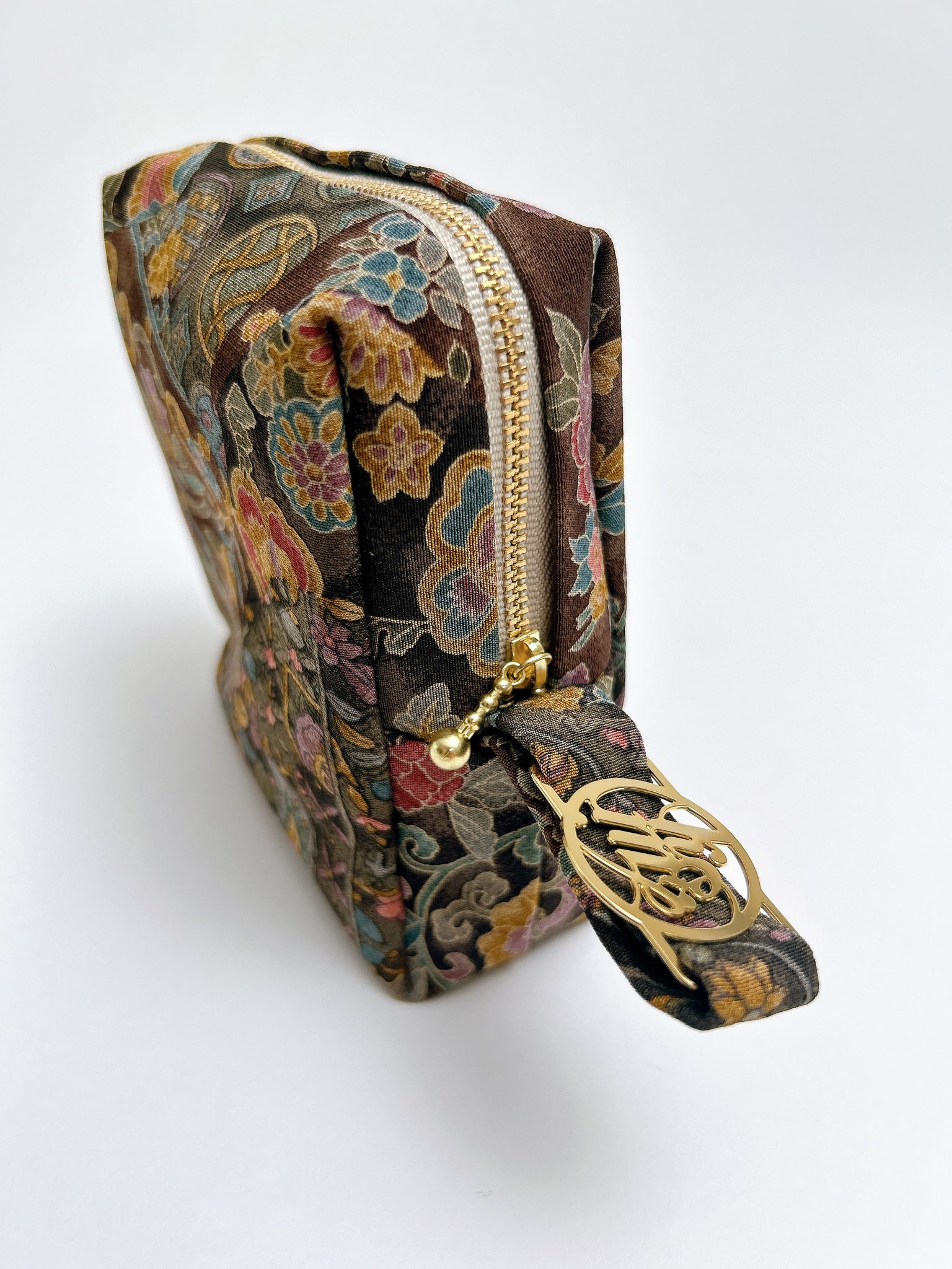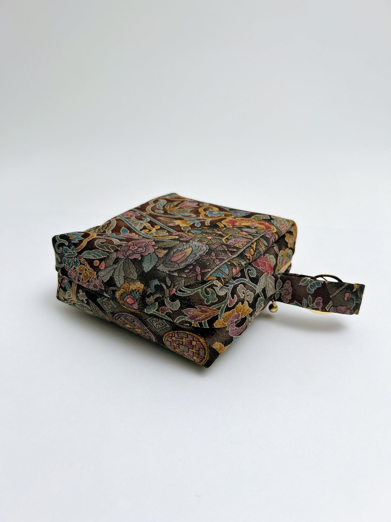 タブがついているのでカラビナで鞄に外付けが可能です是非お手持ちのお鞄に合わせて美しい絹織物のコーディネートをお楽しみください。