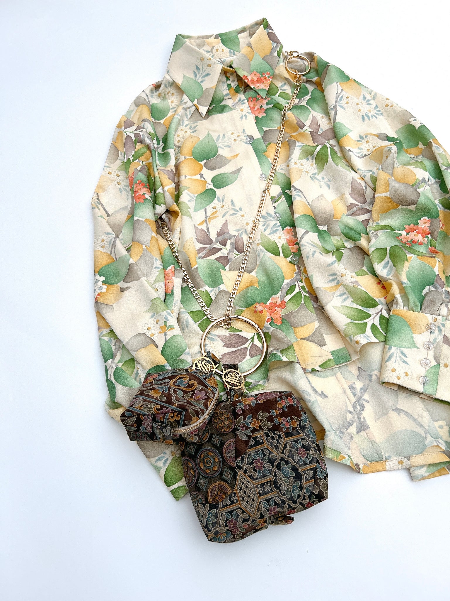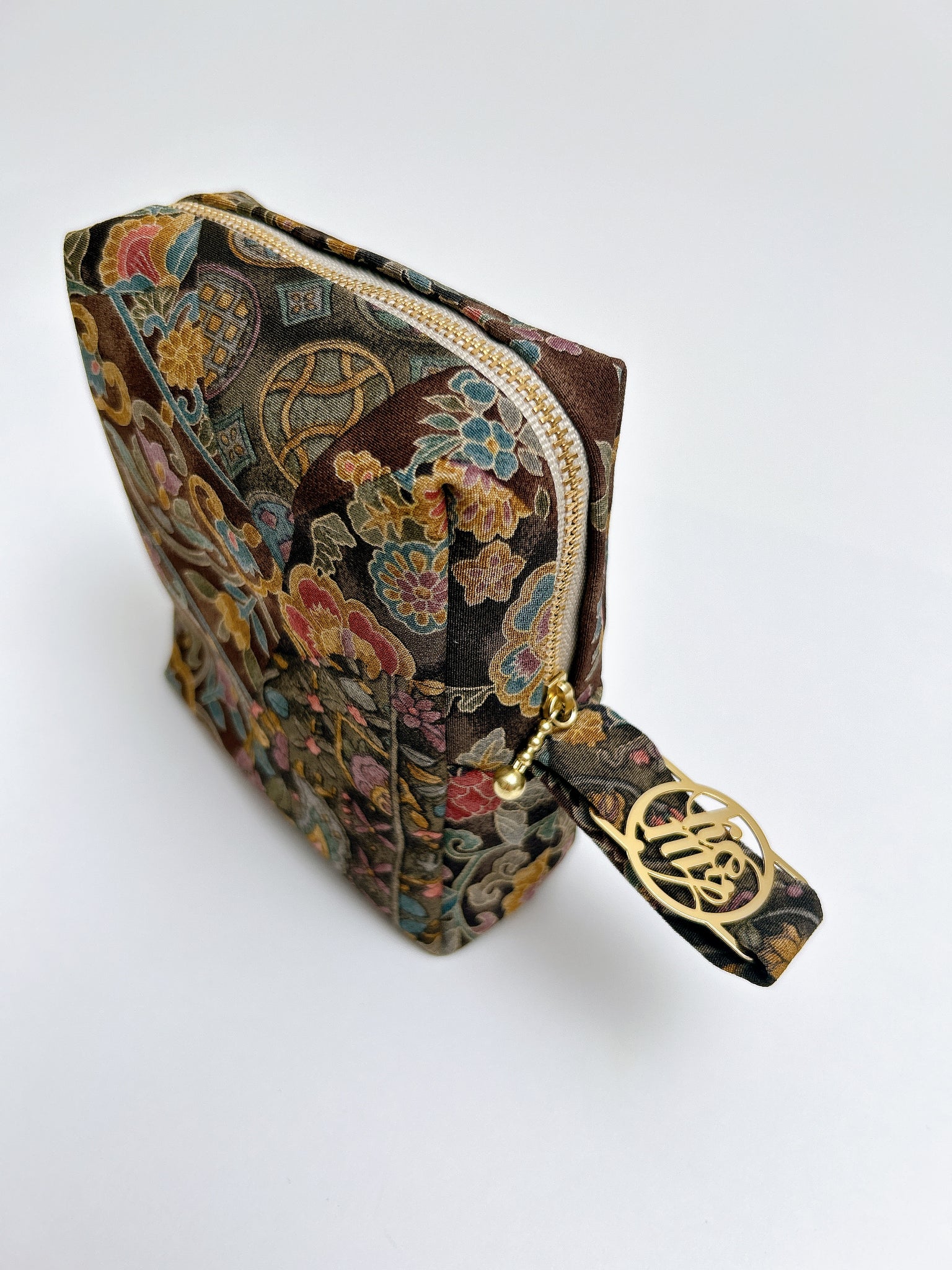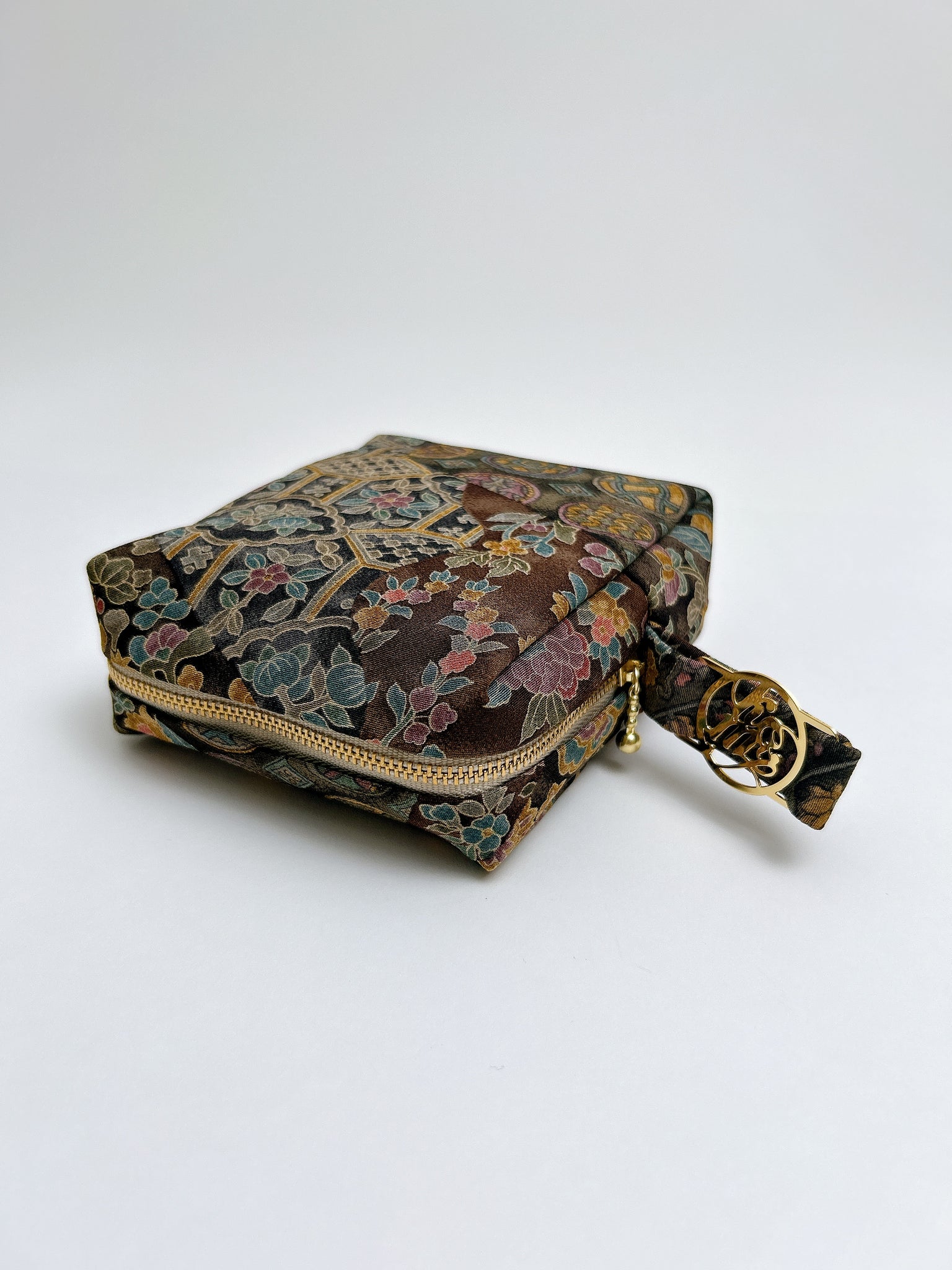 タブがついているのでカラビナで鞄に外付けが可能です是非お手持ちのお鞄に合わせて美しい絹織物のコーディネートをお楽しみください。