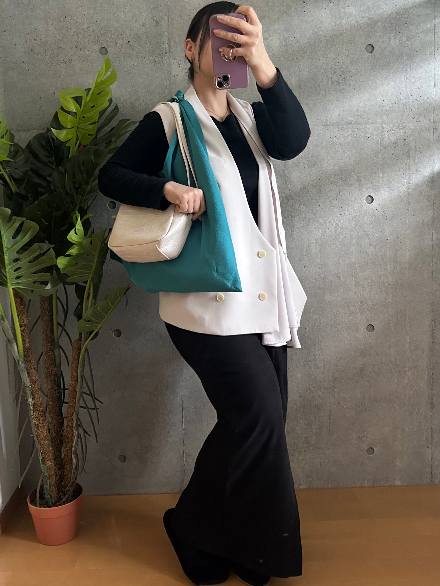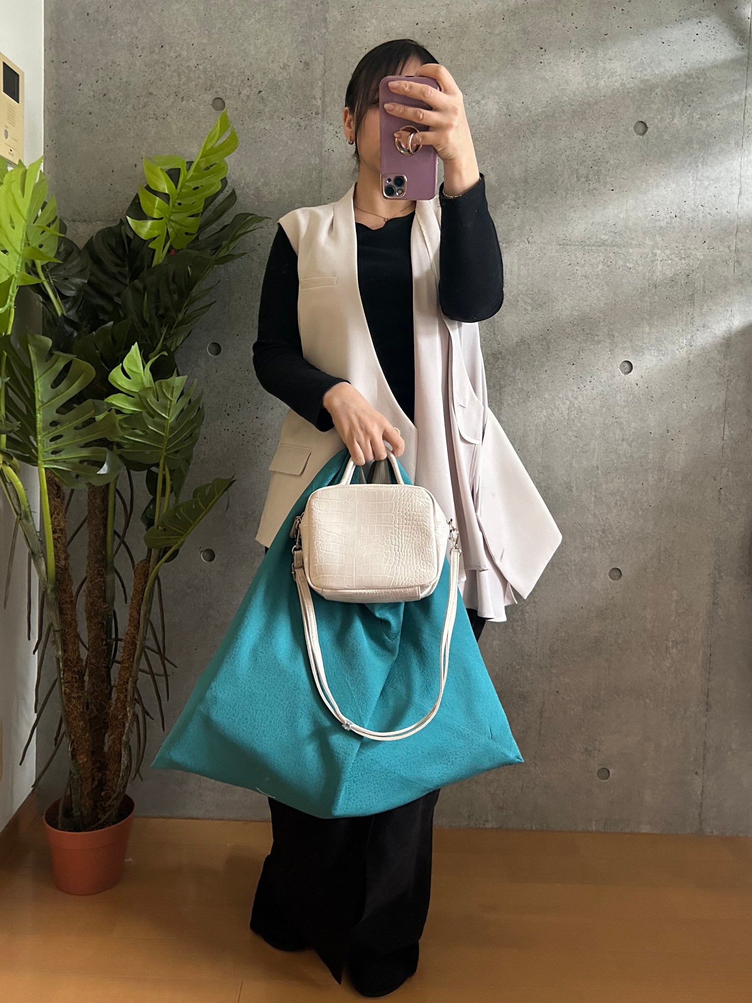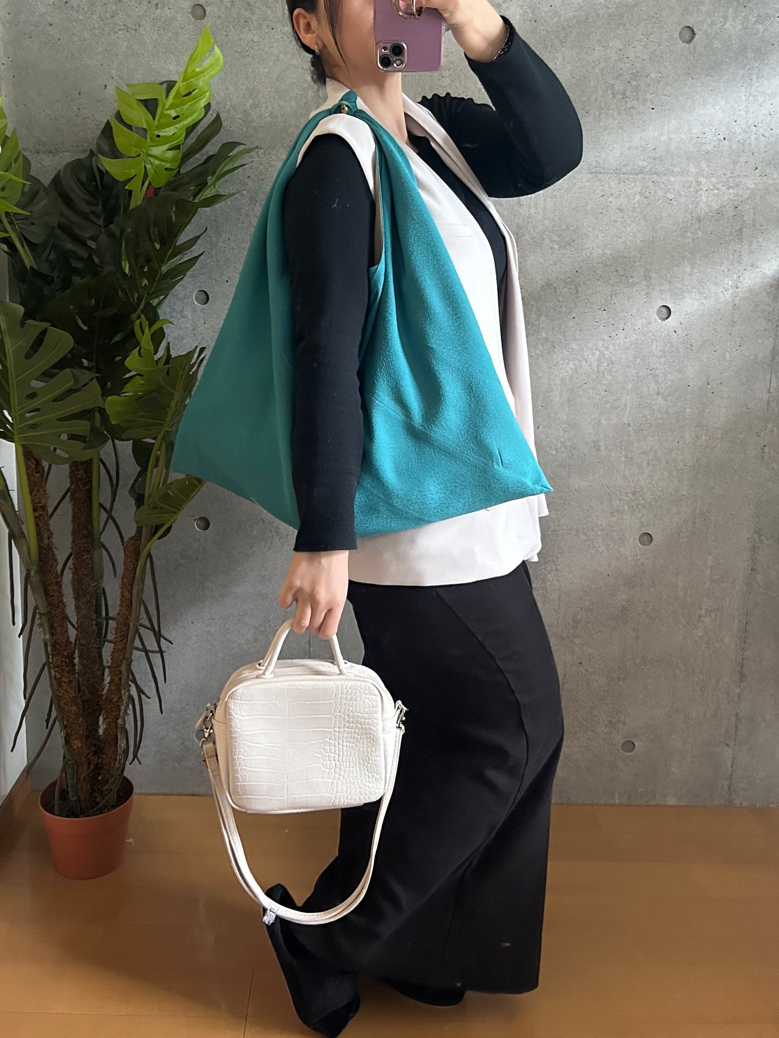 持ち手は、一度結んだあとにスナップボタンで固定する特別仕様です。「結び目が解けるかもしれない」という不安を解消し、重い荷物を入れた際も安定感があり、肩への負担をやさしく支えます。ひとつで主役になるメインバッグとしてはもちろん、メインバッグの容量を補うサブバッグとしても活躍する使い勝手のケニあずま袋。自由で頼もしい、日常に溶け込む機能美をお楽しみください。