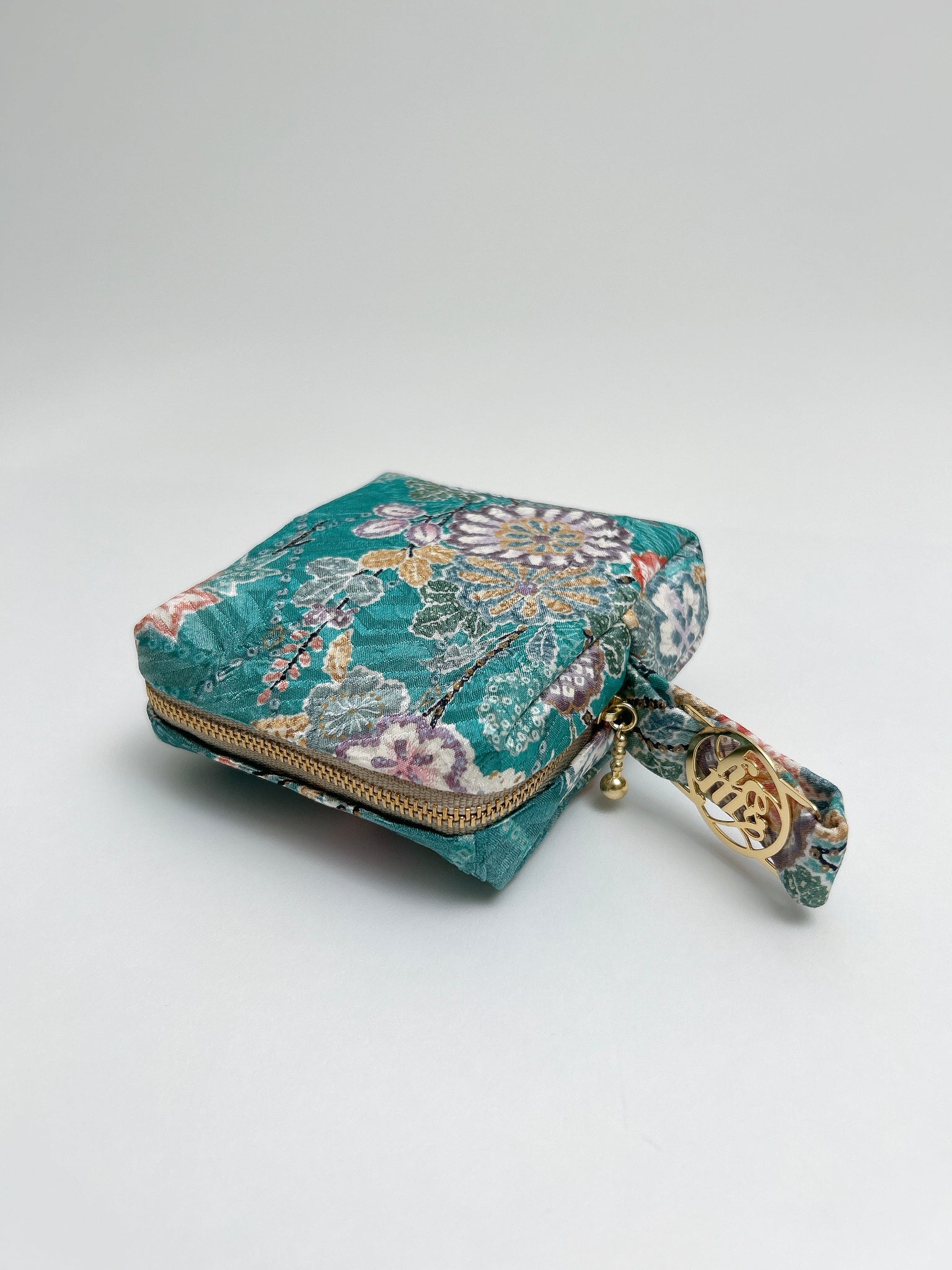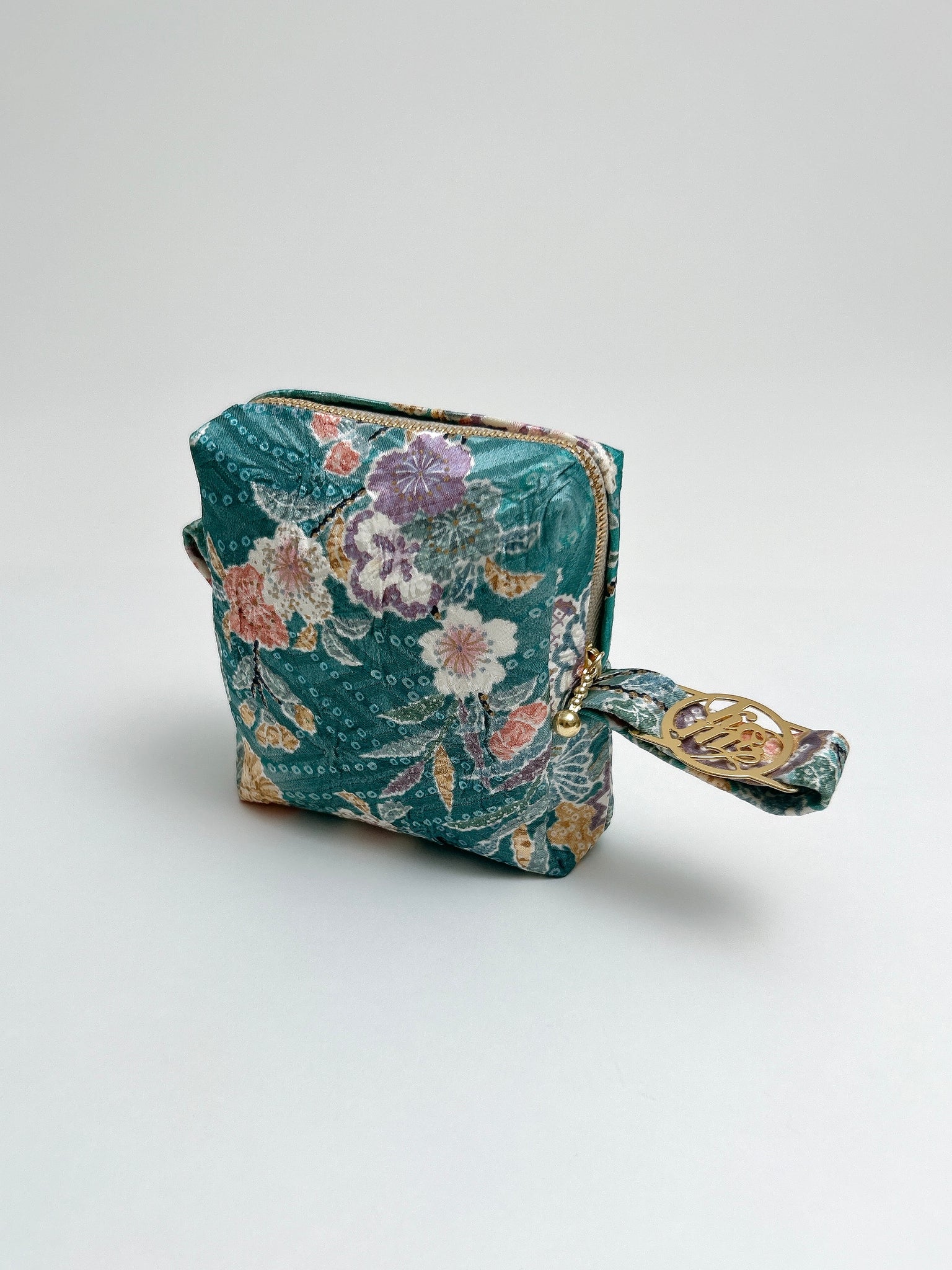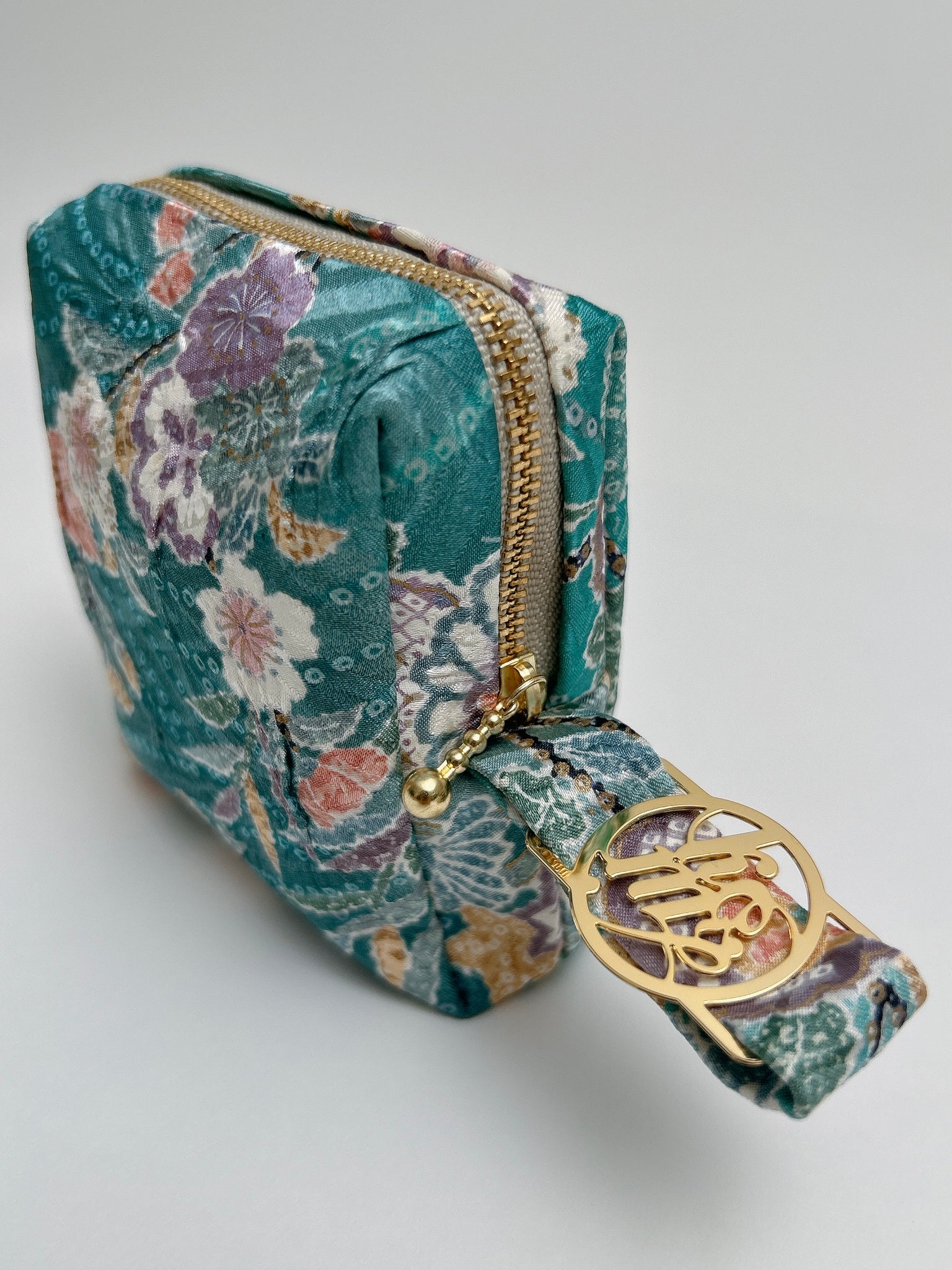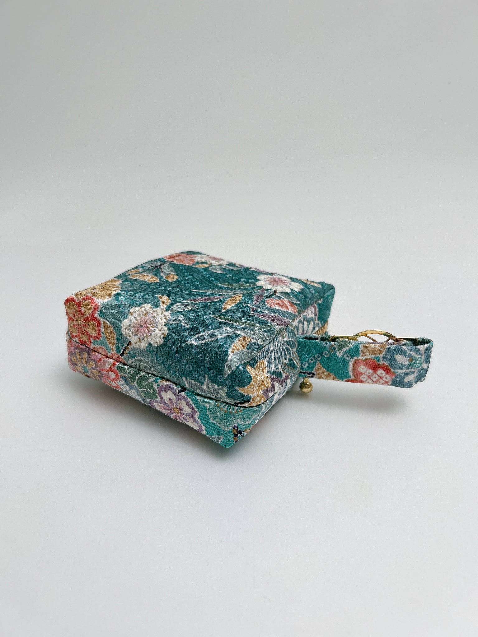 タブがついているのでカラビナで鞄に外付けが可能です是非お手持ちのお鞄に合わせて美しい絹織物のコーディネートをお楽しみください。