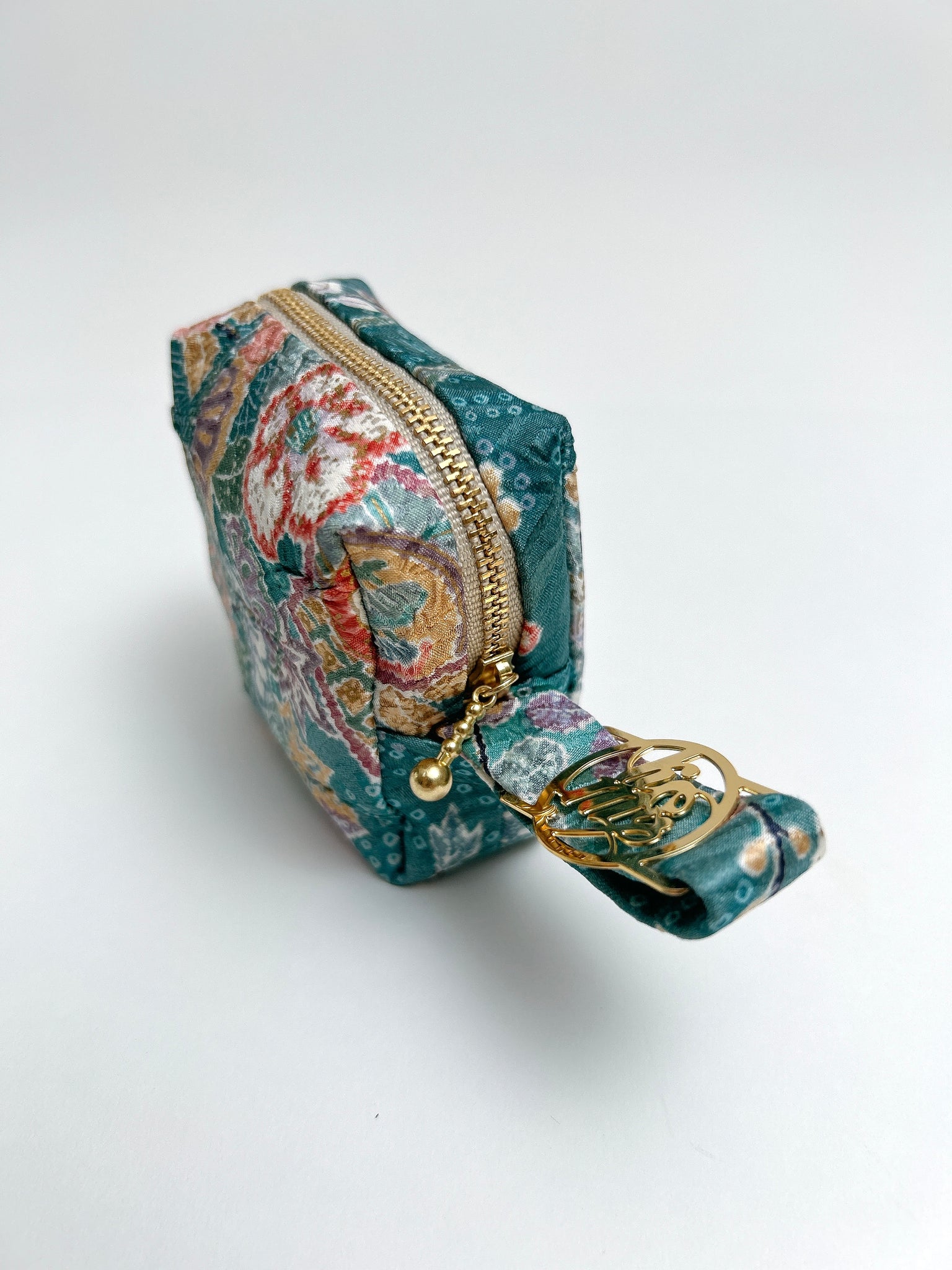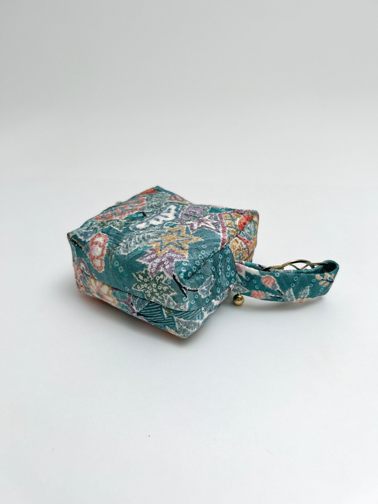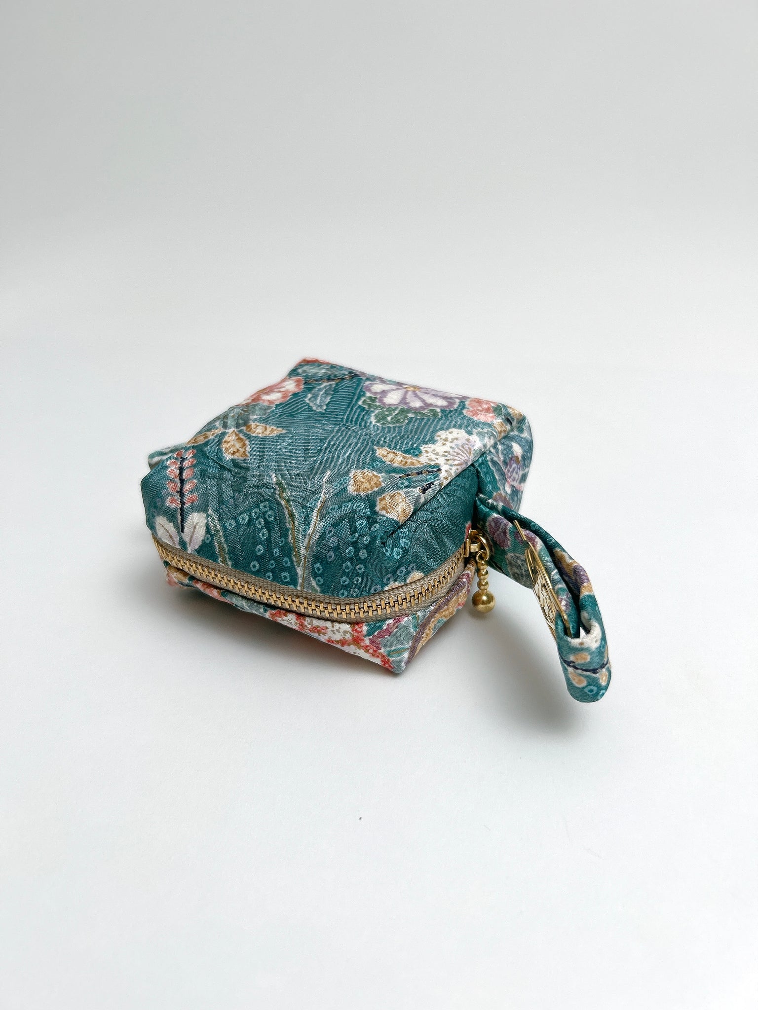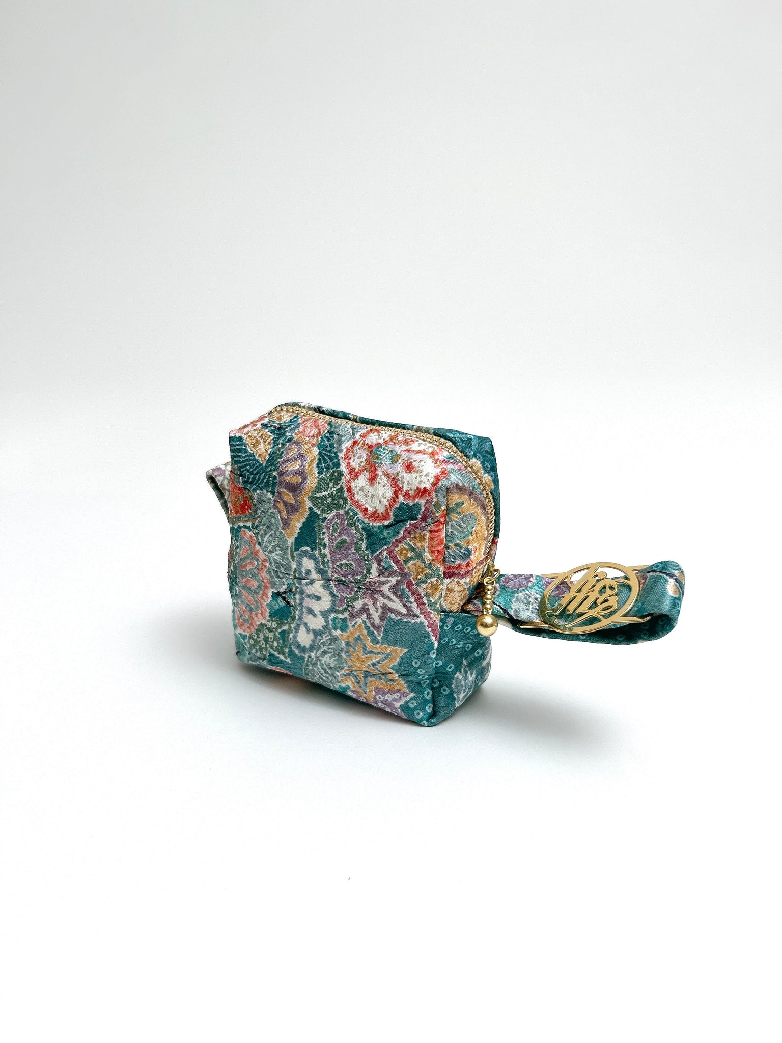 タブがついているので丸カンやカラビナで鞄に外付けが可能です是非お手持ちのお鞄に合わせて美しい絹織物のコーディネートをお楽しみください。