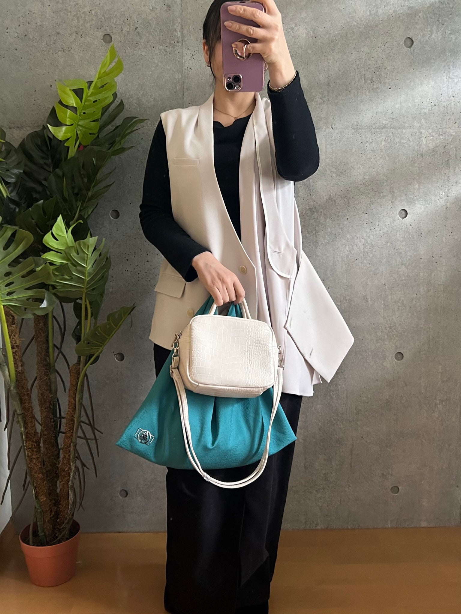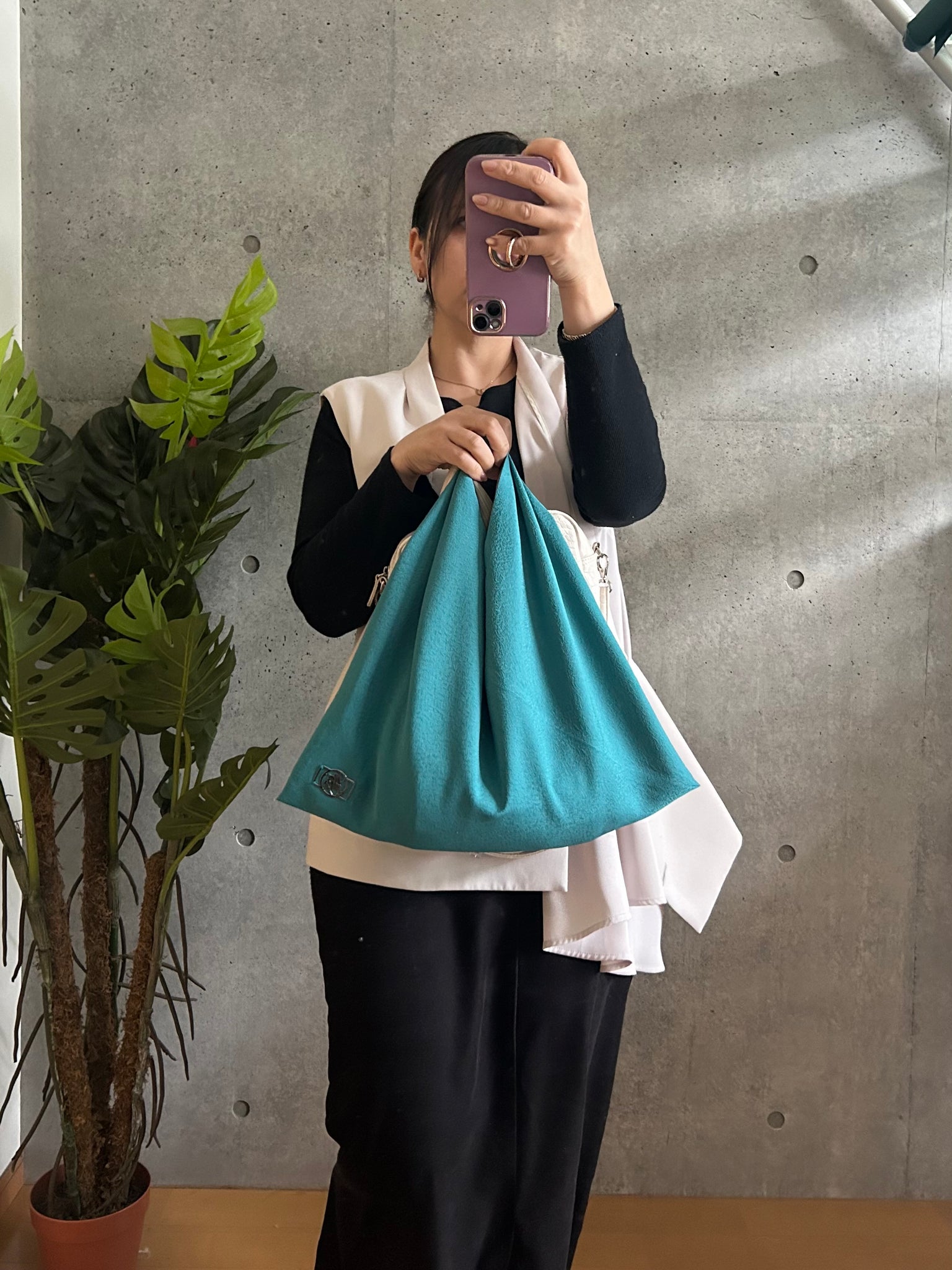 持ち手は、一度結んだあとにスナップボタンで固定する特別仕様です。「結び目が解けるかもしれない」という不安を解消し、重い荷物を入れた際も安定感があり、肩への負担をやさしく支えます。ひとつで主役になるメインバッグとしてはもちろん、メインバッグの容量を補うサブバッグとしても活躍する使い勝手のケニあずま袋。自由で頼もしい、日常に溶け込む機能美をお楽しみください。